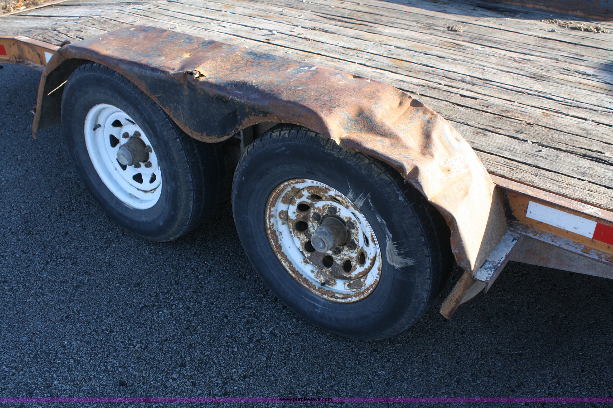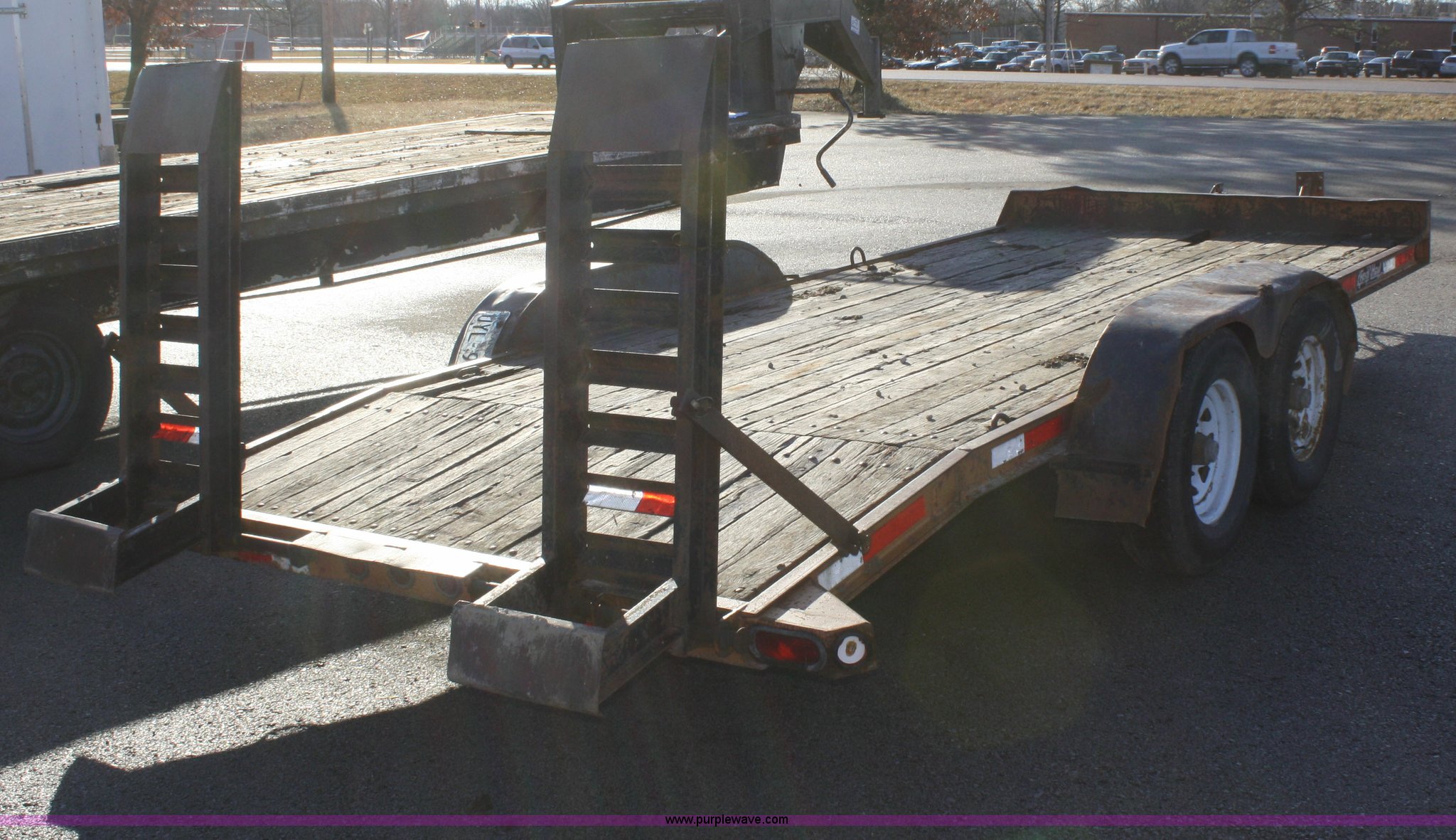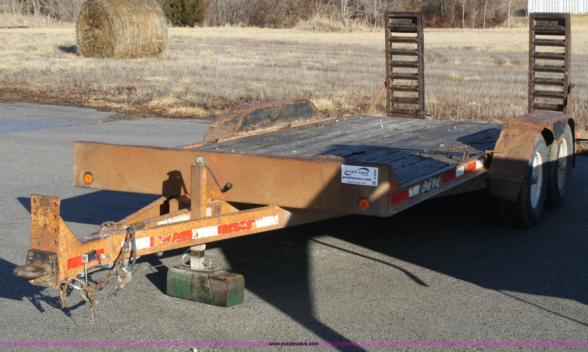 Purple Wave is selling a used Equip. Trailer in Kansas. This item is a 2001 Redi Haul 14' double axle trailer with the following: 82" wood deck, 3' tail, (2) 5,000 lbs axles, 4' fold up ramps, Pintle hitch, 225/75R15 tires