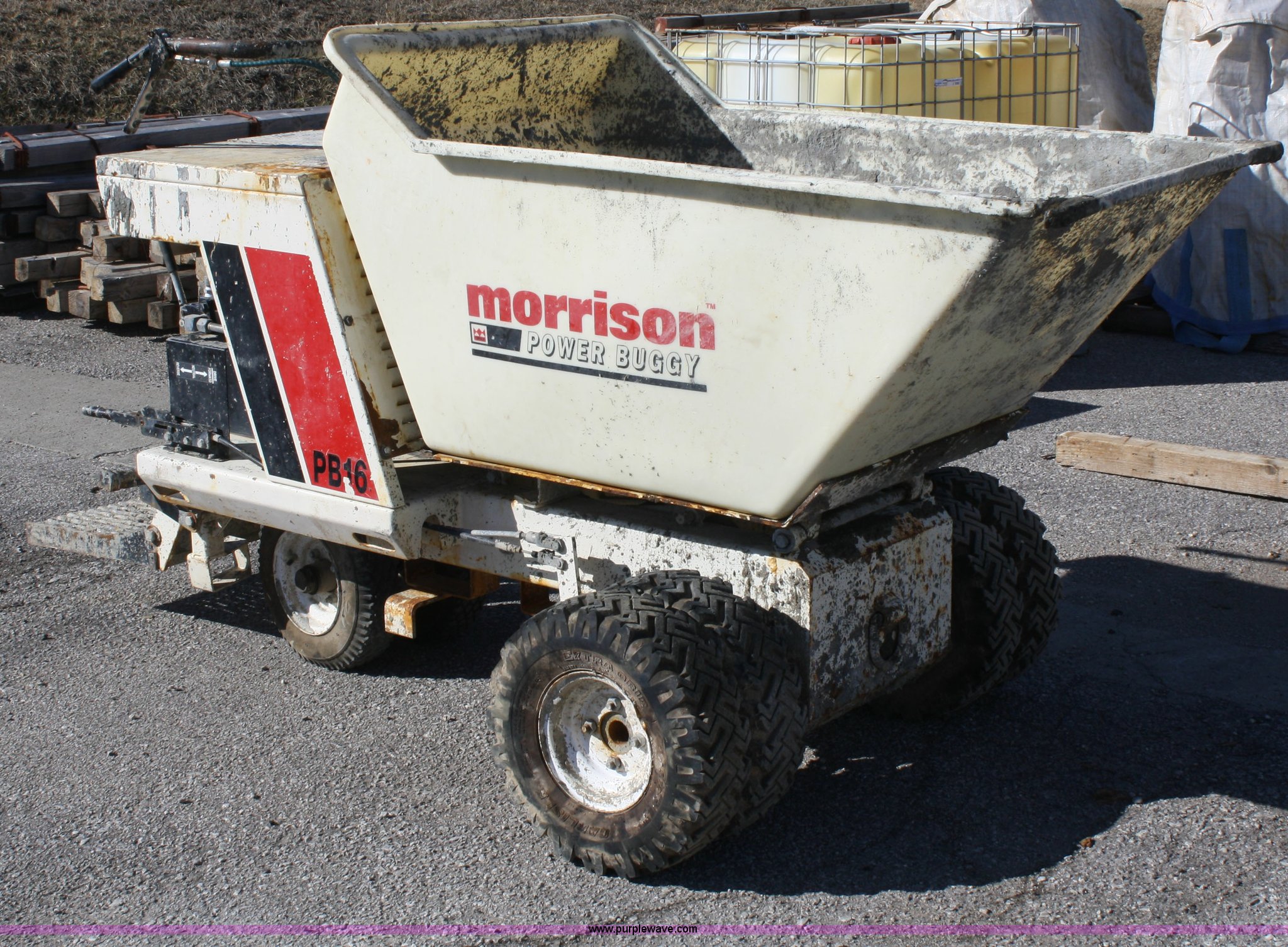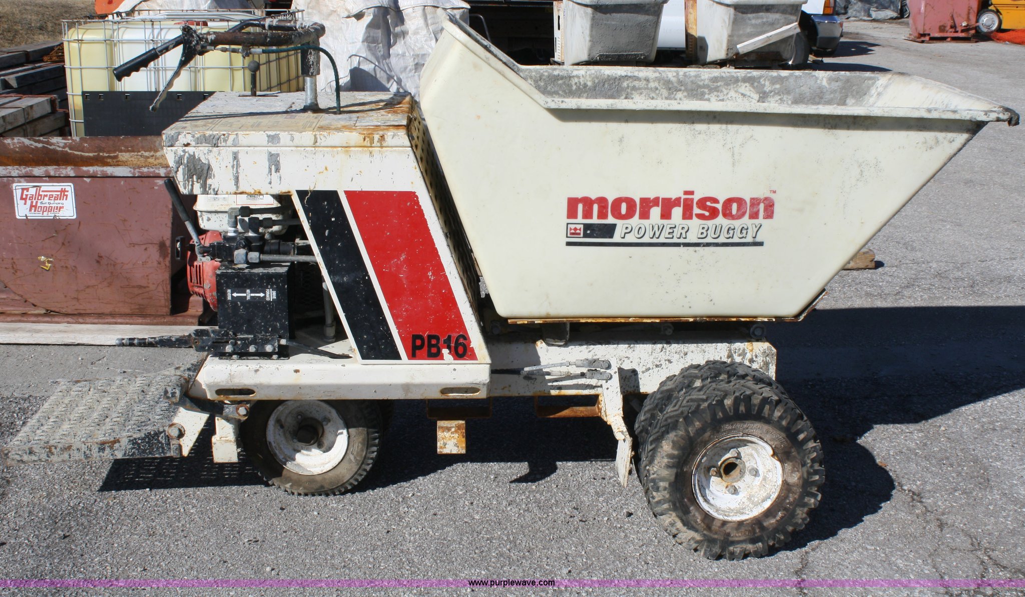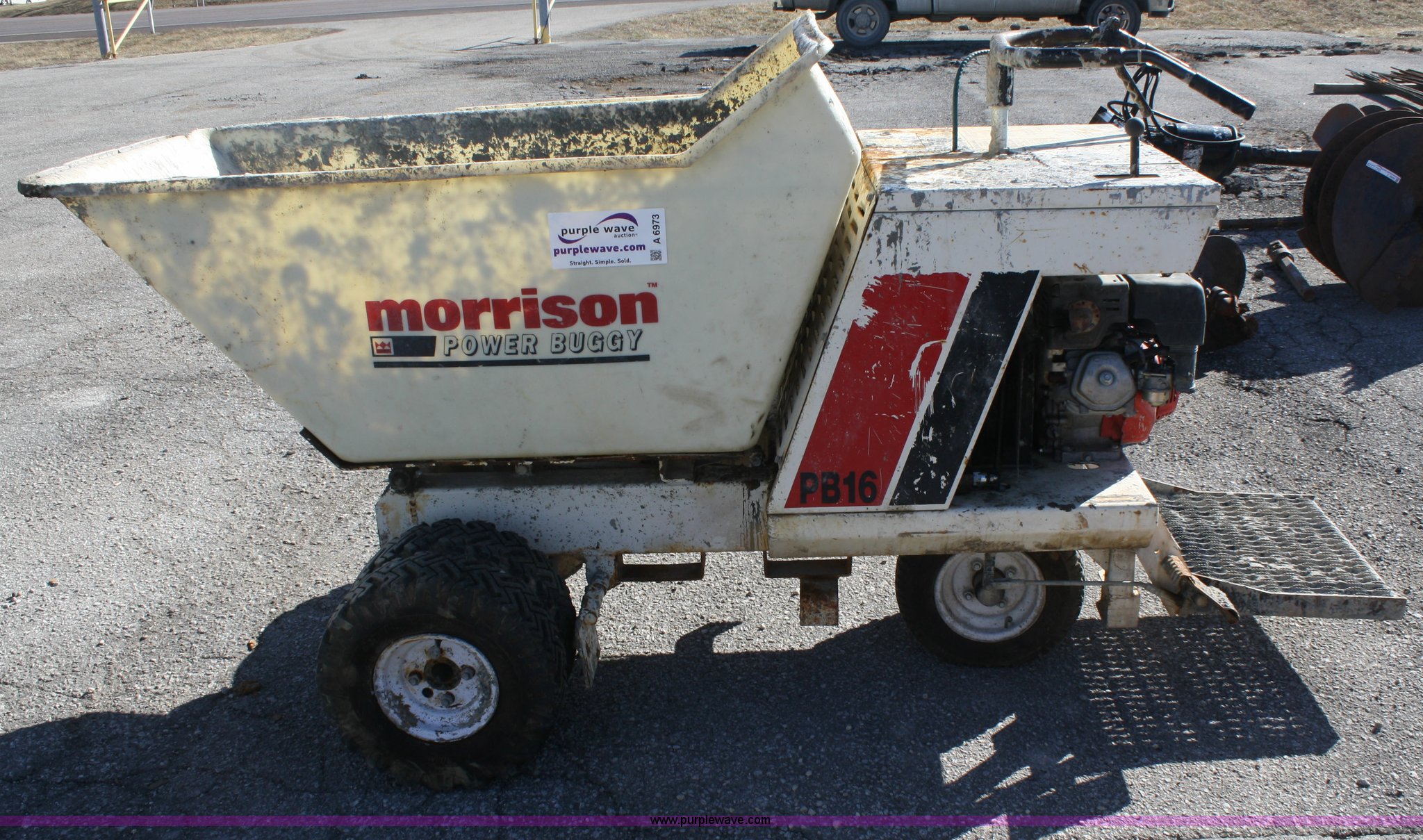 Purple Wave is selling a used Concrete Equip. or Acces. in Kansas. This item is a Morrison Concrete DB16 power buggy with the following: Honda 8hp engine, Self propelled, Hydraulic dump, 2/3 cu.yd capacity, 5.7-8 tires, Serial 0305-78904