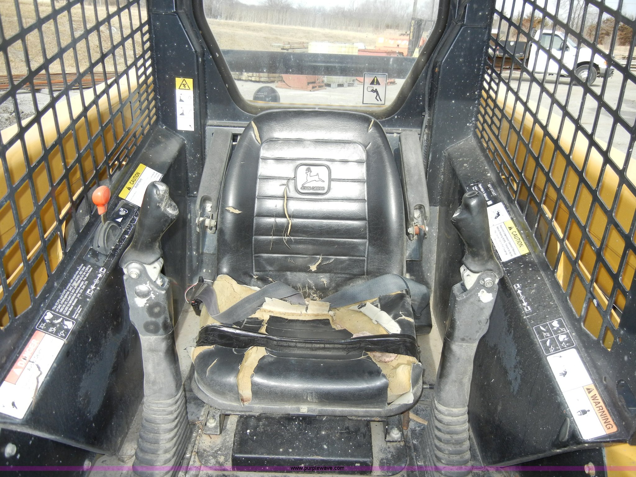 Purple Wave is selling a used Skid Steer Loader in Kansas. This item is a 1999 John Deere 250 skid steer with the following: 1,436 hours on meter, John Deere 3029T PowerTech 2.9L diesel engine, 64 HP, 1,750 lb lift capacity, Foot controls only, 6'x 34" bucket, Auxiliary hydraulics, 12-16.5 tires, 6,290 lbs. base operating weight, Cosmetic damage to seat, Serial KV0250A150235