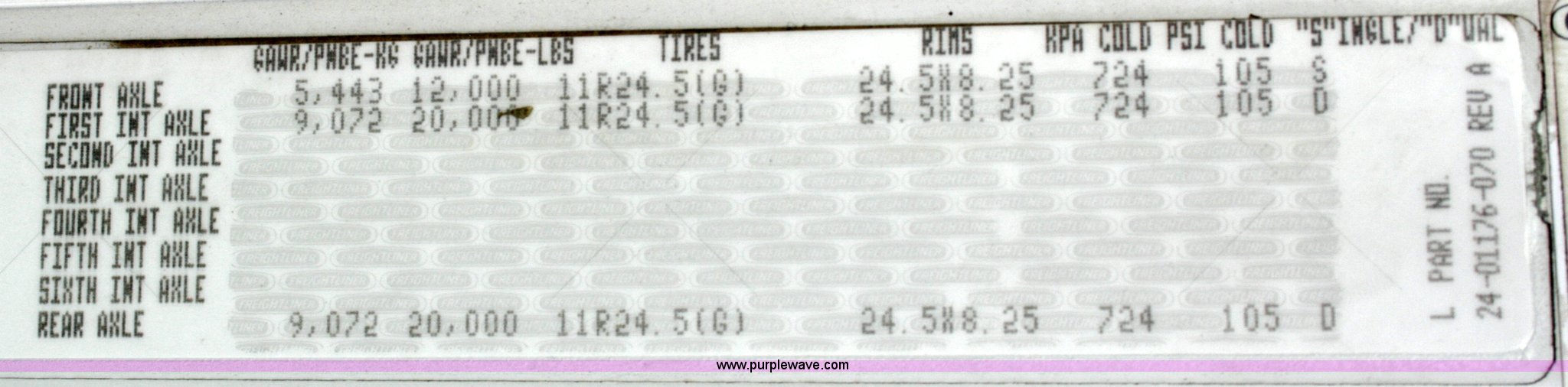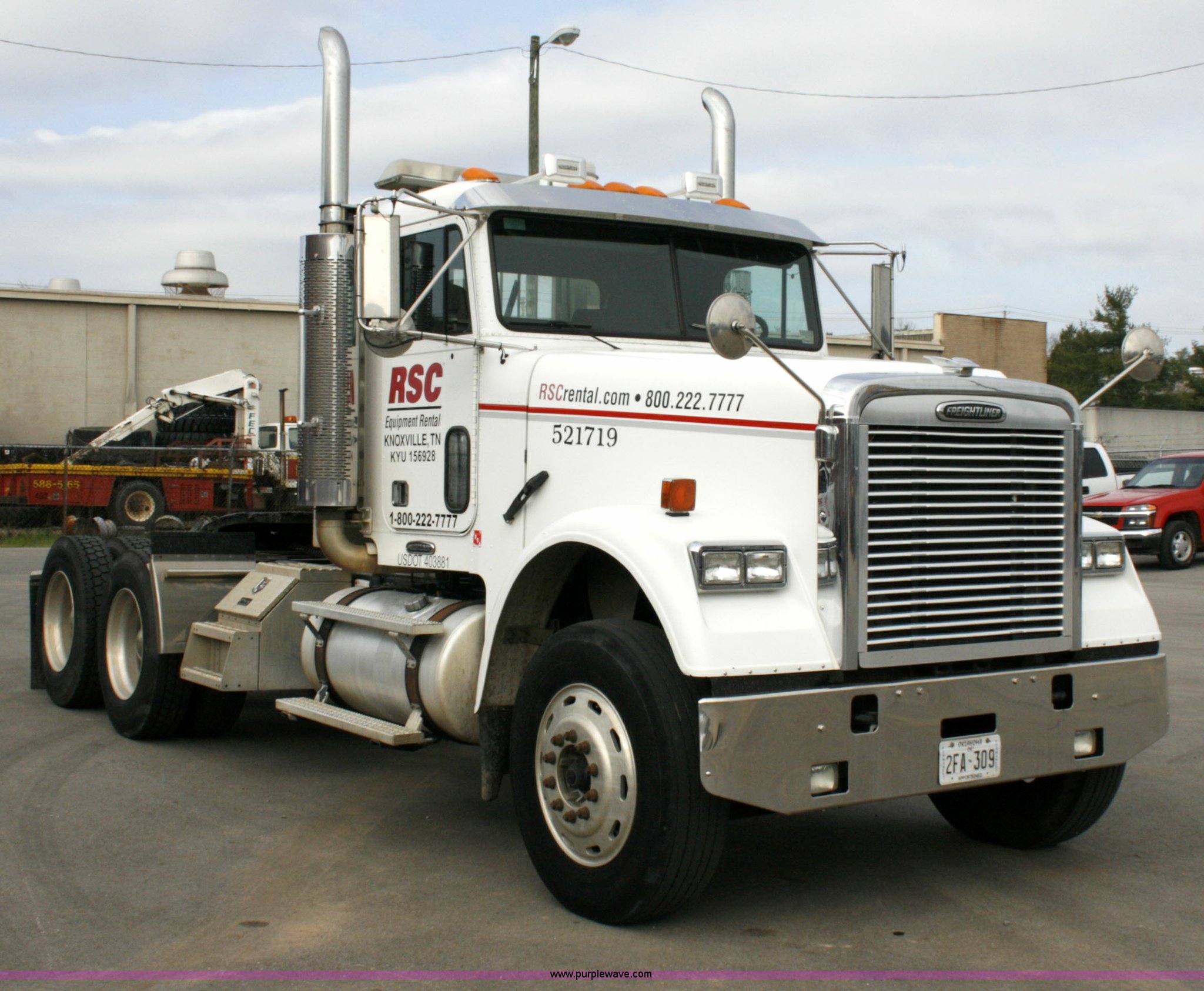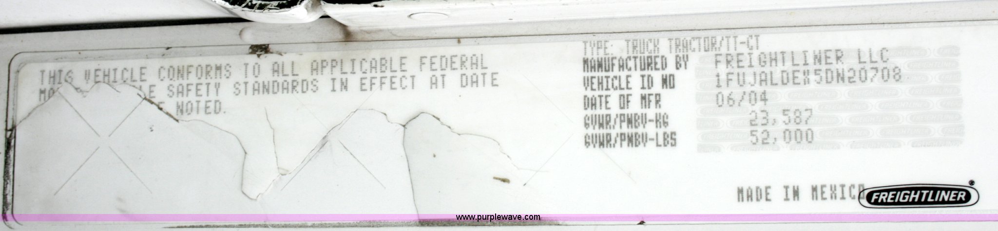 Purple Wave is selling a used Truck Tractor in Tennessee. This item is a 2005 Freightliner FLD120SD semi truck with the following: 234,091 miles on odometer, Caterpillar C13 L6, 12.5L, (763 CID) diesel engine, 10 speed manual transmission, Twin screw, AC and heat, AM/FM/cassette player, Exterior visor, Sliding fifth wheel hitch, PTO, Ledwell headache rack with window and chain hanger, Dual chrome stacks, Wet kit, Light bar, Dual 90 gallon fuel tanks, Aluminum wheels, 11R24.5 tires, GVWR 52,000 lbs, FAWR 12,000 lbs, IAWR 20,000 lbs, RAWR 20,000 lbs, Qualcomm radio not included, EIN 521719