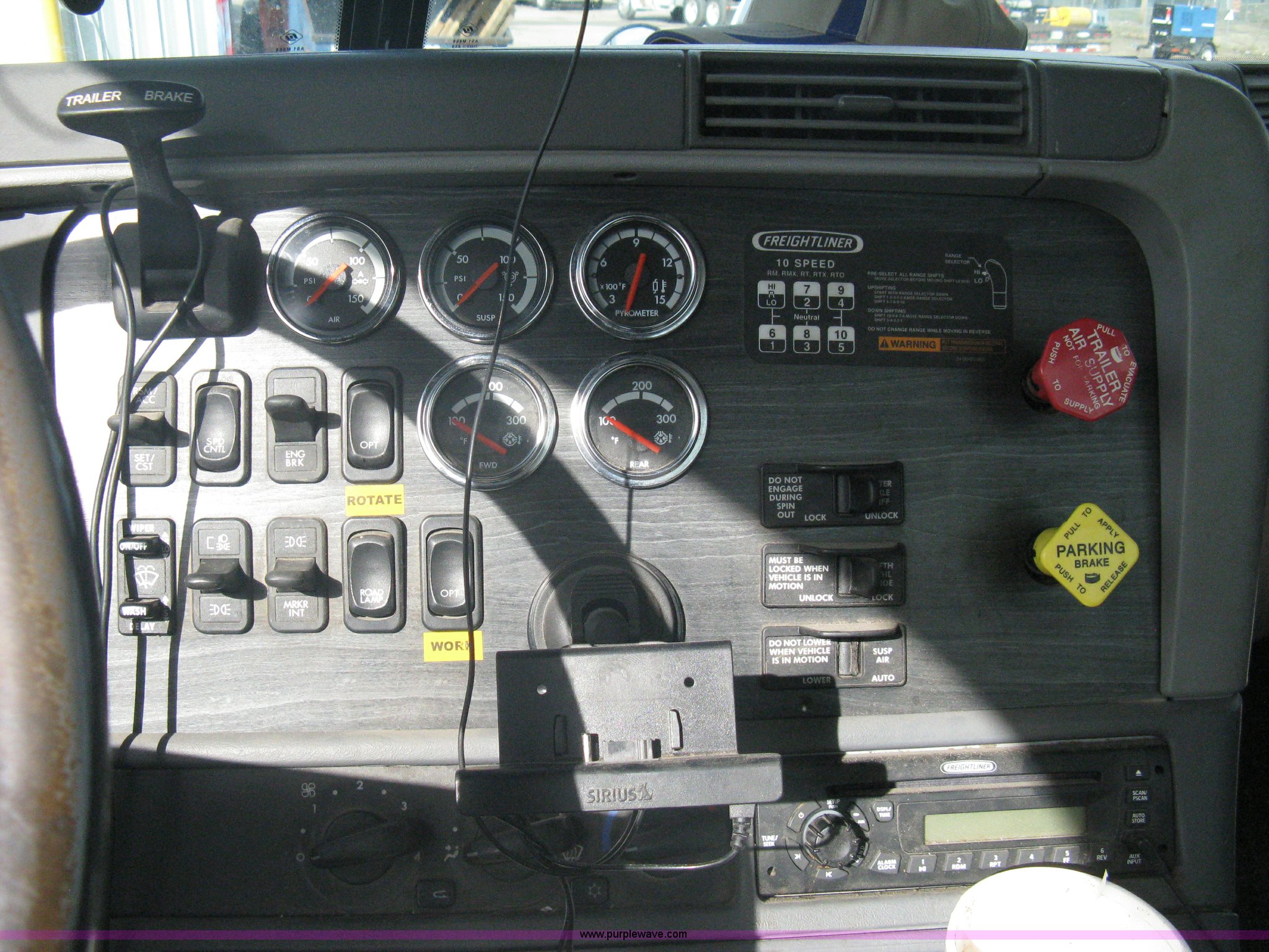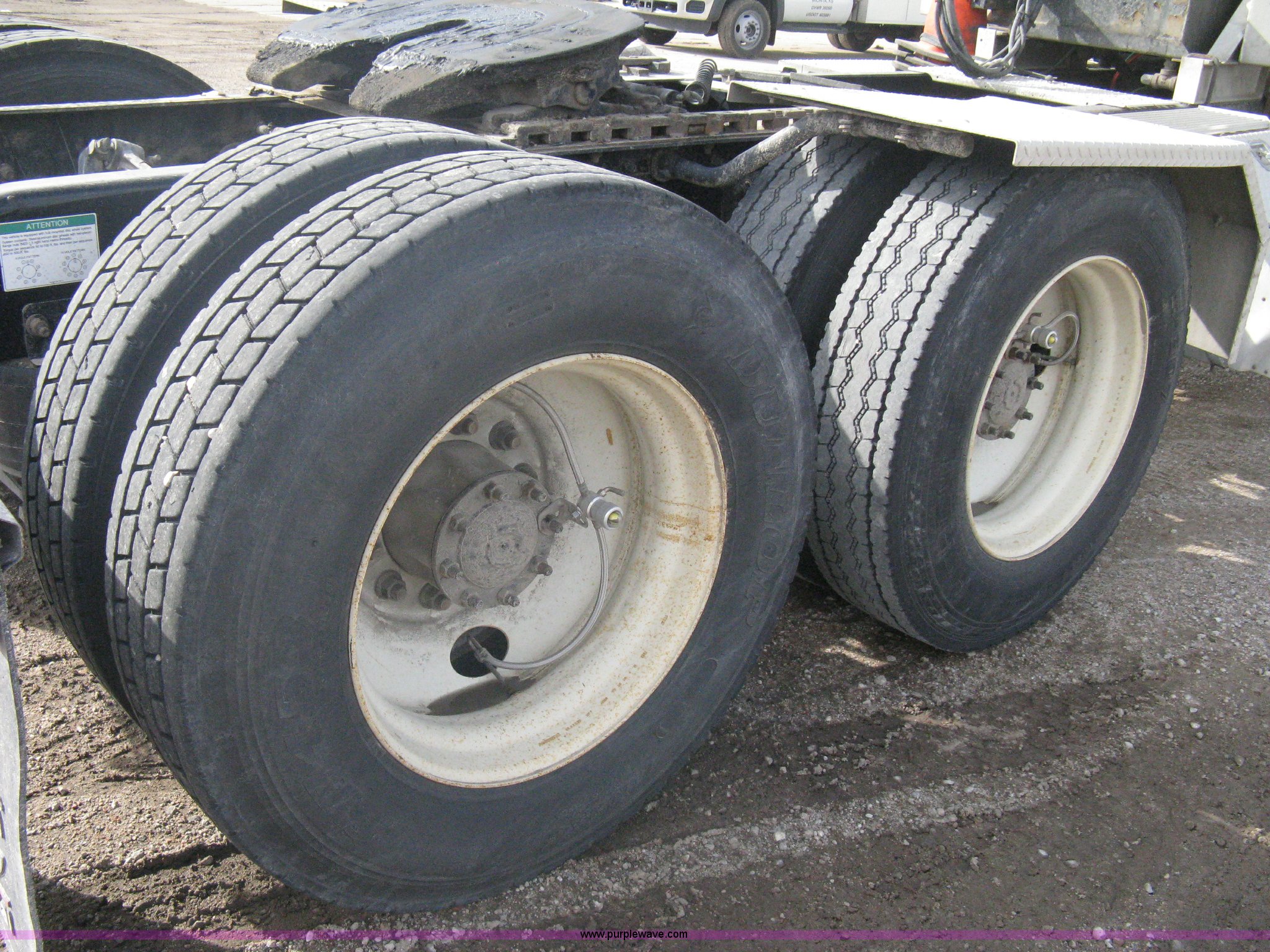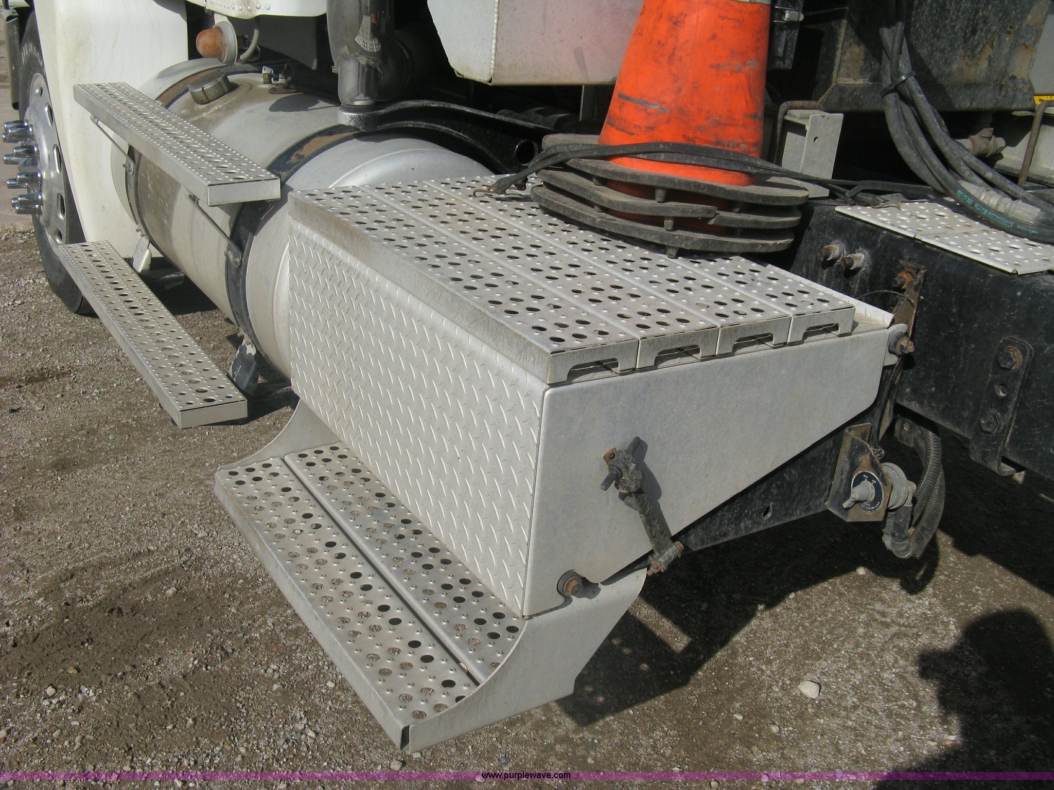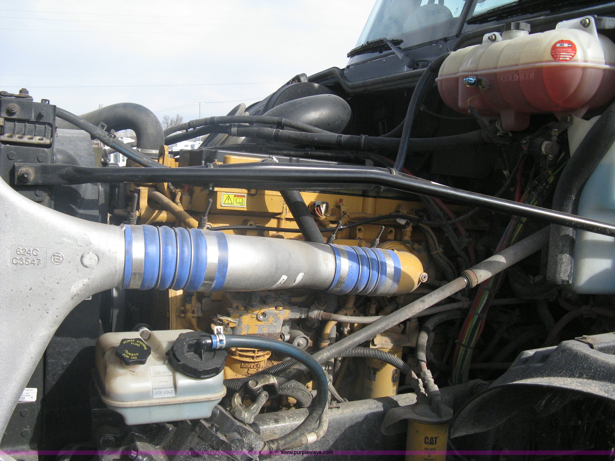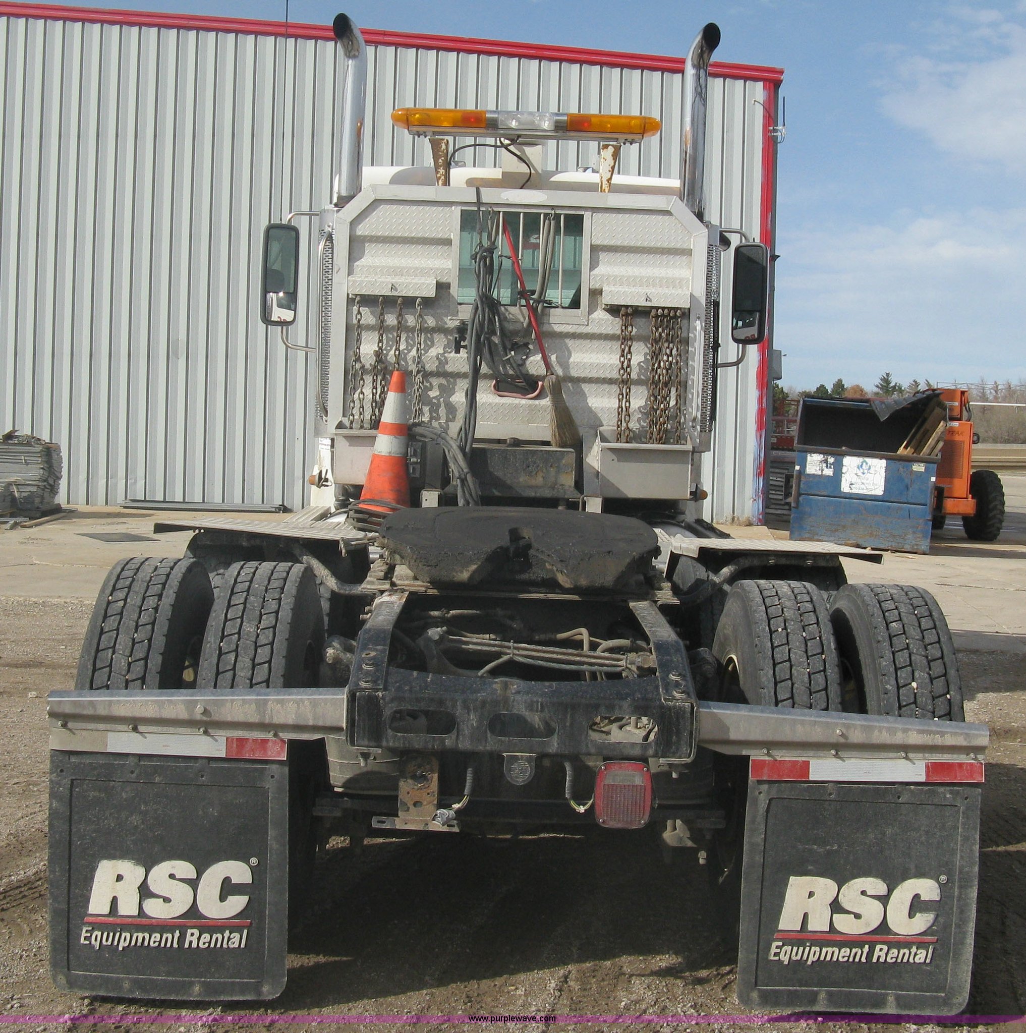 Purple Wave is selling a used Truck Tractor in Kansas. This item is a 2007 Freightliner Columbia-TA semi truck with the following: 275,283 miles on odometer, Caterpillar C13 L6, 12.5L, (763 CID) diesel engine, Bad cam shaft, one cylinder down, Eaton Fuller 10 speed manual transmission, Twin screw, AC and heat, Cruise control, AM/FM/CD player, Passenger daylight door, Air ride cab, Power passenger window, Heated mirrors, Passenger seat, Exterior visor, Chrome bumper, Block heater, Dual 90 gallon fuel tanks, Dual exhaust stacks, Aluminum deck plate, Ledwell headache rack, Window, Storage, Chain hanger, Aluminum quarter fenders, Amber caution light, Sliding fifth wheel, Step-up tool box, PTO, Wet kit, Air suspension, Air brakes, Jake brake, Brake controller, Wheel nut covers, GVWR 53,220 lbs, FAWR 13,220 lbs, IAWR 20,000 lbs, RAWR 20,000 lbs, 11R24.5 tires, Chains, binders, and traffic cones not included, All personal property items in cab will be removed, EIN 653496
