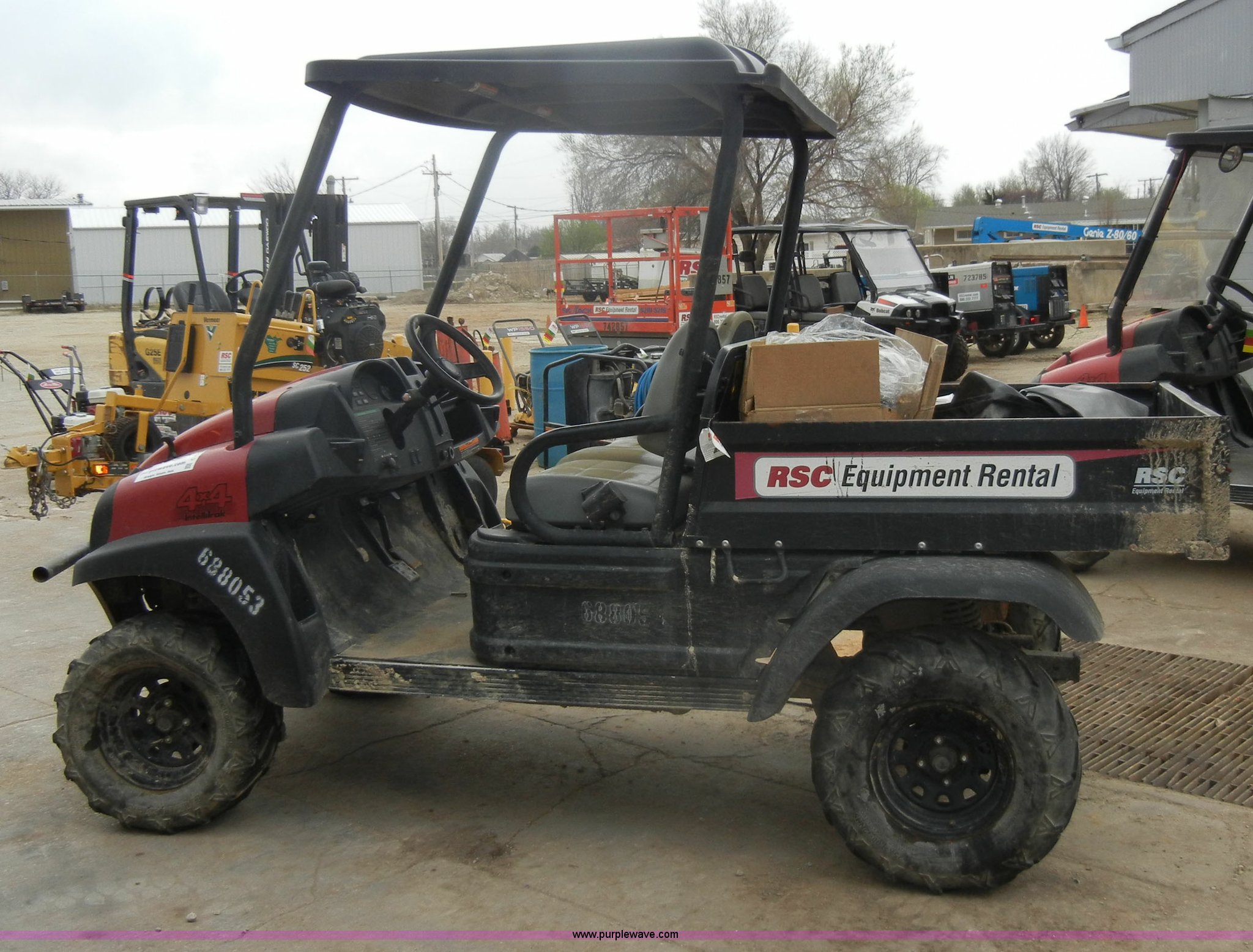 Purple Wave is selling a used Utility Vehicle in Kansas. This item is a 2007 Club Car XRT1550G IntelliTrak utility vehicle with the following: 1,600 hours on meter, Engine needs replaced, Present but not in machine, Bad transmission, Four wheel drive, Front push bar, Receiver hitch, Manual dump bed, Axle, Model 420851, Serial 14381, 25x11.00-12 tires, Serial RX0722762581, EIN 688053
