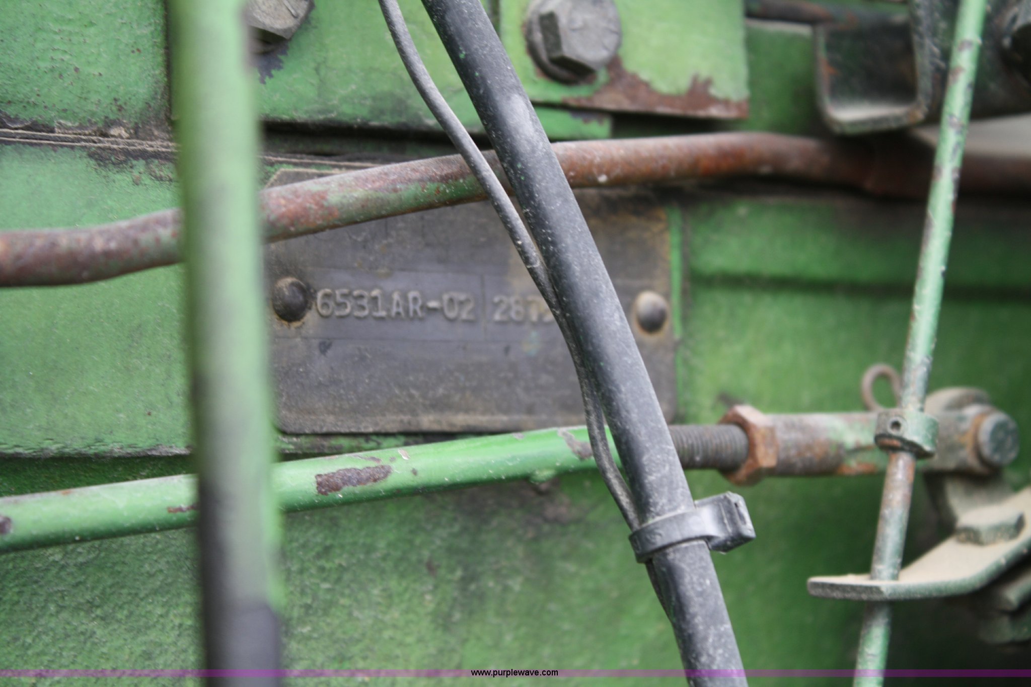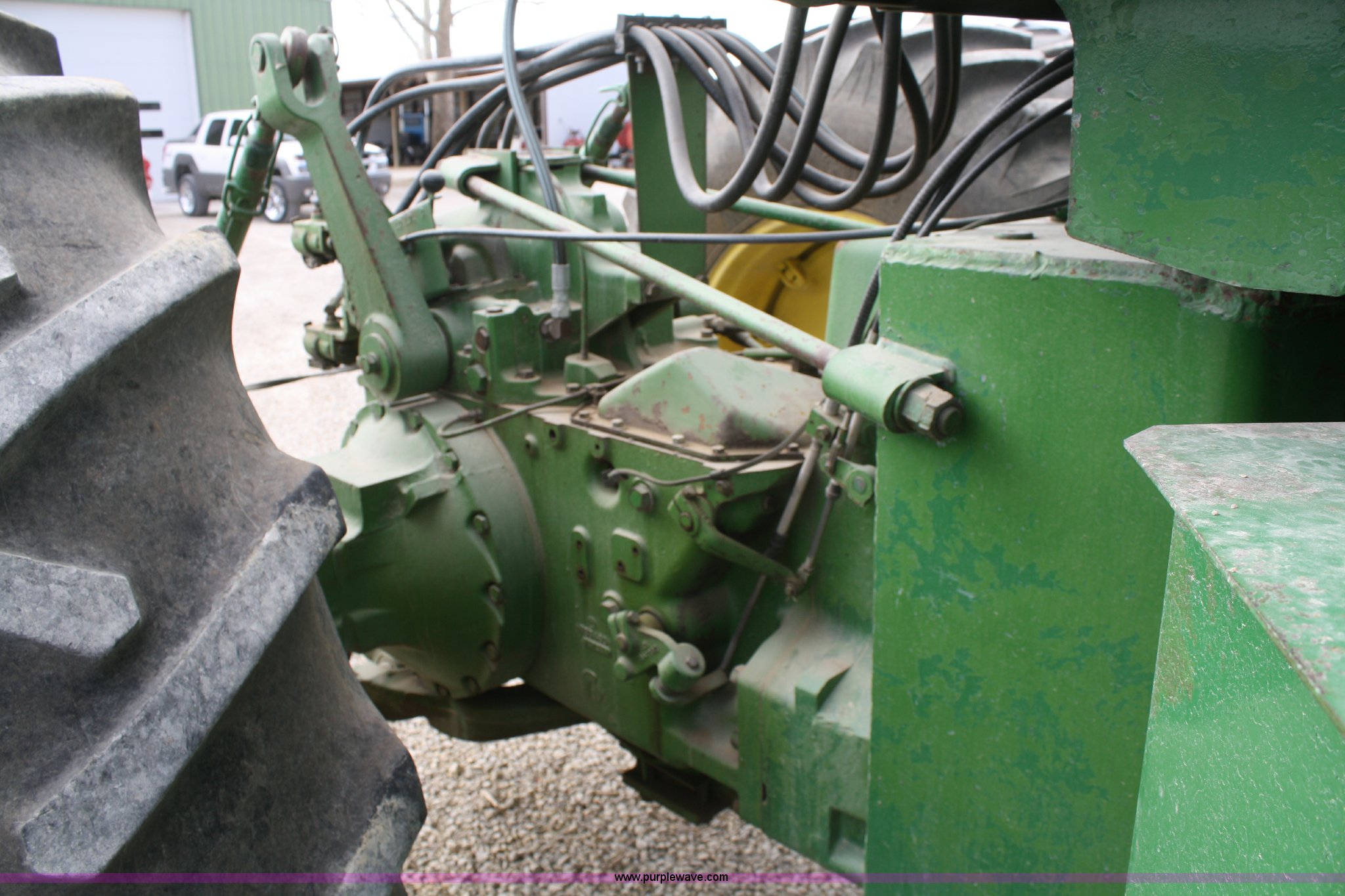 Purple Wave is selling a used Articulated 4-Wheel Drive Tractor in Kansas. This item is a 1974 John Deere 7520 articulating 4WD tractor with the following: 6,935 hours on meter, John Deere six cylinder diesel engine, 160 HP, Serial 287618R, Syncro Range Hi-Lo transmission, 16F-4R gears, AC and heat, Spring ride seat, Three point, Draw bar, 1000 PTO, (3) rear hydraulic remotes, Recently replaced muffler, exhaust pipe, and transmission shift cables, Reworked hydraulic remotes, 20.8-34 tires, Serial 003678R
