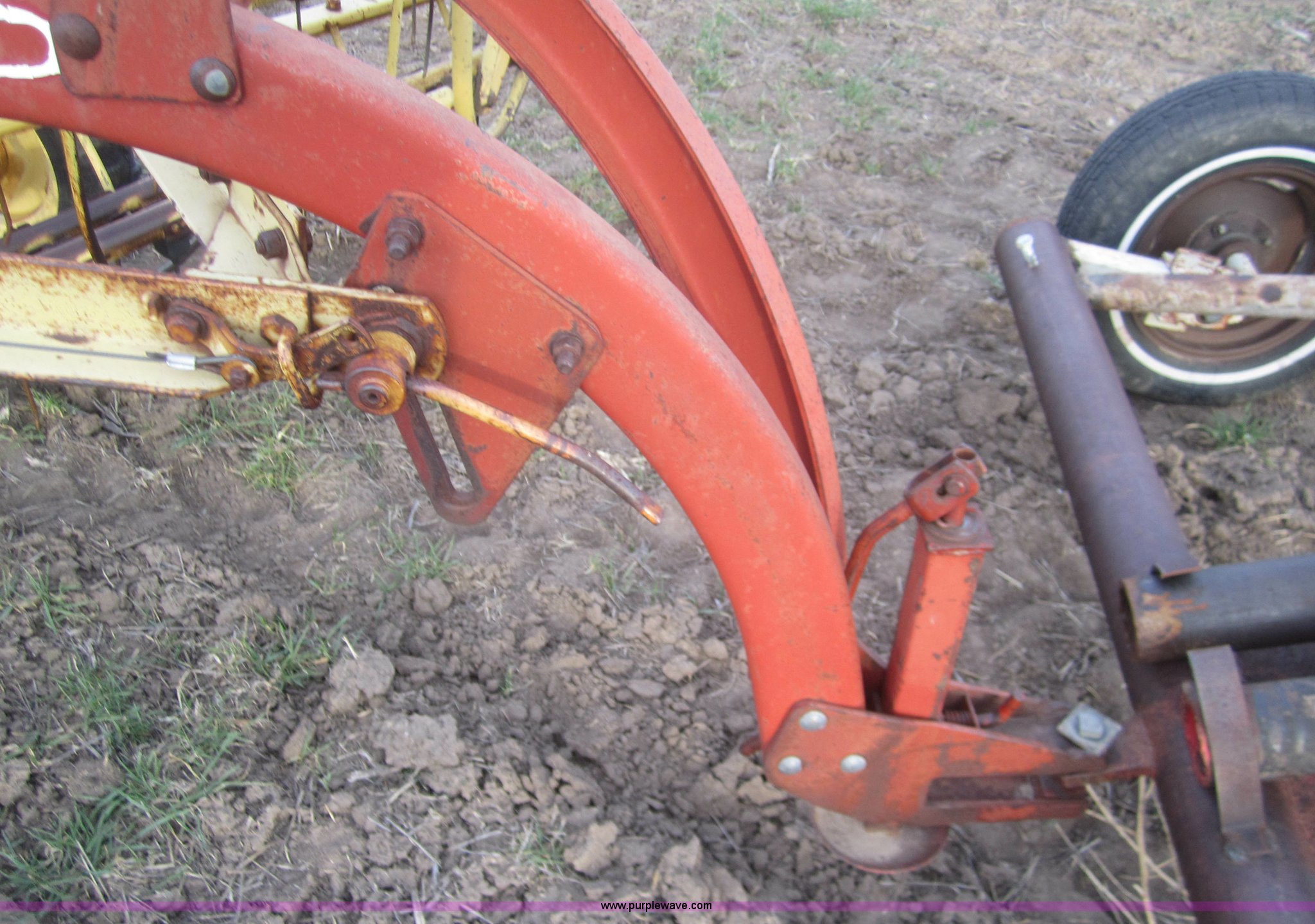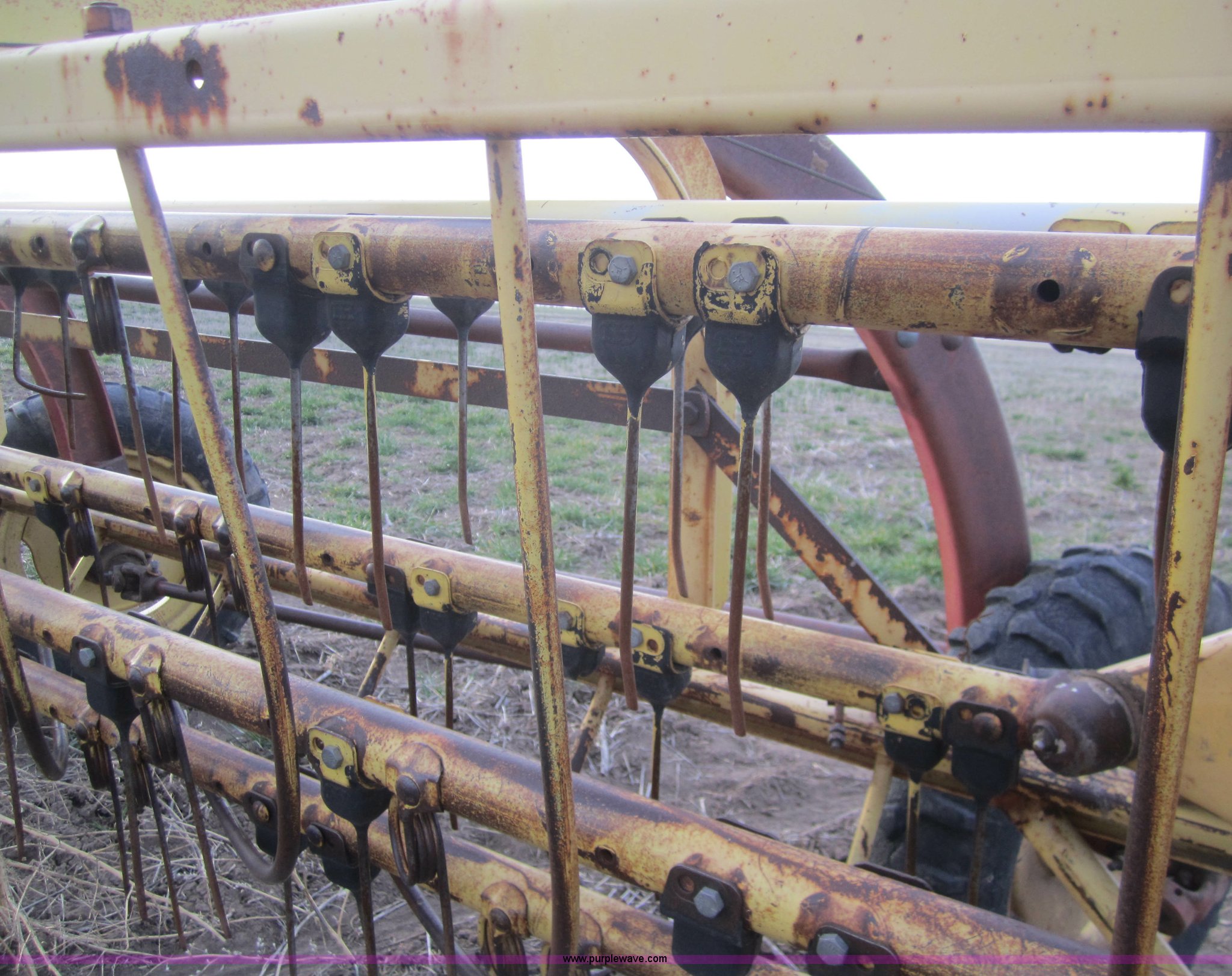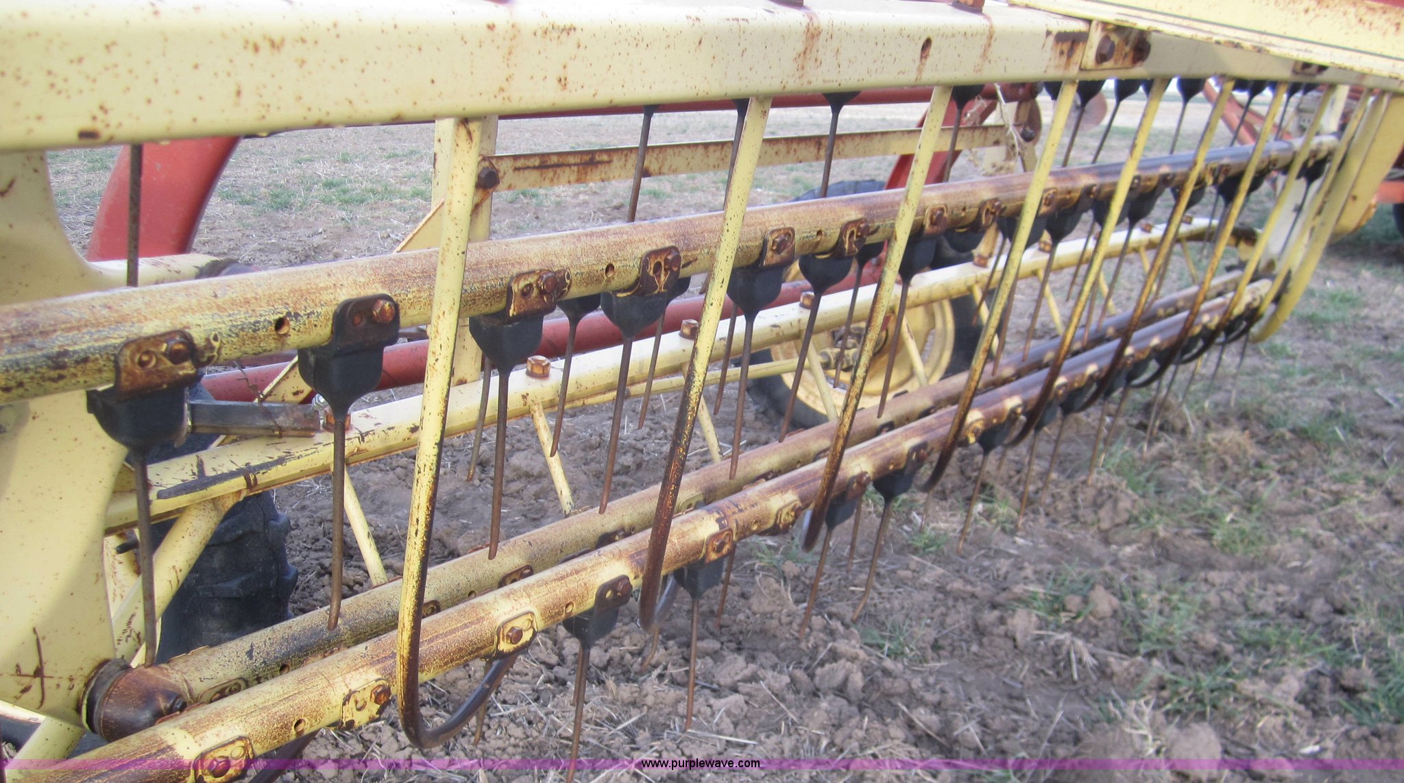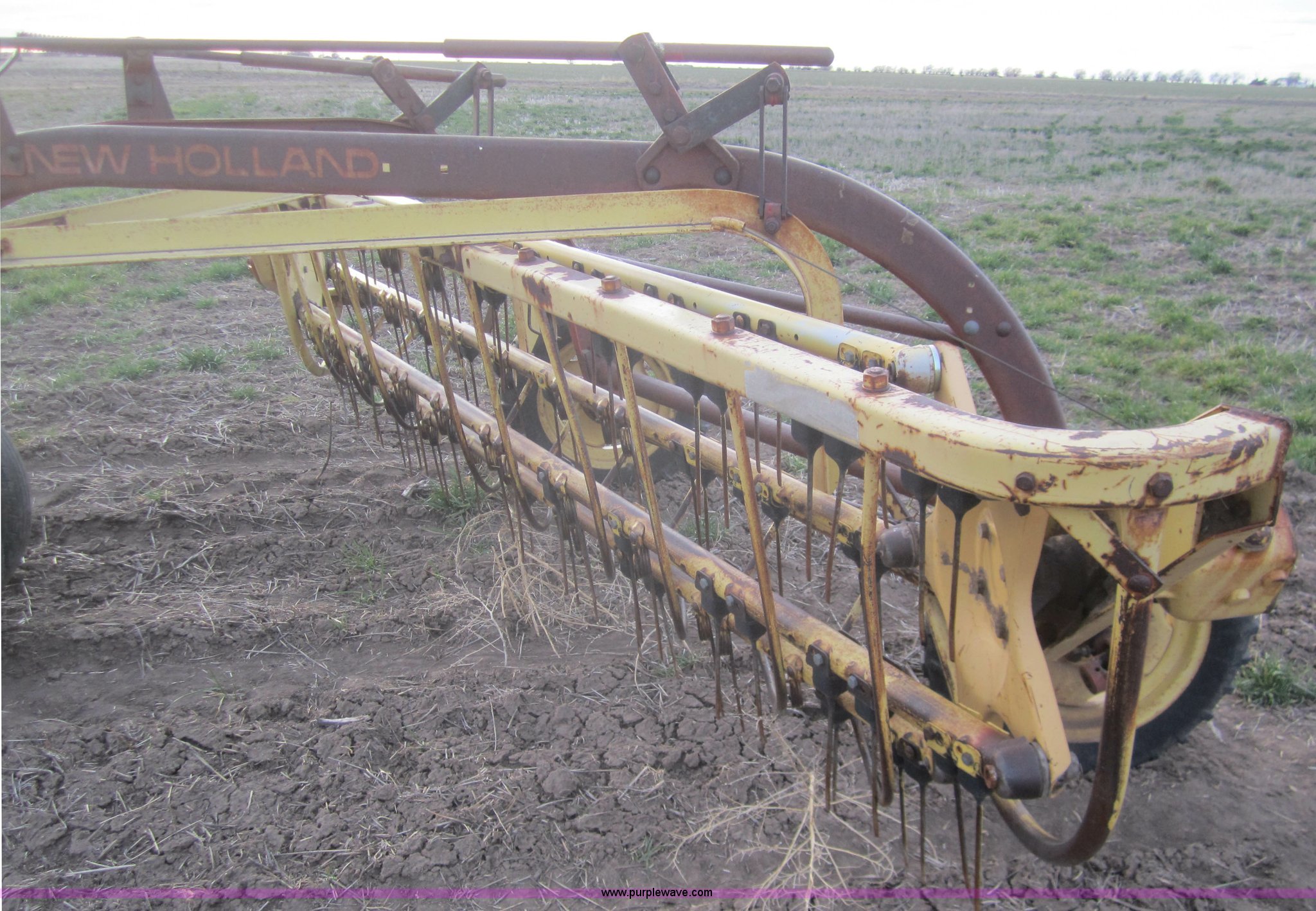 Purple Wave is selling a used Hay Rake in Kansas. This item is a Double hay rake with the following: New Holland 260 rake, Serial 471379, Five bar, New Holland 259 rake, Serial 189344, Five bar, 5.00-15 tires, Used on 16' rows