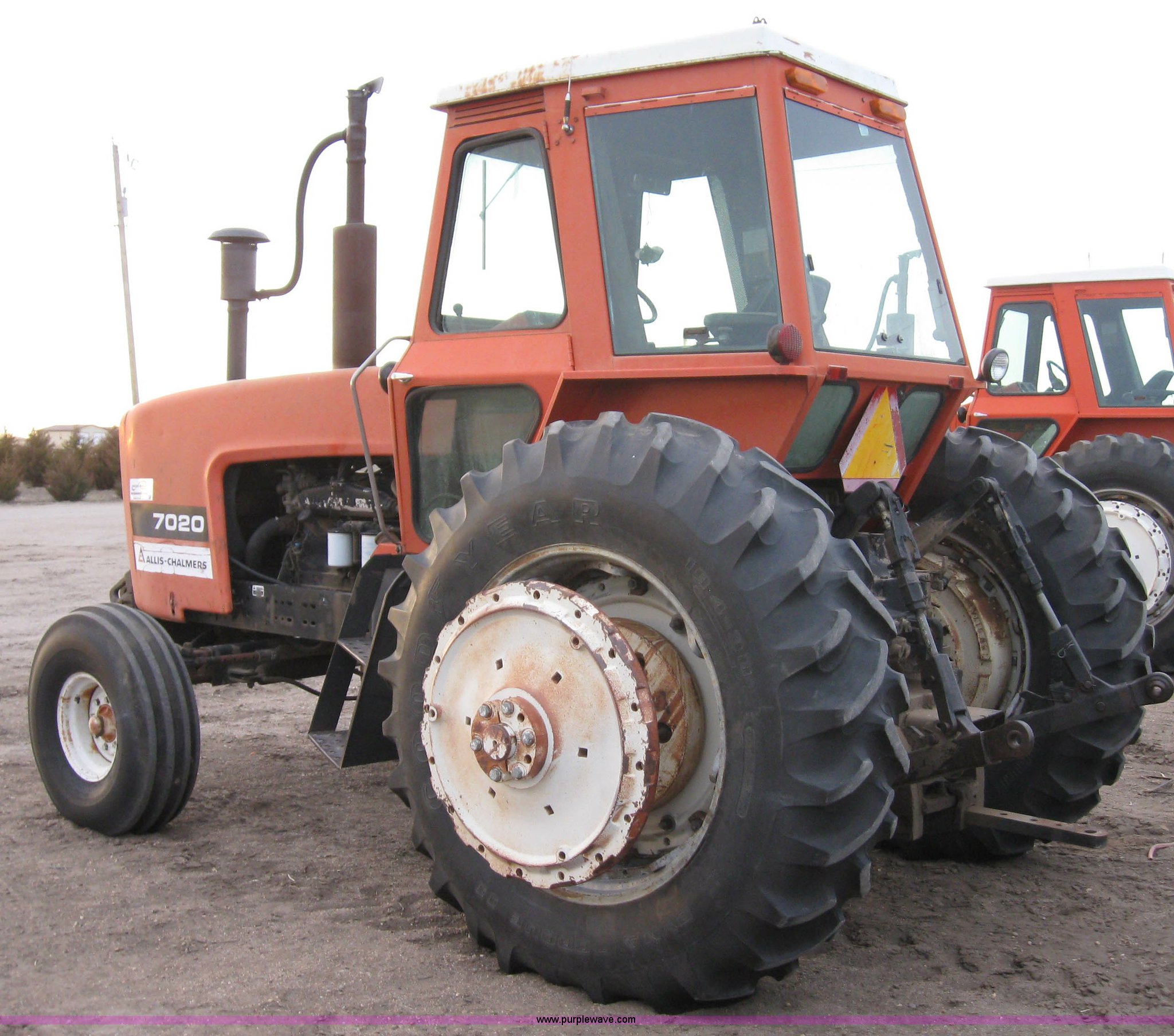 Purple Wave is selling a used Tractor in Kansas. This item is a Allis-Chalmers 7020 tractor with the following: 3,585 hours on meter, Allis-Chalmer six cylinder diesel engine, Model 649I, AC, Does not blow cold, AM/FM radio, Thee point, Draw bar, 1000 PTO, (4) rear hydraulic remotes, 11.00-16 front tires, 18.4-38 rear tires, Serial 10383