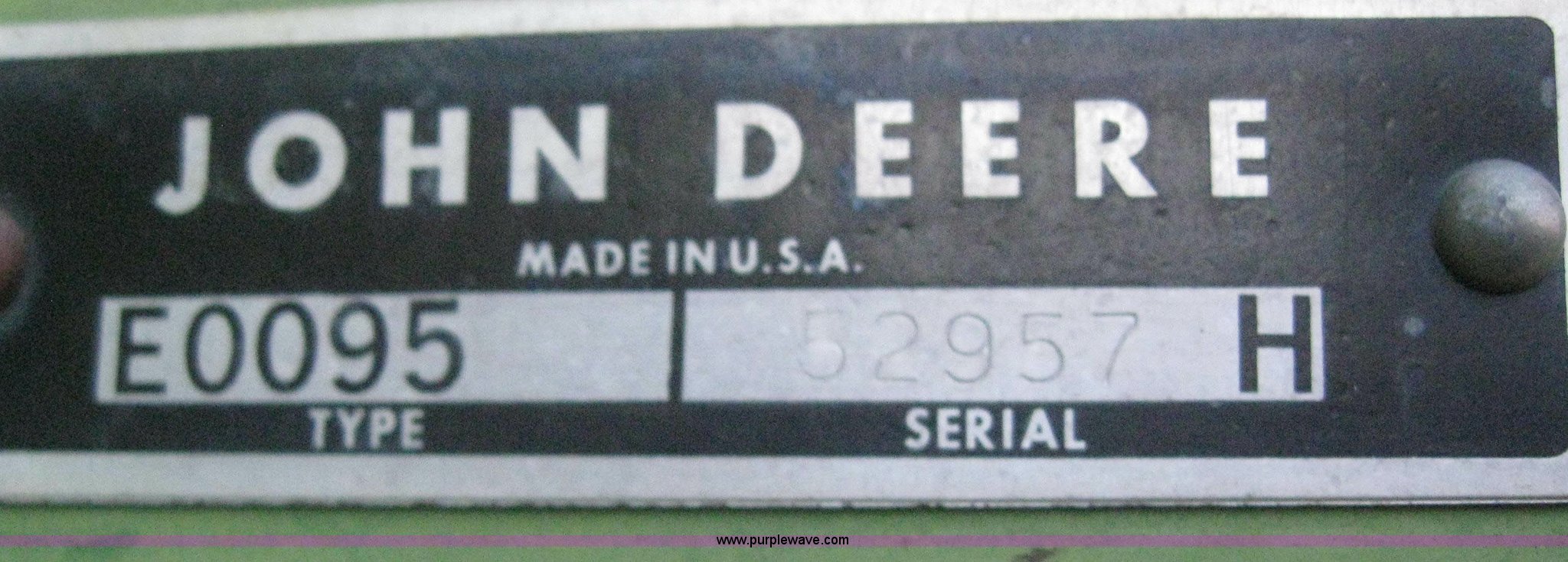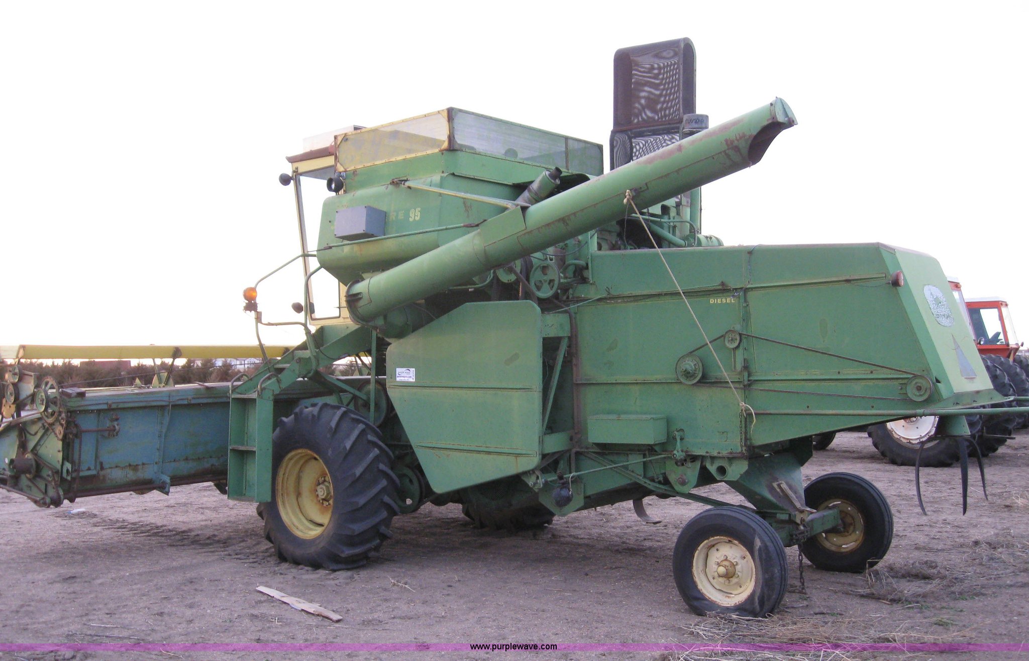 Purple Wave is selling a used Combine in Kansas. This item is a John Deere 95 combine with the following: 2,975 hours on meter, Six cylinder diesel engine, 18' header, 18.4-26 front tires, 7.50-16 rear tires, Serial 52957