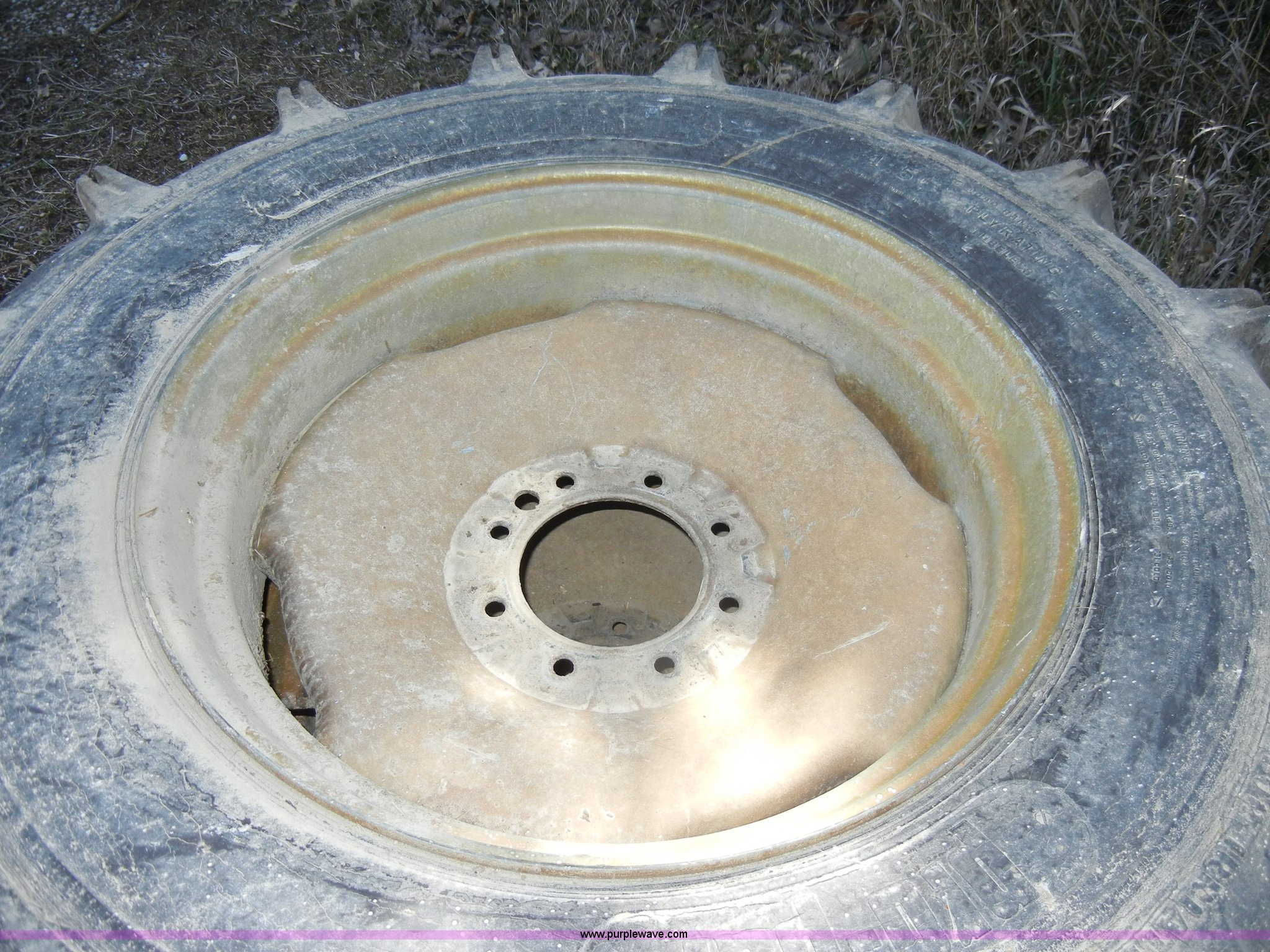 Purple Wave is selling a used Industrial Tires or Tracks in Kansas. This item is a (2) used irrigation tires with rims with the following: 11R24.5, Removed from Valley pivot