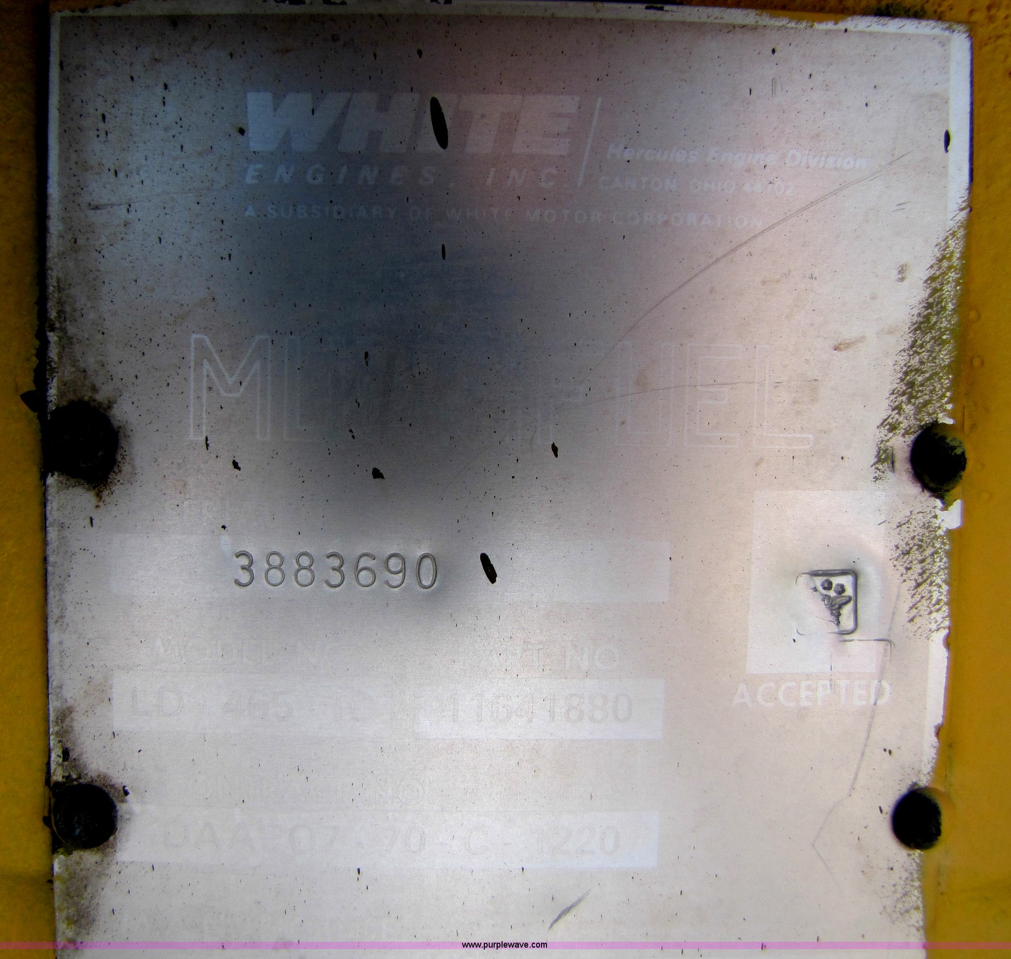 Purple Wave is selling a used Tools in Oklahoma. This item is a Hercules LD 465-10 six cylinder multifuel engine with the following: Serial 3883690