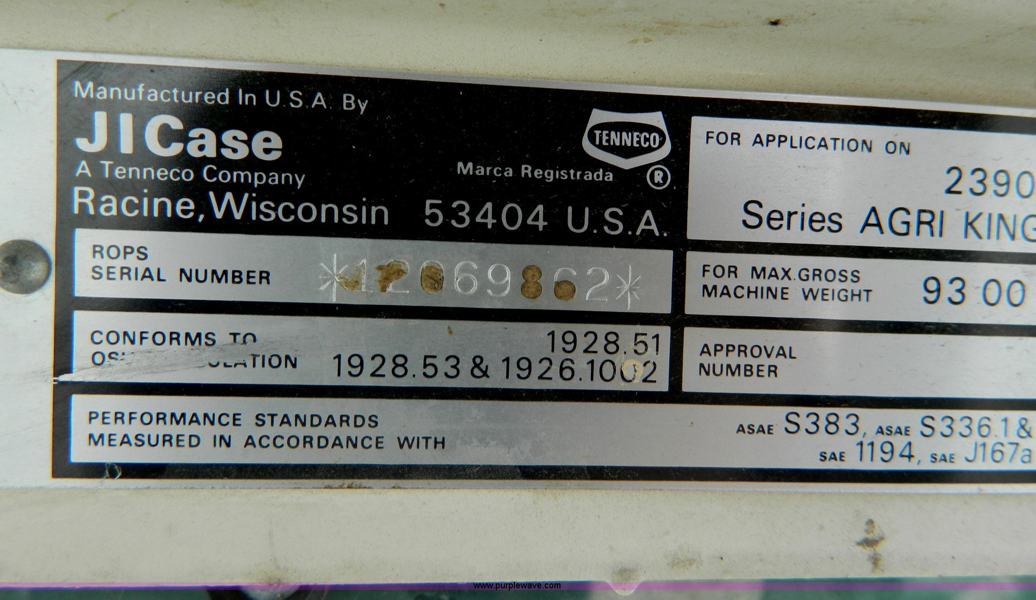 Purple Wave is selling a used Tractor in Kansas. This item is a 1982 Case 2590 tractor with the following: 4,492 hours on meter, Six cylinder diesel engine, Powershift transmission, Positrac rear end, AC and heat, Spring ride seat, Tilt wheel, AM/FM, Three point quick attach, Draw bar, 540/1000 PTO, (4) rear hydraulic remotes, Inner rear weights, 14L-16.1 front tires, 18.4-38 rear tires, Cab door sprung, Glass and molding included, Serial 9923191