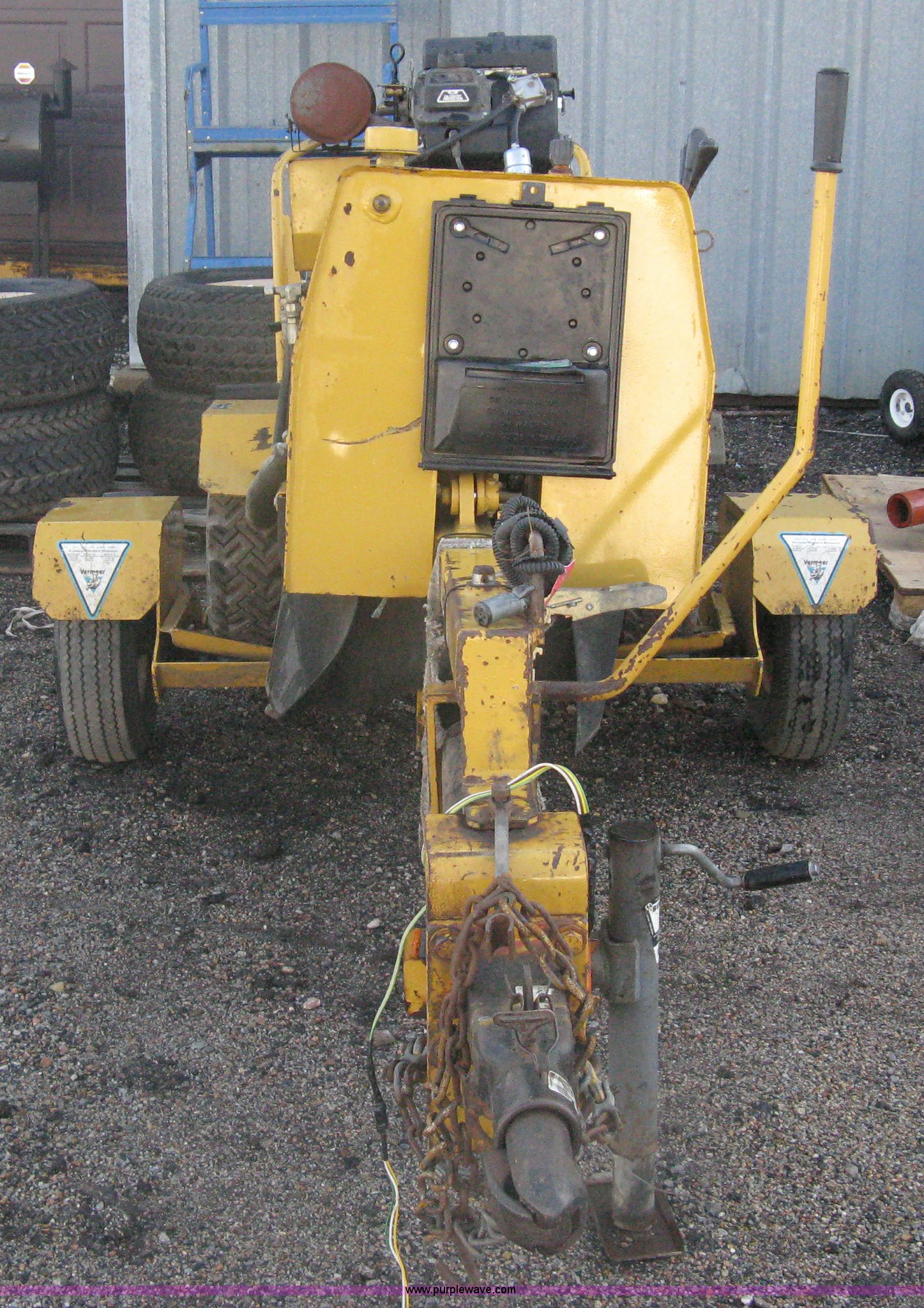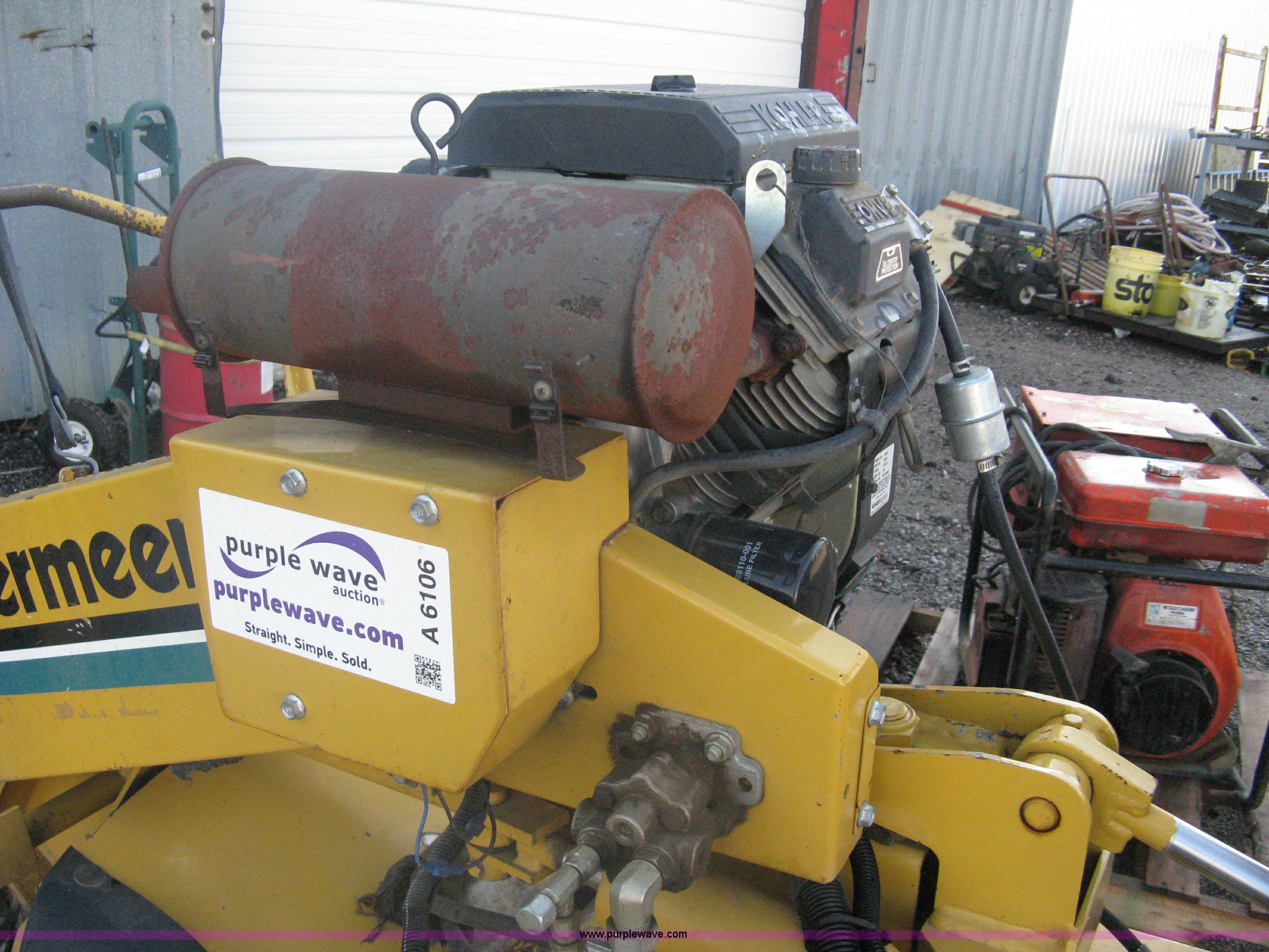 Purple Wave is selling a used Wood Chipper or Stump Grinder in Kansas. This item is a Vermeer 222 stump grinder with the following: 3,363 hours on meter, Kohler CH205 gas engine, Key start, Vermeer TLR22 single axle trailer, Serial 1VRK09136S1000457, 2" ball, Trailer lights, 5.70-8 tires, Serial 1VRD07105R1001046