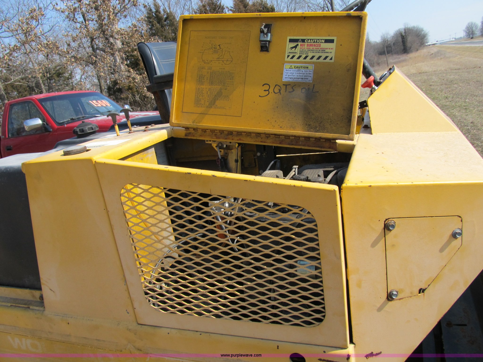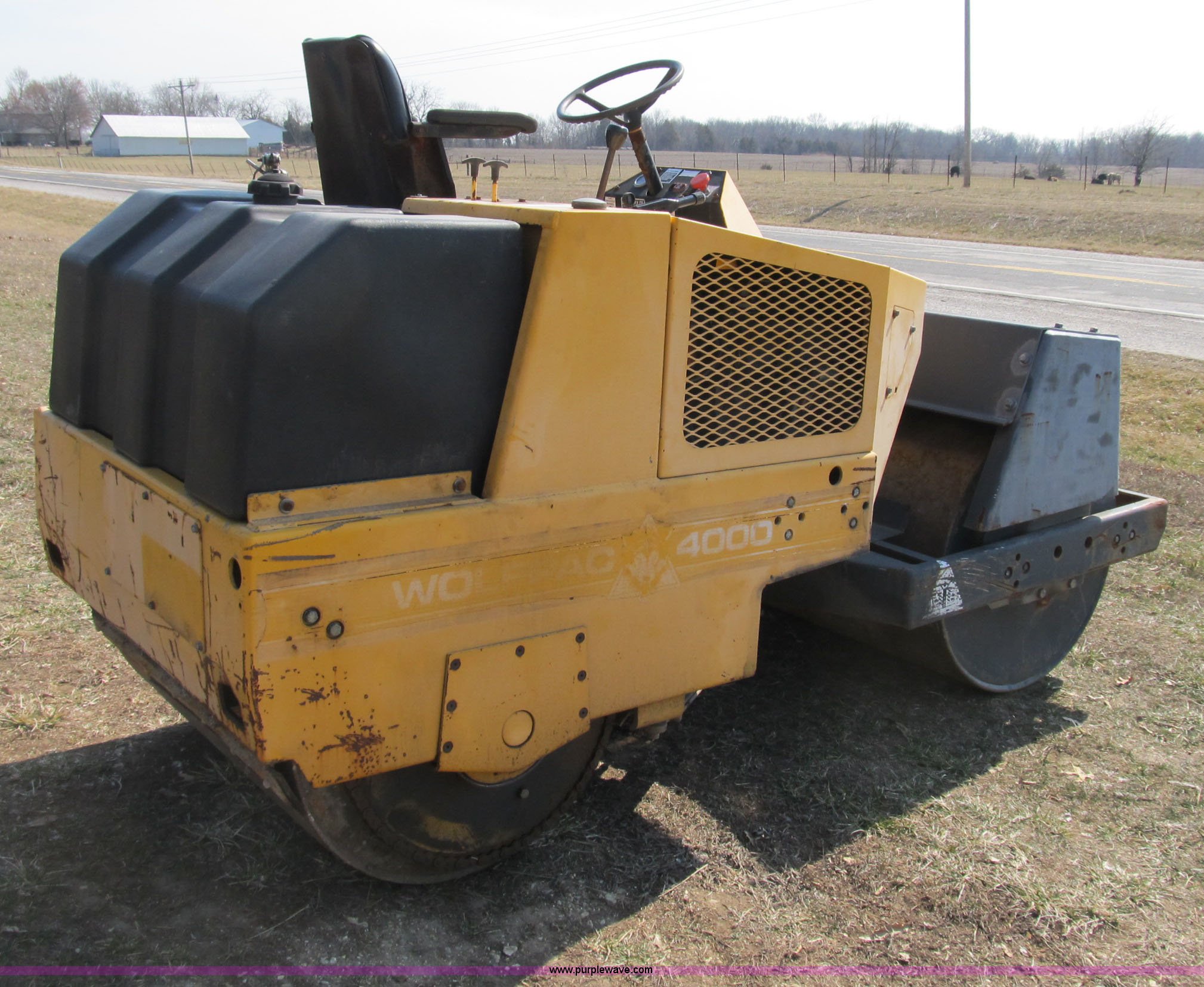Purple Wave is selling a used Double Drum Roller Compactor in Missouri. This item is a 2001 Stone Wolfpac 4000 double drum roller with the following: 450 hours on meter, Deutz two cylinder diesel engine, 20 HP, Serial 0330908788, Hydrostatic rear drum drive, Hydrostatic power steering, Center articulation, 40"W x 30" diameter drums, Water control, gravity geed, 8 gallon fuel tank, Vibrating front drum, 68" wheelbase, 4.5 mph max speed, 4,520 lbs. base operating weight, 3,879 lbs dry weight, 6,140 lbs ballasted weight, Manuals and service records available, Serial 112001397
