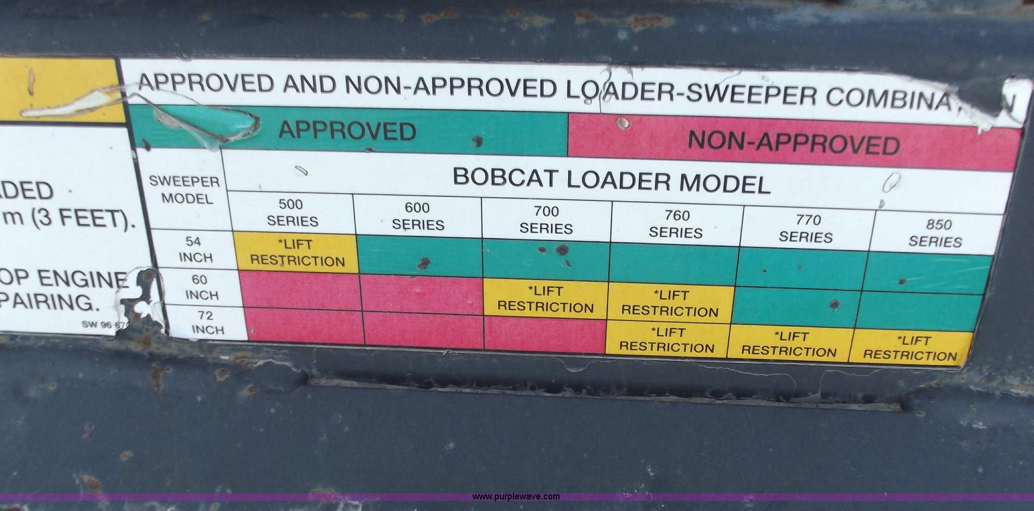 Bobcat 60" sweeper has sold in Chelsea, Oklahoma for $797.50. Item B6177 sold on March 29th, 2012.