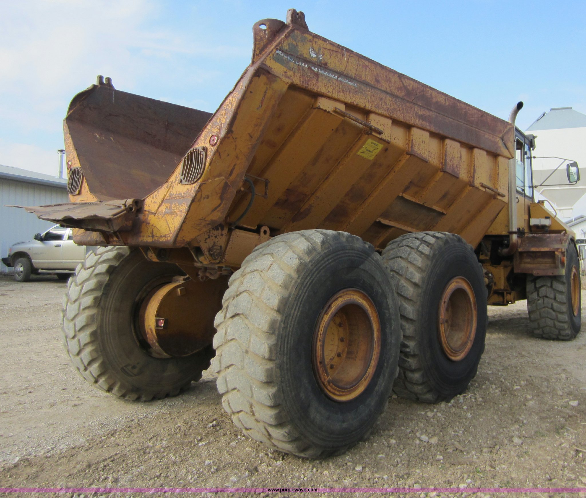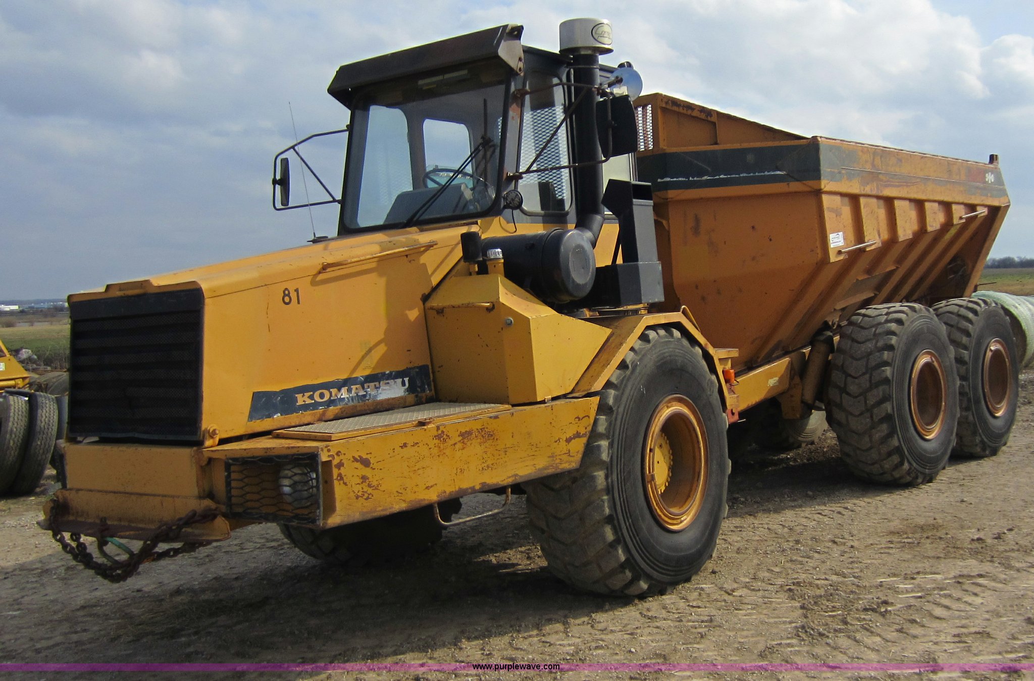 Purple Wave is selling a used Articulated Haul Truck in Kansas. This item is a 1989 Komatsu HA270 6x6 articulated haul truck with the following: 1,380 hours on meter, Komatsu S6D125 six cylinder diesel engine, 240 HP, Automatic transmission, AC and heat, 27 yd. capacity, 23.5R25 tires, 39,300 lbs. base operating weight, Air end gate, Air over hydraulic brakes, Weak brakes, Serial N65457