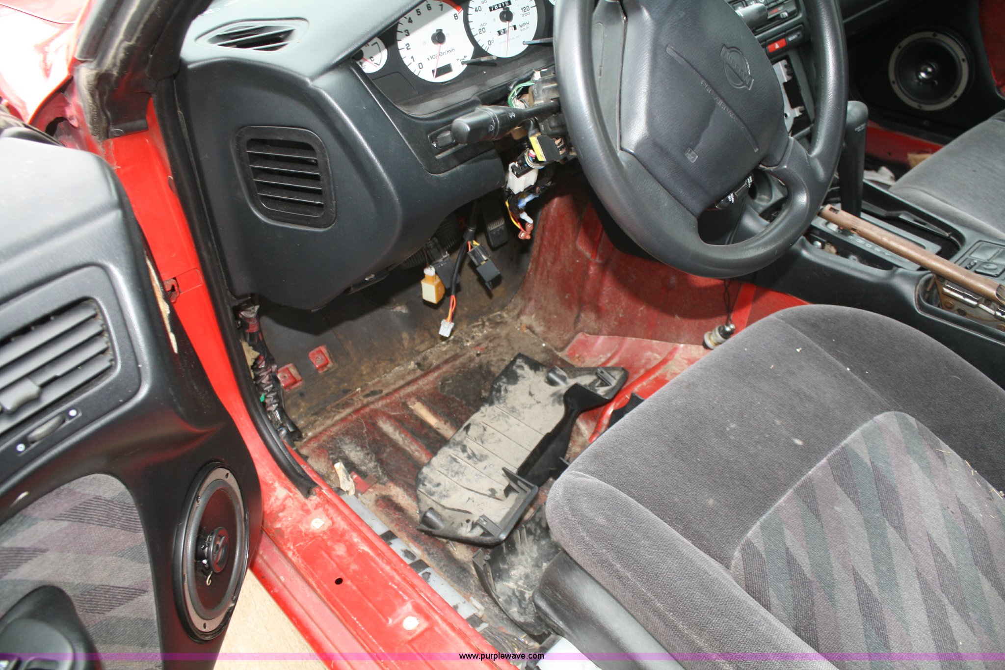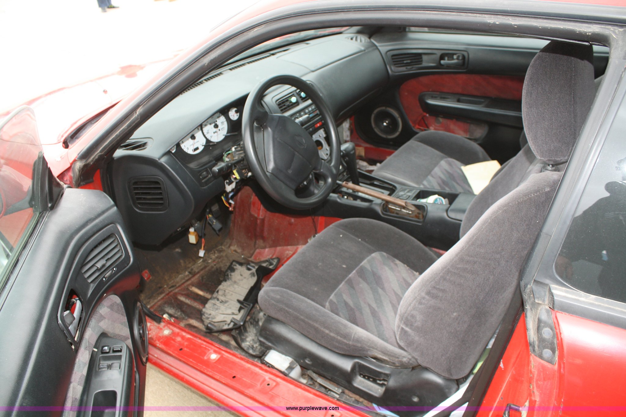 Purple Wave is selling a used Passenger Vehicle in Kansas. This item is a 1995 Nissan 240S with the following: 178,416 miles on odometer, 2.4L I4 MPI engine, Automatic transmission, AC and heat, Cruise, Power windows and locks, Cloth interior, 205/55R16 tires, Interior/exterior cosmetic damage, Dead battery, No keys, Steering column and interior disassembled, Rear spoiler removed, AV# 0053