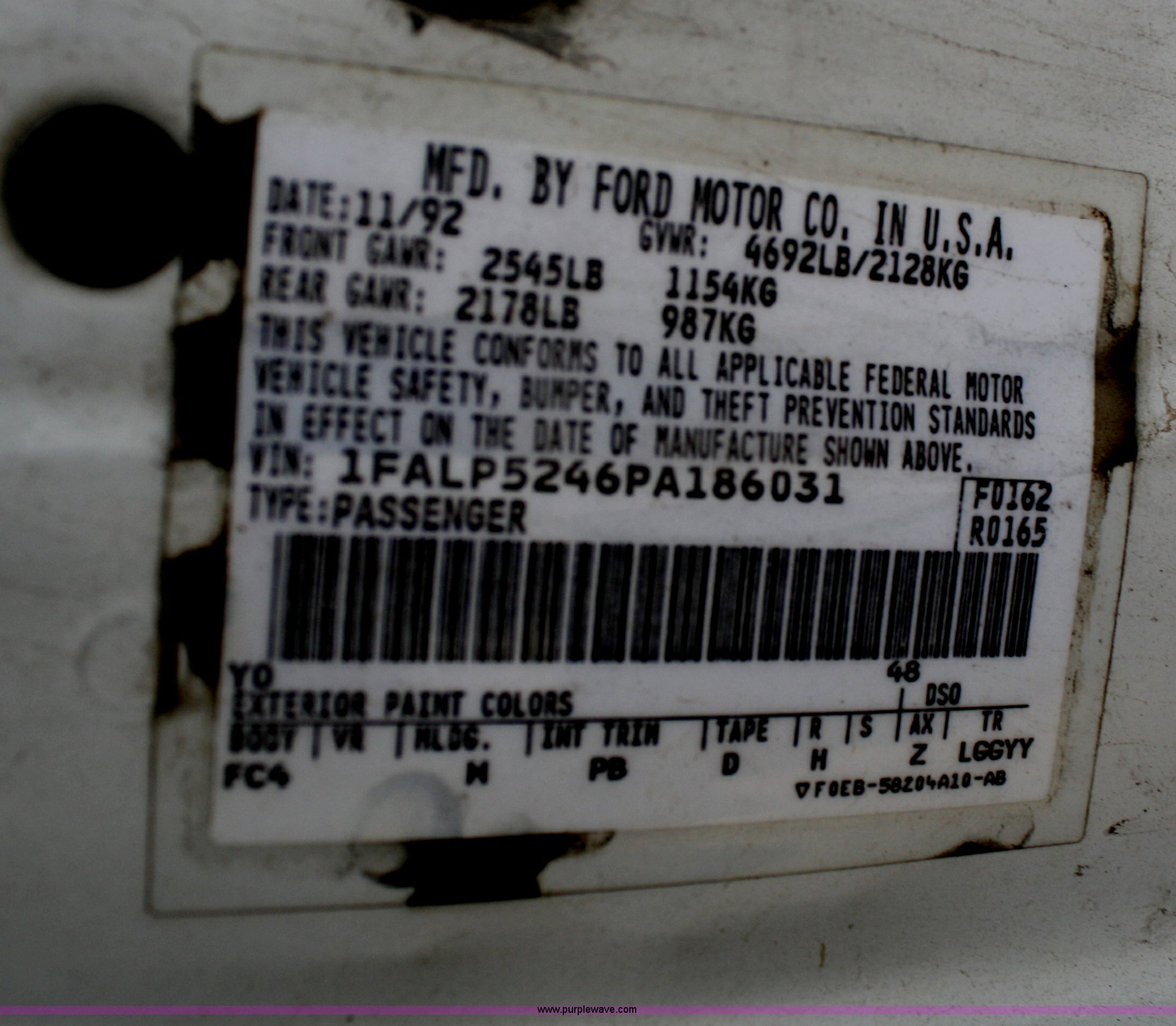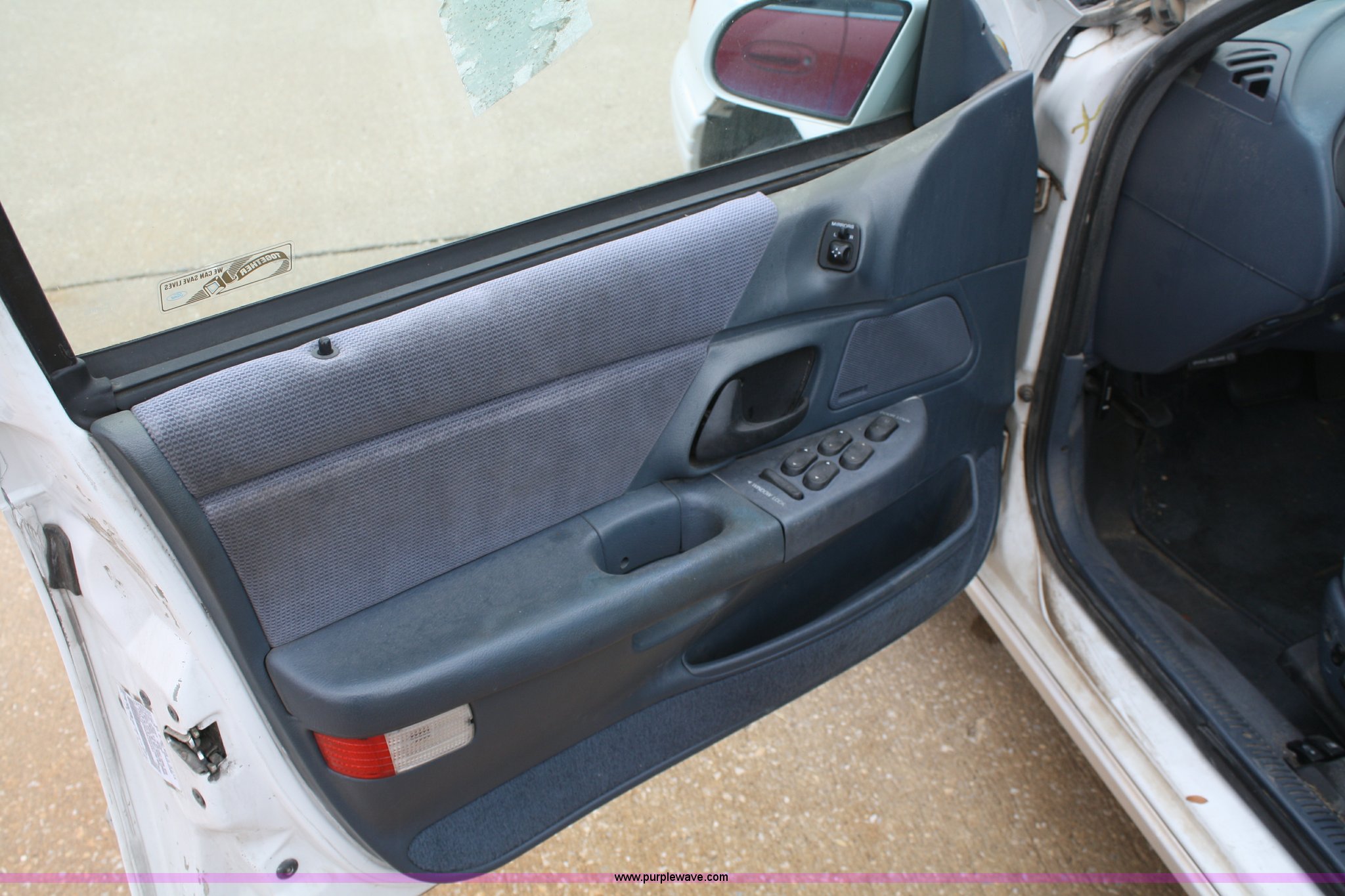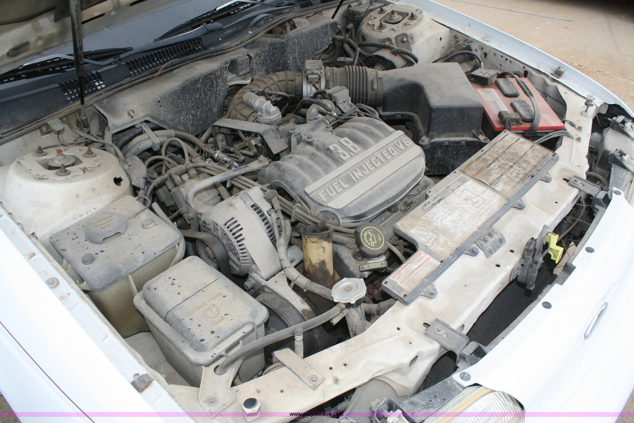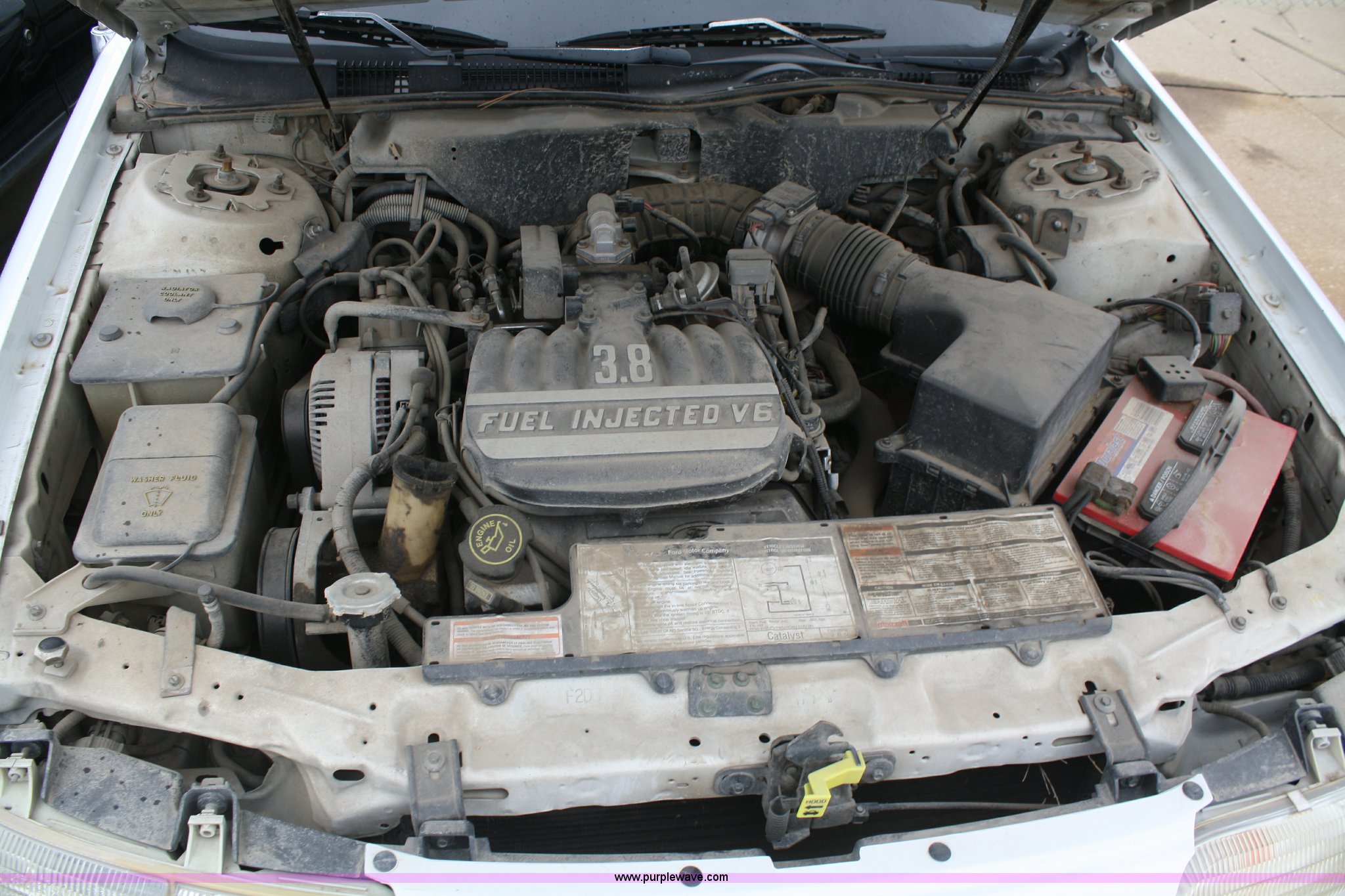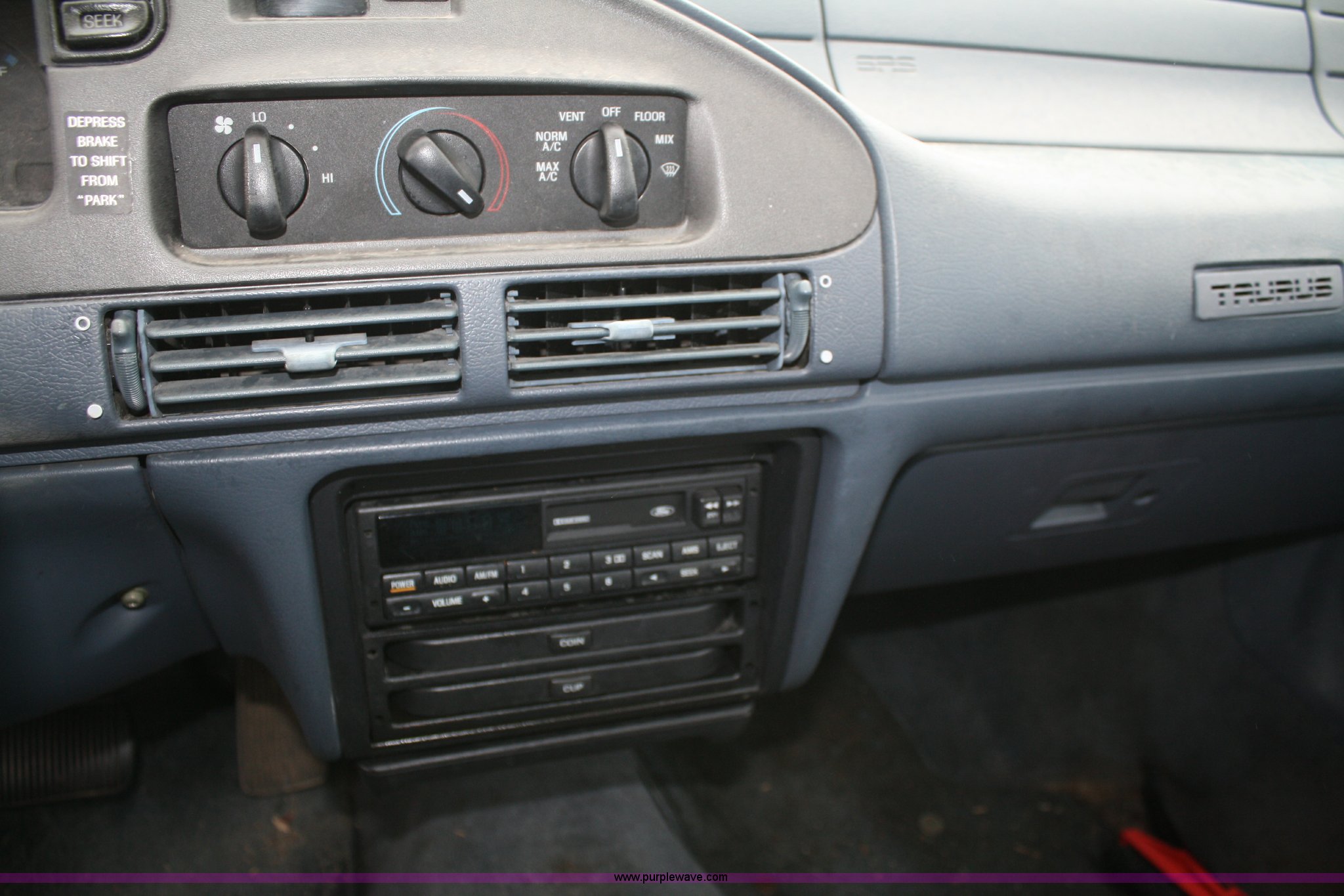 Purple Wave is selling a used Passenger Vehicle in Kansas. This item is a 1993 Ford Taurus GL with the following: 98,704 miles on odometer, 3.8L V6 EFI engine, Automatic transmission, AC and heat, Tilt, Cruise, AM/FM, Power windows, locks, mirrors, and seats, Cloth interior, 205/65R15 tires, Interior/exterior cosmetic damage, No keys, Dead battery, AV# 1039