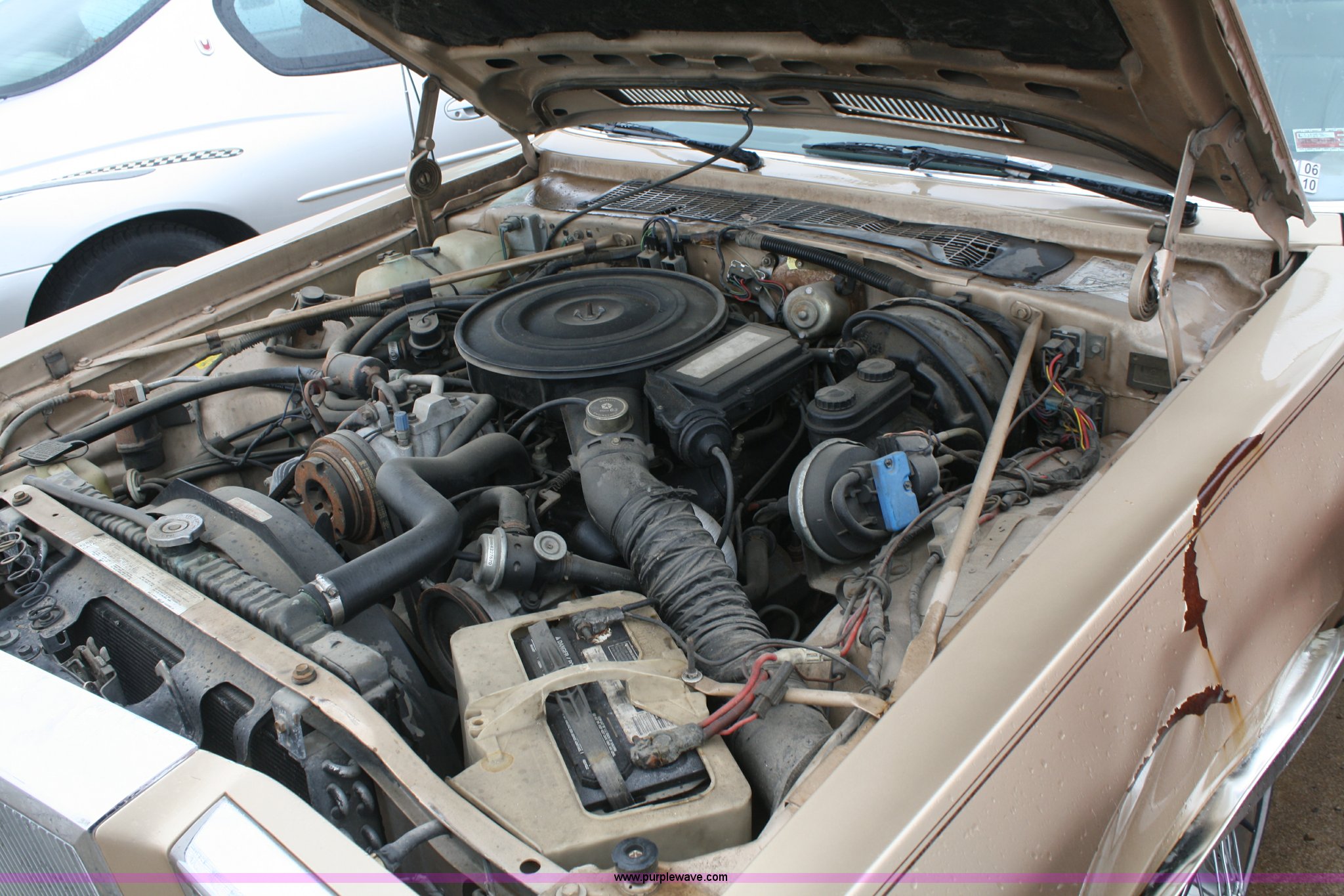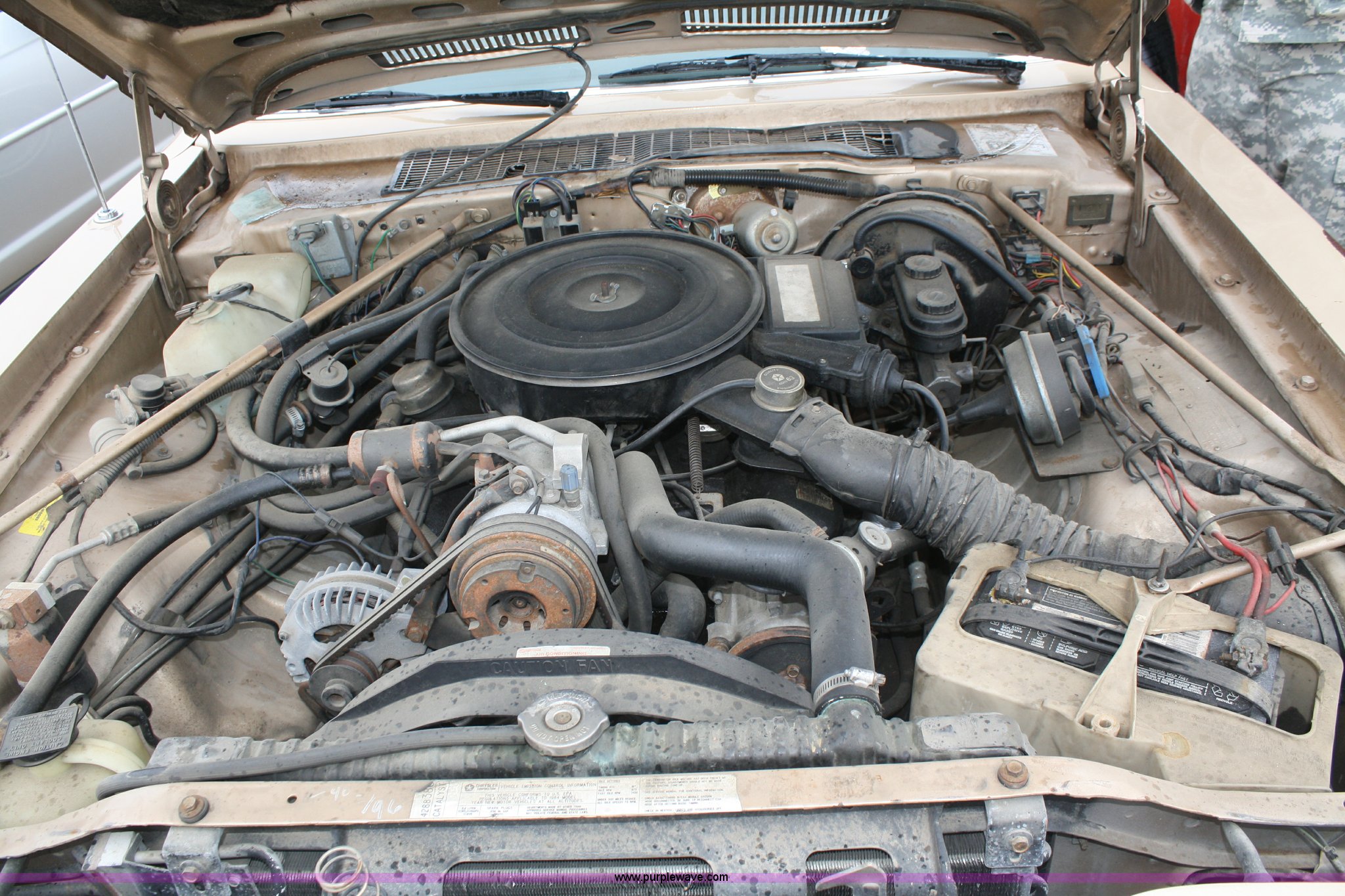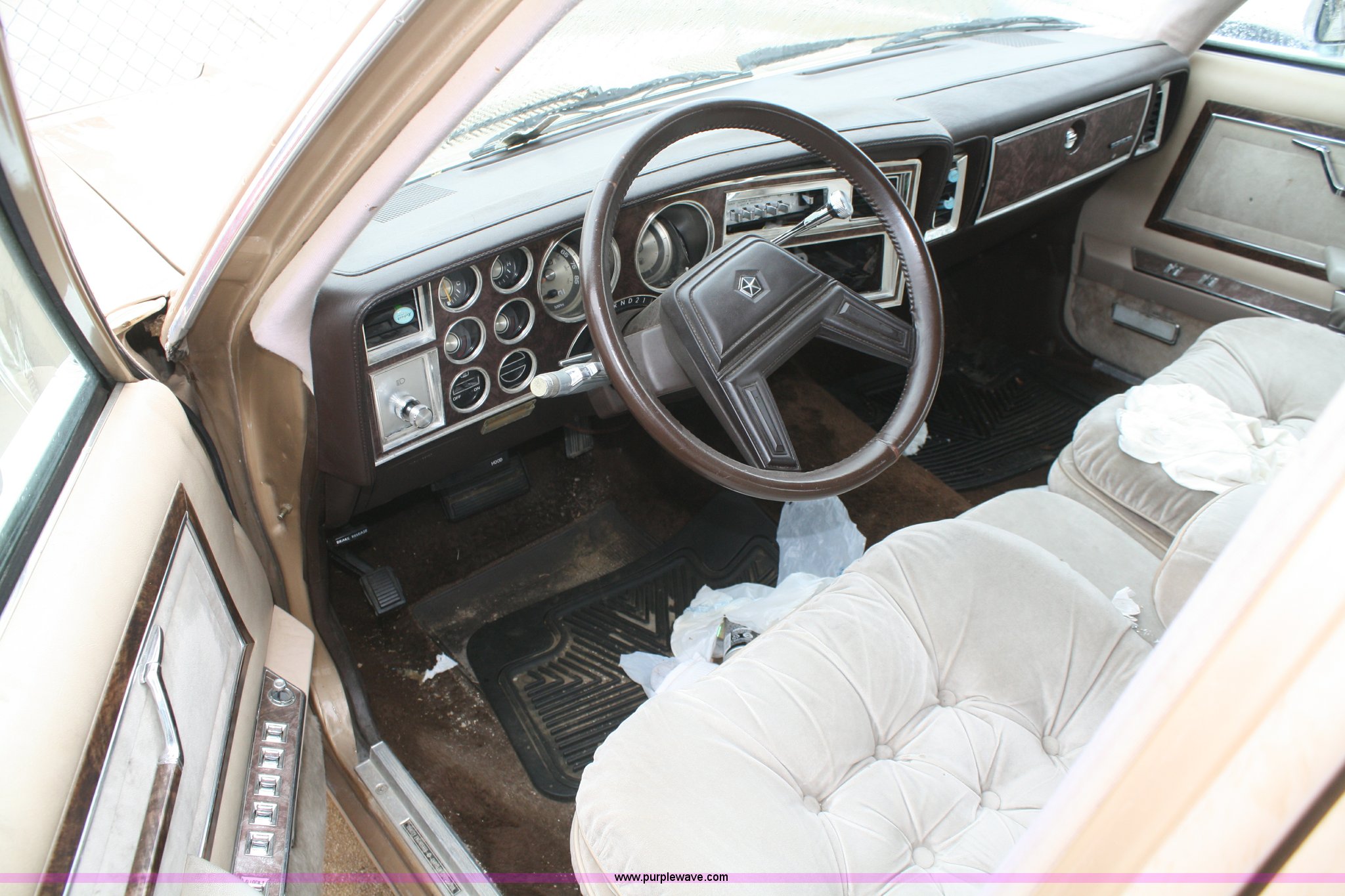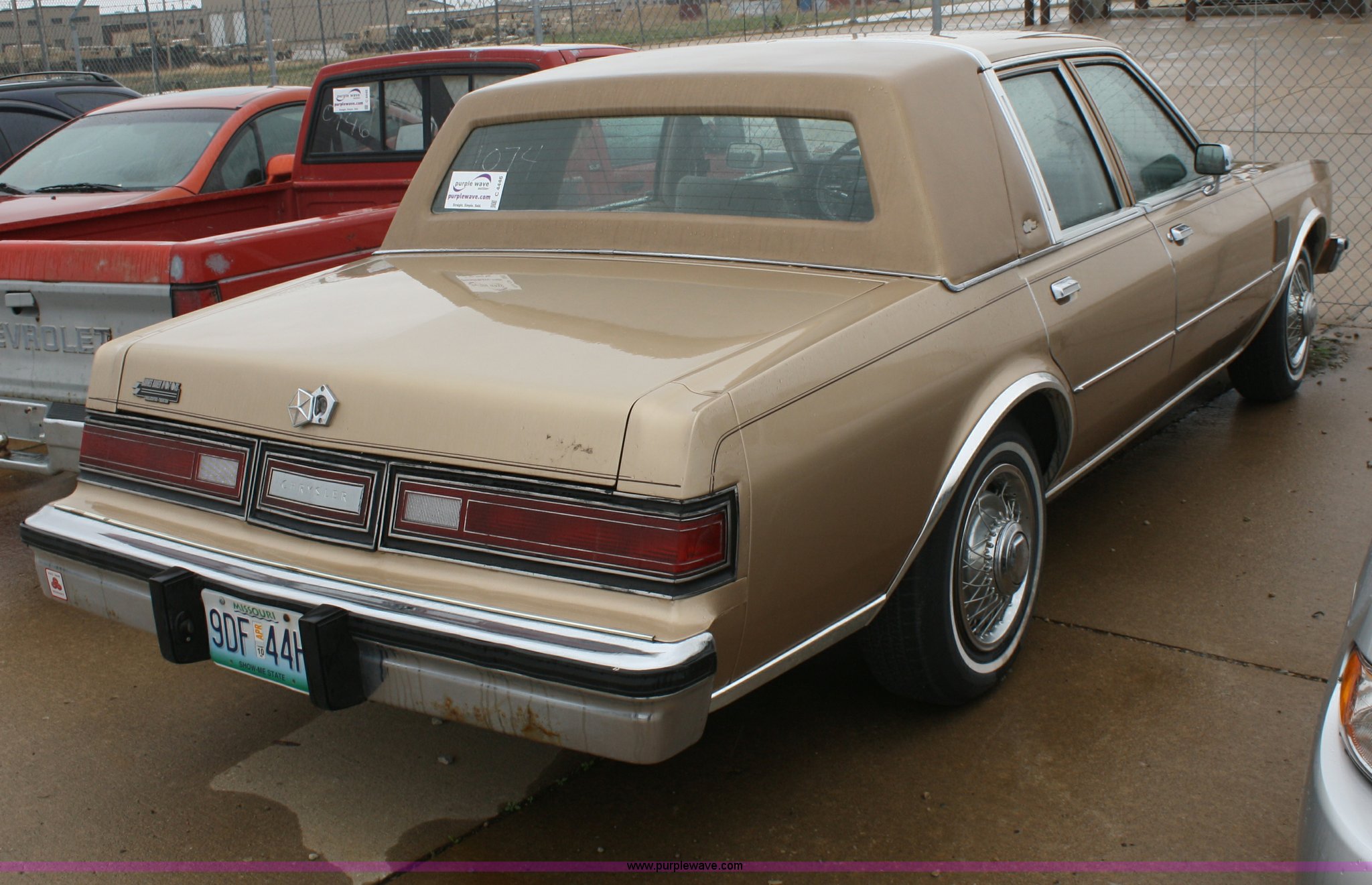 Purple Wave is selling a used Passenger Vehicle in Kansas. This item is a 1984 Chrysler Fifth Avenue with the following: 93,855 miles on odometer, 5.2L V8 2BBL engine, Automatic transmission, AC and heat, Cruise, Power windows, locks, and mirrors, Cloth interior, 205/75R15 tires, Interior/exterior cosmetic damage, No keys, Dead battery, Stereo missing, AV# 1074