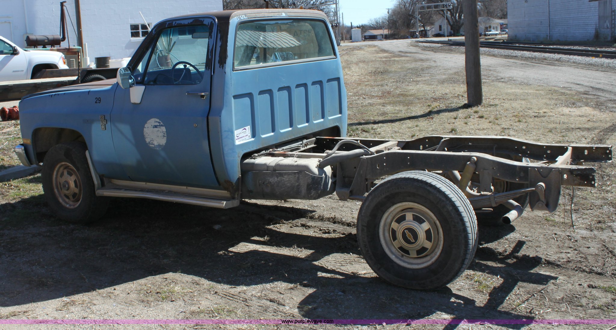 1985 Chevrolet K20 truck cab and chassis has sold in Moundridge, Kansas for $852.50. Item A7350 sold on April 10th, 2012.