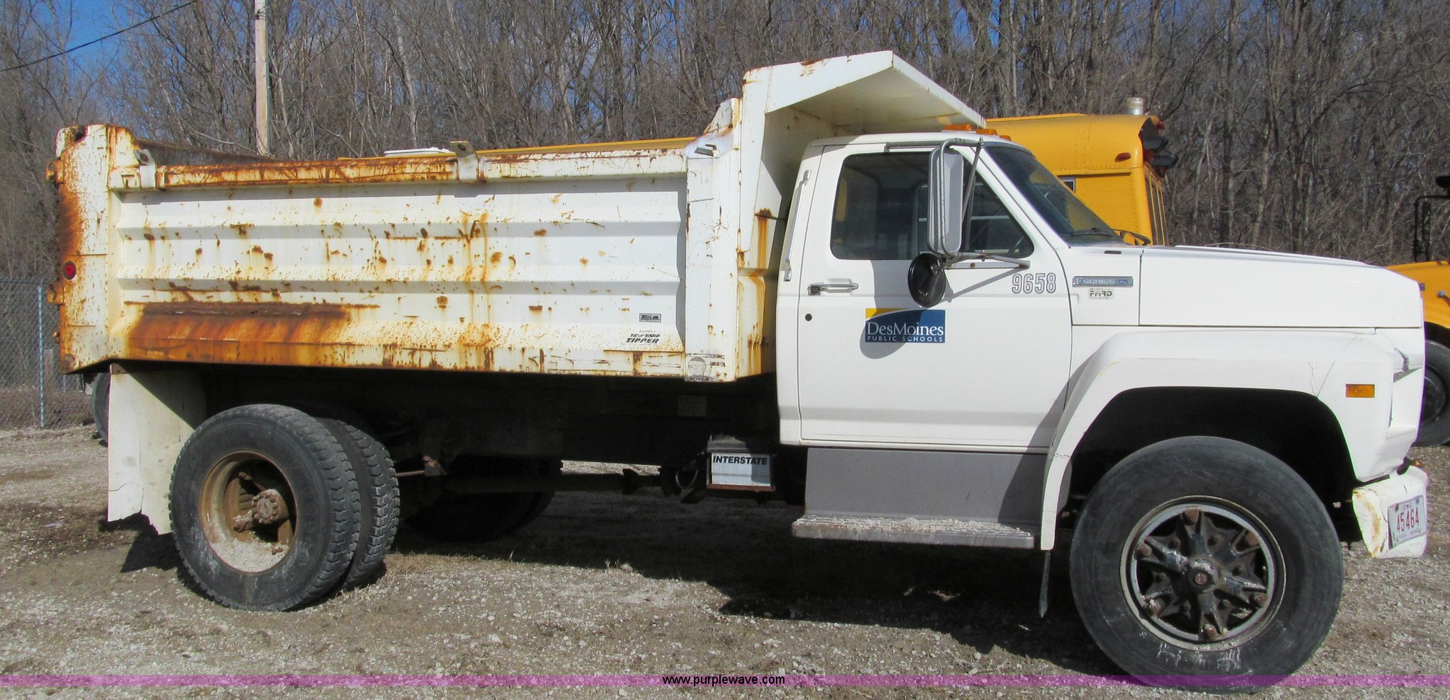 Purple Wave is selling a used Construction Dump Truck in Iowa. This item is a 1996 Ford F700 truck with dump bed with the following: 48,016 miles on odometer, V8, 7.0L (429 CID) EFI gas engine, Automatic transmission, Heat, Cysteel 12' dump bed, PTO and hoist, Spring suspension, 10R22.5 tires, FAWR 9,000 lbs, RAWR 19,000 lbs, Brakes are weak, Two way radio not included