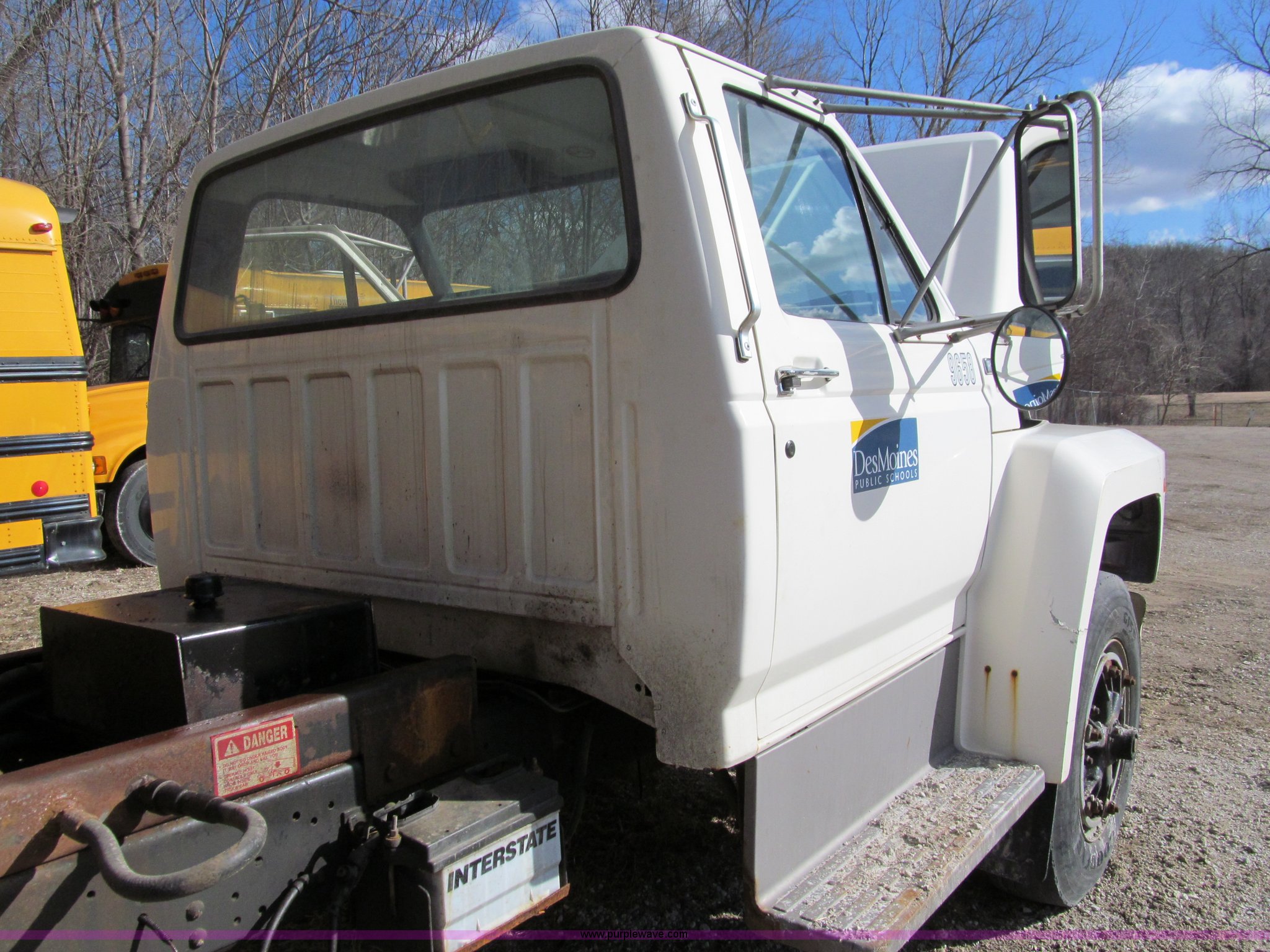 1996 Ford F700 truck with dump bed. 48,016 miles on odometer, V8, 7.0L (429 CID) EFI gas engine, Automatic transmission, Heat, Cysteel 12' dump bed, PTO and hoist, Spring suspension, 10R22.5 tires, FAWR 9,000 lbs, RAWR 19,000 lbs, Brakes are weak, Two way radio not included. Title distribution may be delayed up to 14 days from verification of funds. 1FDPF70J0TVA26115. Des Moines Public Schools. 1917 Dean Ave. Des Moines, IA 50316