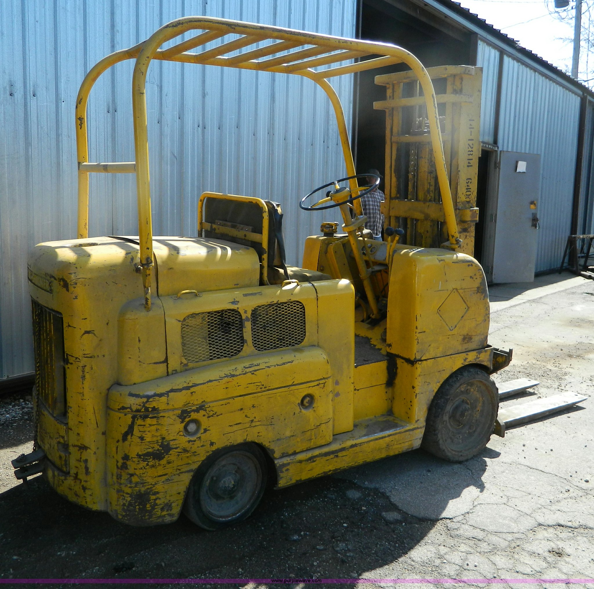 Purple Wave is selling a used Cushion Tire or Pneumatic Forklift in Kansas. This item is a Allis Chalmers FT 7024PS forklift with the following: 8740 hours on meter, Gas engine, 8,000 lb. max. capacity, 14' mast, Weak brakes, Serial 148510000
