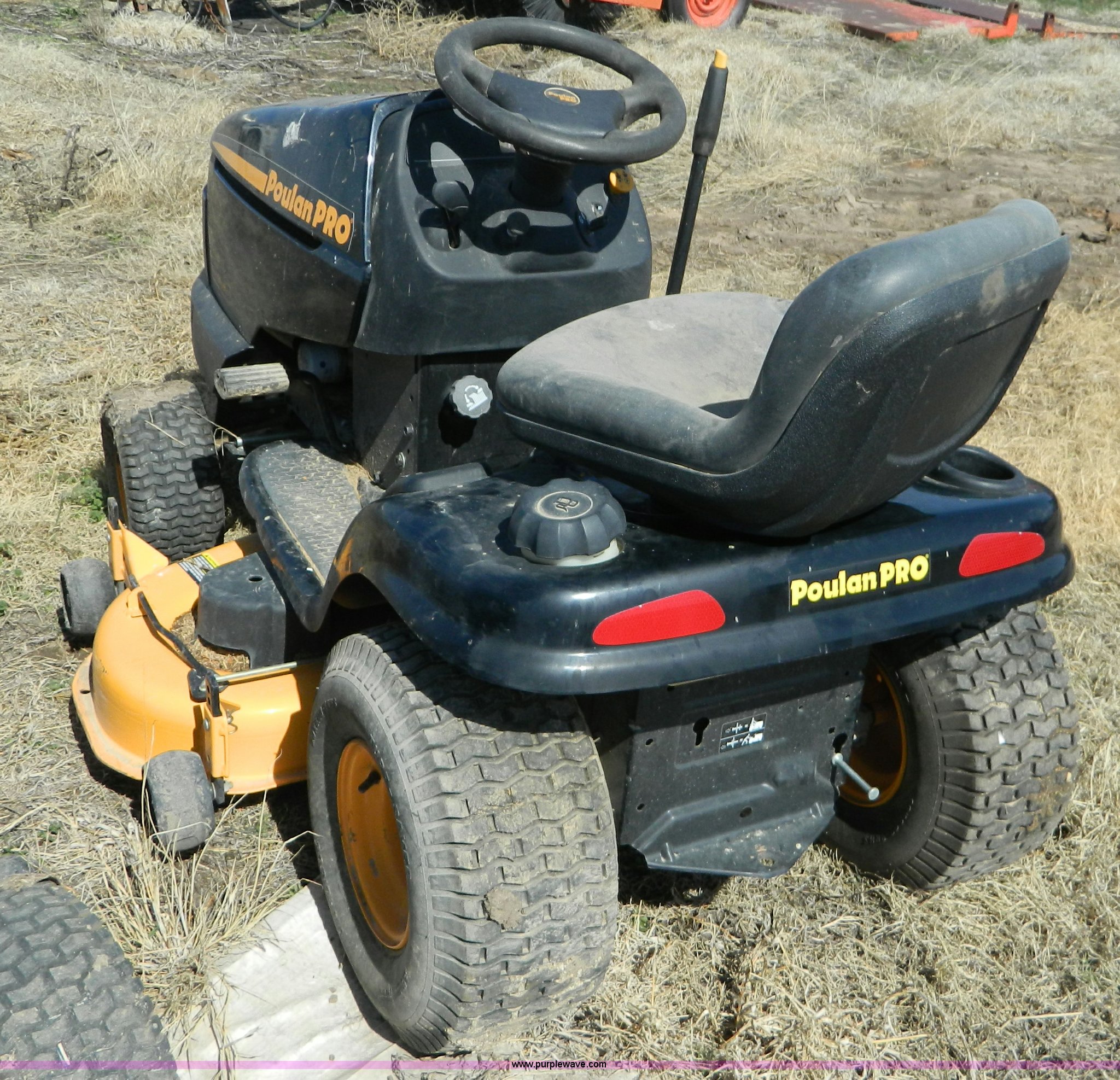 Poulan Pro riding mower has sold in Lincoln, Kansas for $176. Item B3550 sold on April 10th, 2012.