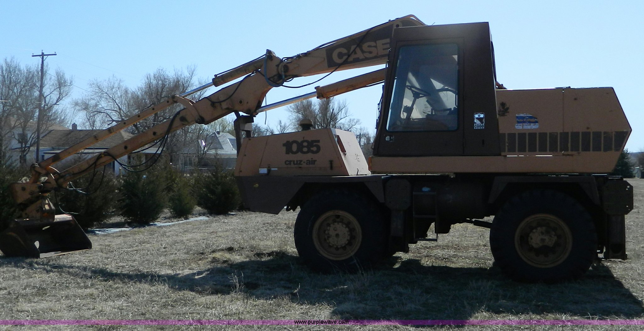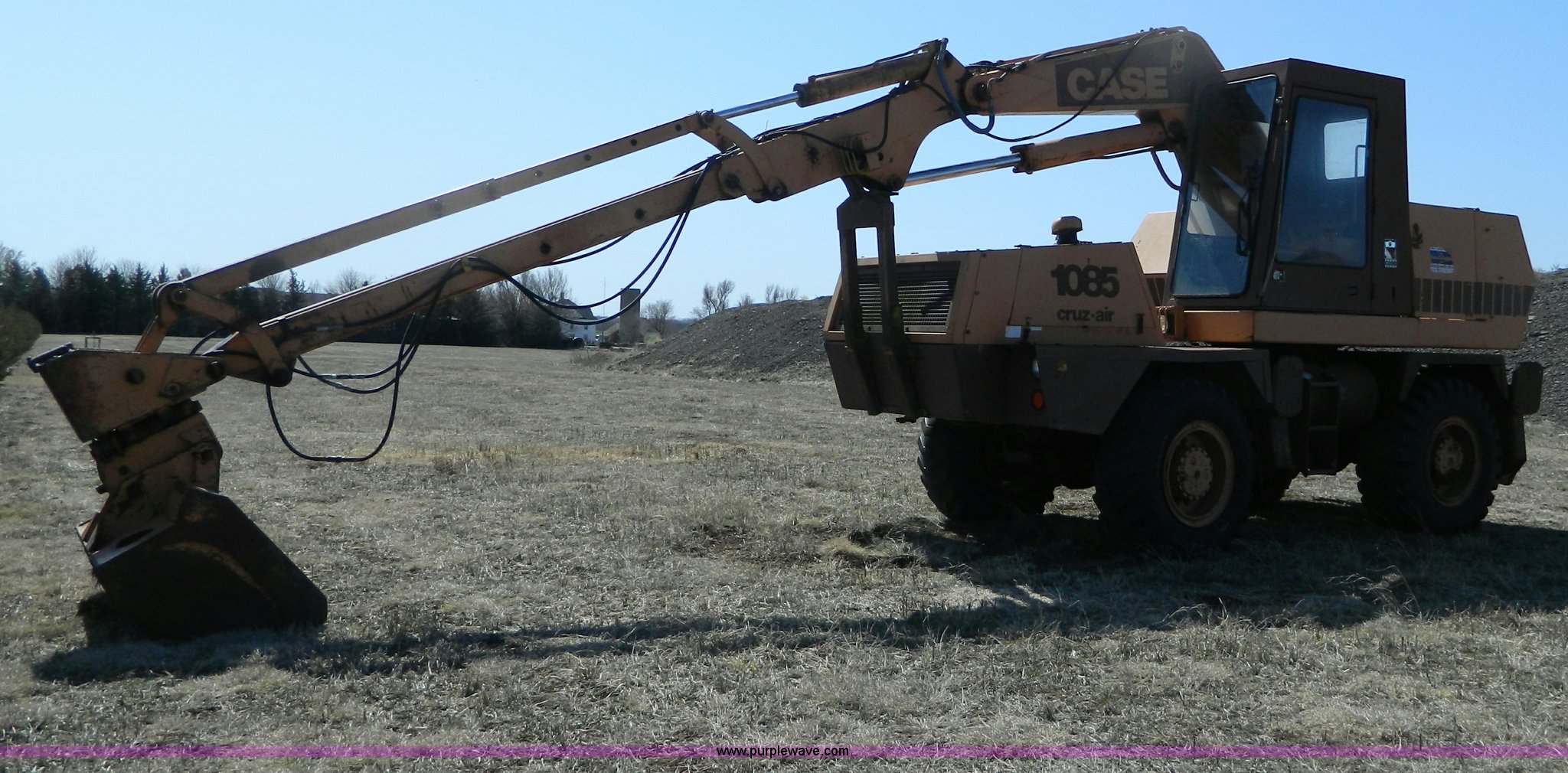 Purple Wave is selling a used Rubber Tired Excavator in Kansas. This item is a Case 1085 Cruz-Air excavator with the following: 2430 hours on meter, Detroit Series S3 diesel engine, Three speed transmission with high-low, Cab - heat, Operators and service manuals, Includes 60" and 36" buckets, Outriggers, 17.5-25 tires, Serial 6293227