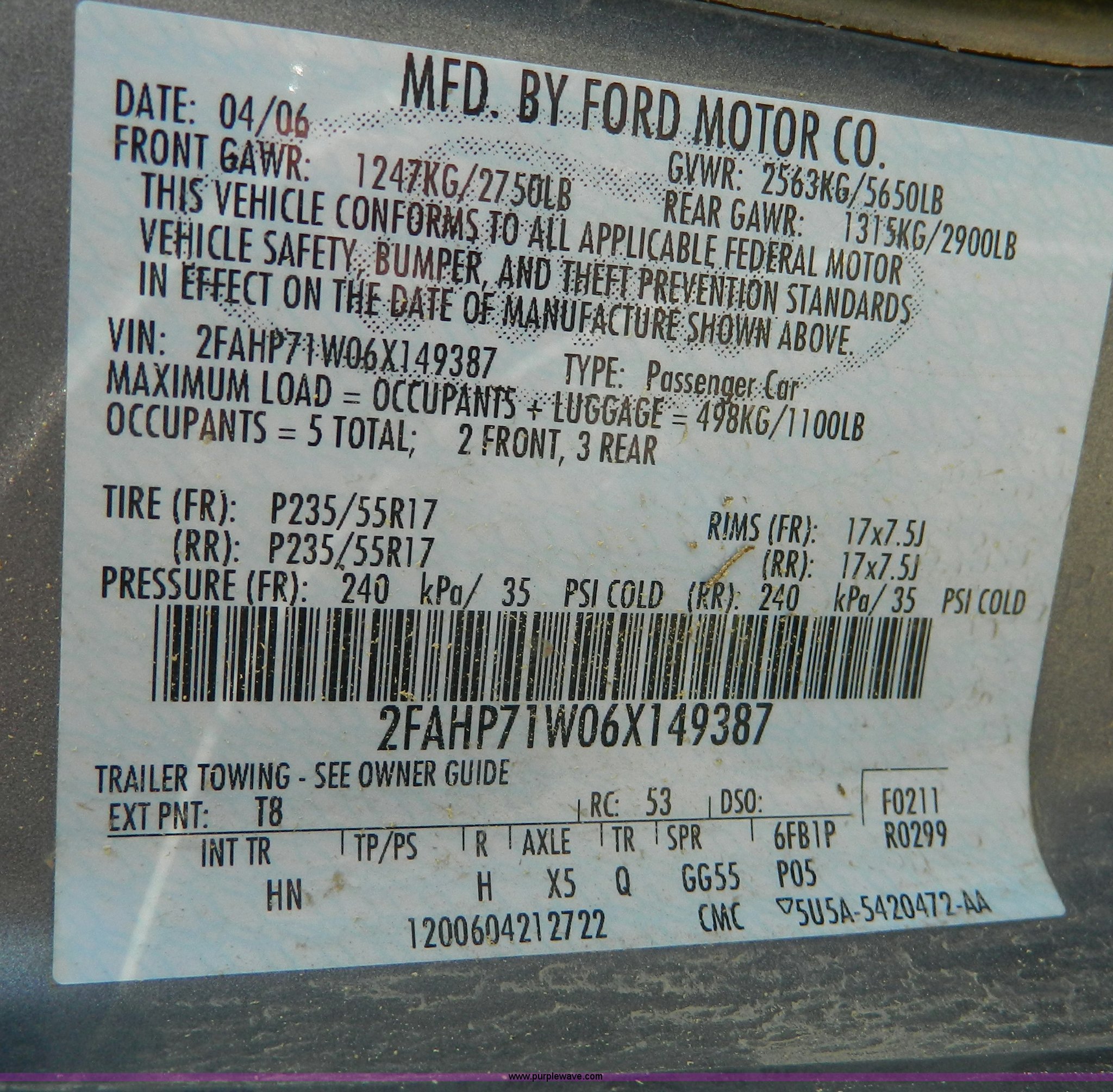 Purple Wave is selling a used Passenger Vehicle in Kansas. This item is a 2006 Ford Crown Victoria Police Interceptor with the following: 140,438 miles on odometer, 4.6L V8 EFI gas engine, Automatic transmission, Heat and AC, Tilt, Cruise, AM/FM/Cassette, Power windows, locks, mirrors and seats, Cloth interior, Power trunk, P235/75R17 tires, Hole plugs, Cosmetic damage