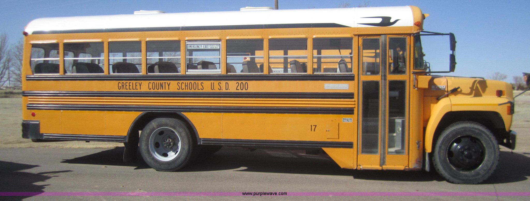 1994 Ford Bluebird B700 school bus has sold in Tribune, Kansas for $1595. Item B5706 sold on April 10th, 2012.