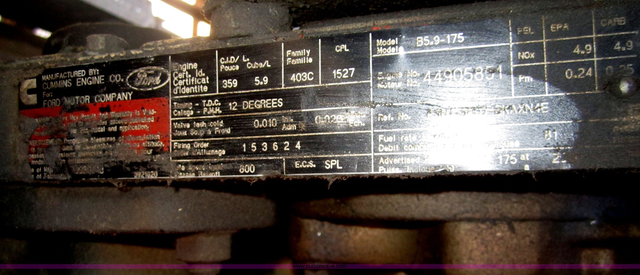 1994 Ford Bluebird B700 school bus. 194,769 miles on odometer, 42 passenger, Cummins ISB 5.9L diesel engine, Automatic transmission, Heater, AM/FM radio, 10R22.5 tires, Torque converter out, Will need to be hauled, Piston #6 scarred, Bus# 17. 1FDNJ75C1RVA14256. Greeley County Schools. 400 W Lawrence. Tribune, KS 67879