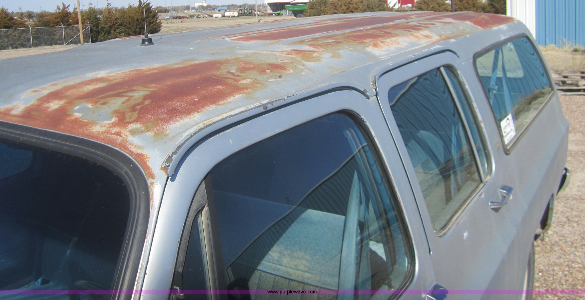 Purple Wave is selling a used Passenger Vehicle in Kansas. This item is a 1989 Chevrolet Suburban 1500 SUV with the following: 118,732 miles on odometer, 5.7L V8 TBI engine, Automatic transmission, AC and heat, Cruise, AM radio, Manual windows and locks, Cloth interior, P235/75R16 tires, Paint peeling, ID# 50