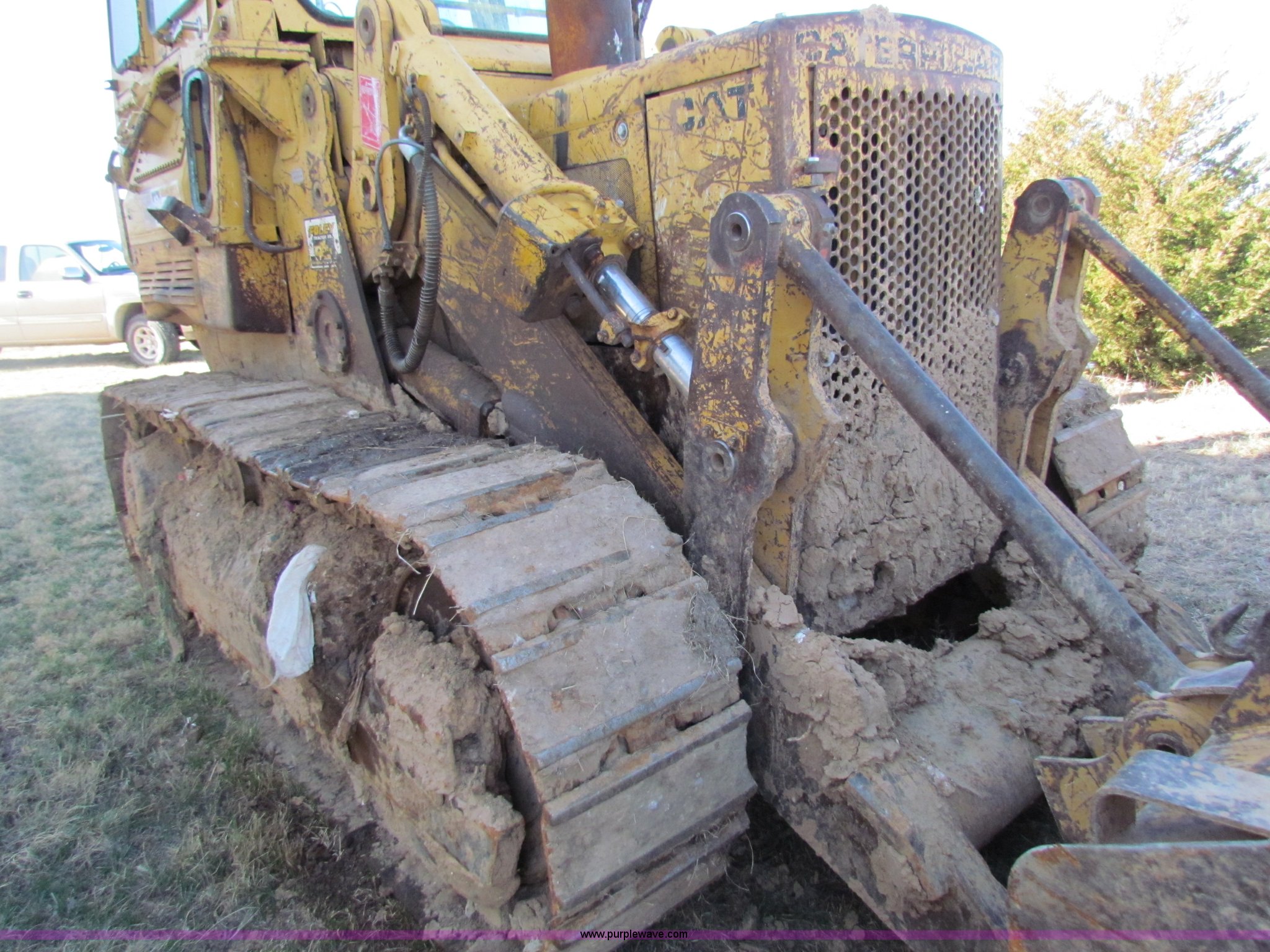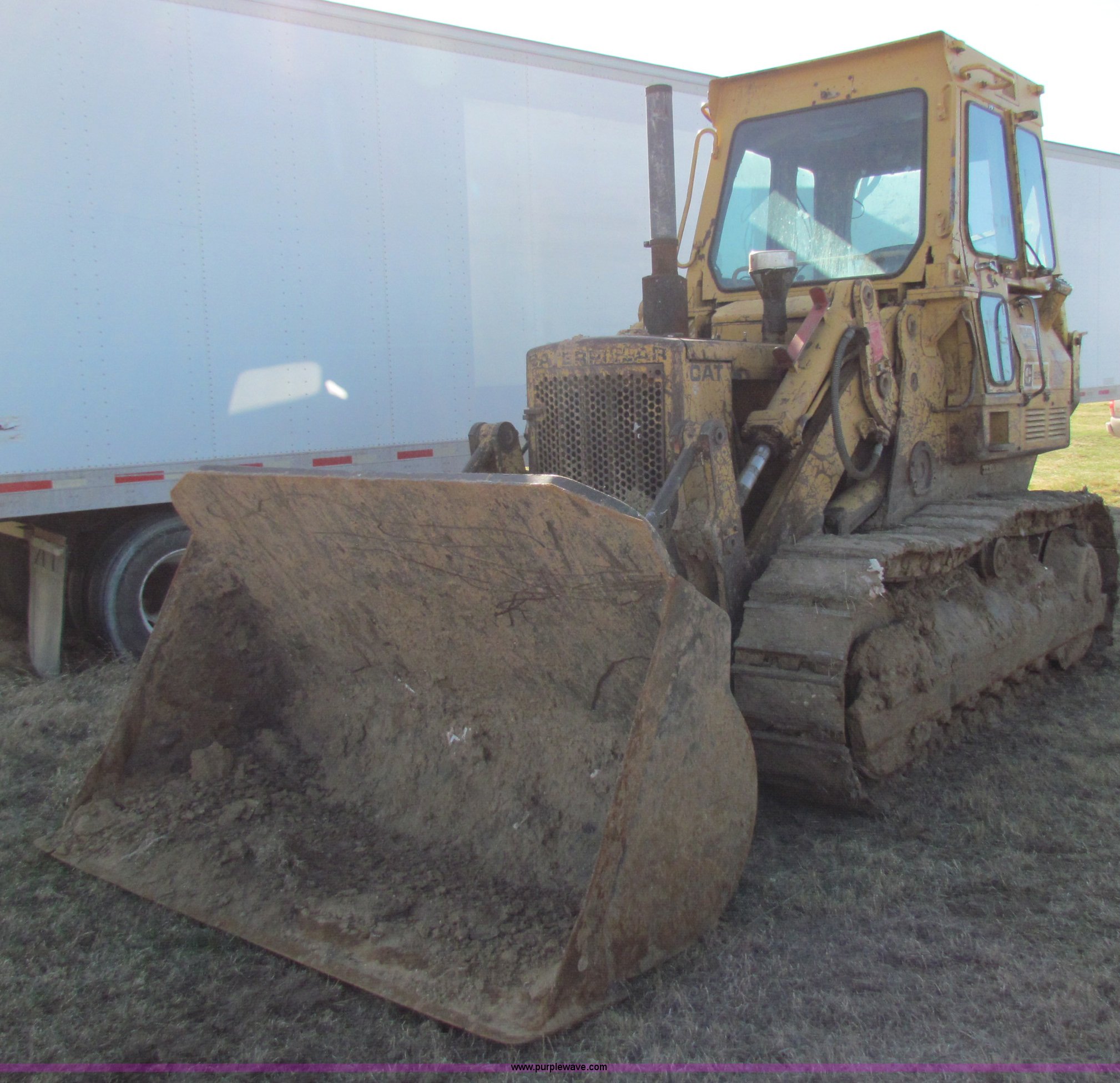 Purple Wave is selling a used Crawler Loader in Kansas. This item is a 1986 Caterpillar 955L track loader with the following: 9,474 hours on meter, Caterpillar 3304 diesel engine, 130 HP, Does not run, rod is out, Transmission rebuilt, Tracks and undercarriage serviced 800 hours ago, Radiator replaced three years ago, Starter replaced one year ago, 50 gallon fuel tank, 34,950 lbs. base operating weight, Engine shield included, One owner, Needs battery, Serial 13X2222