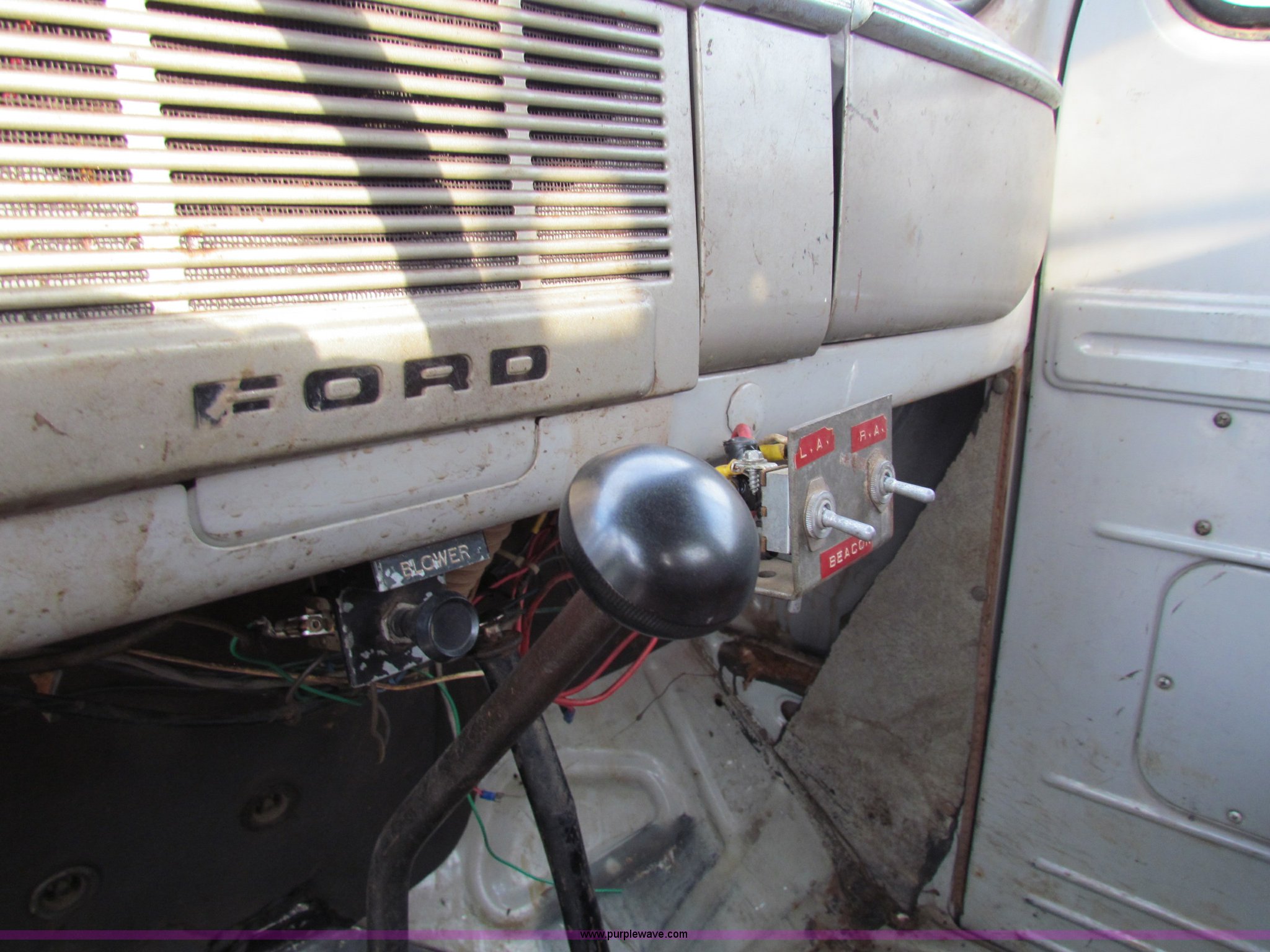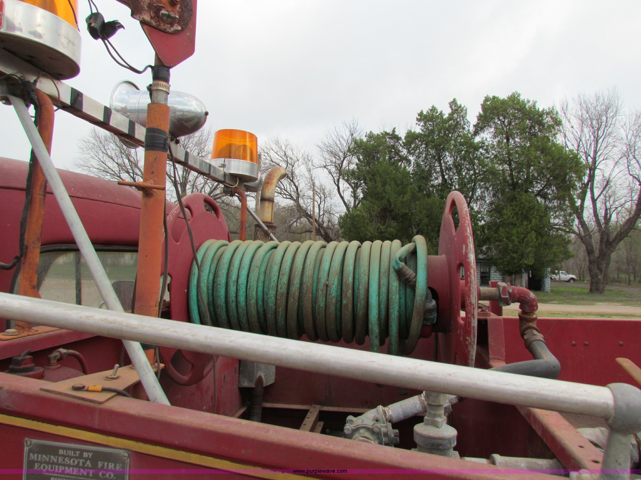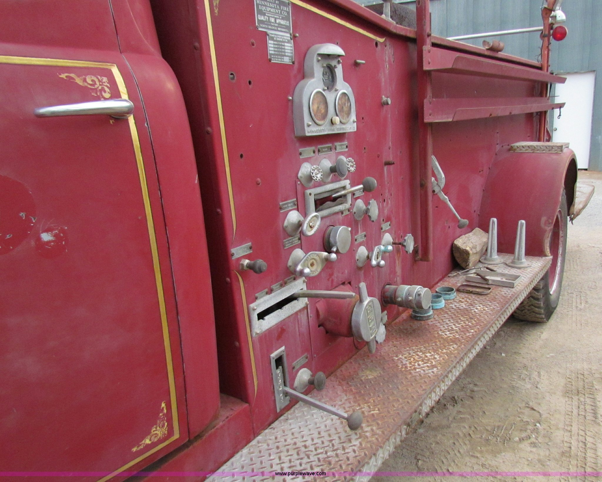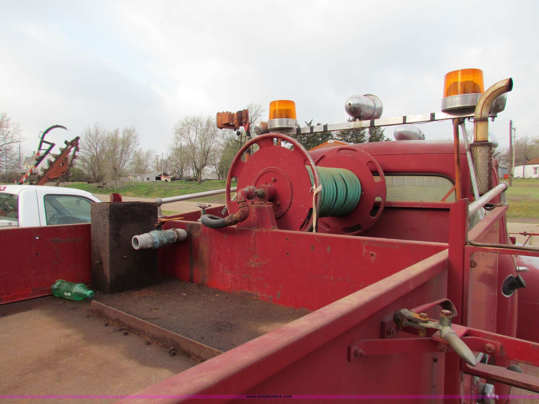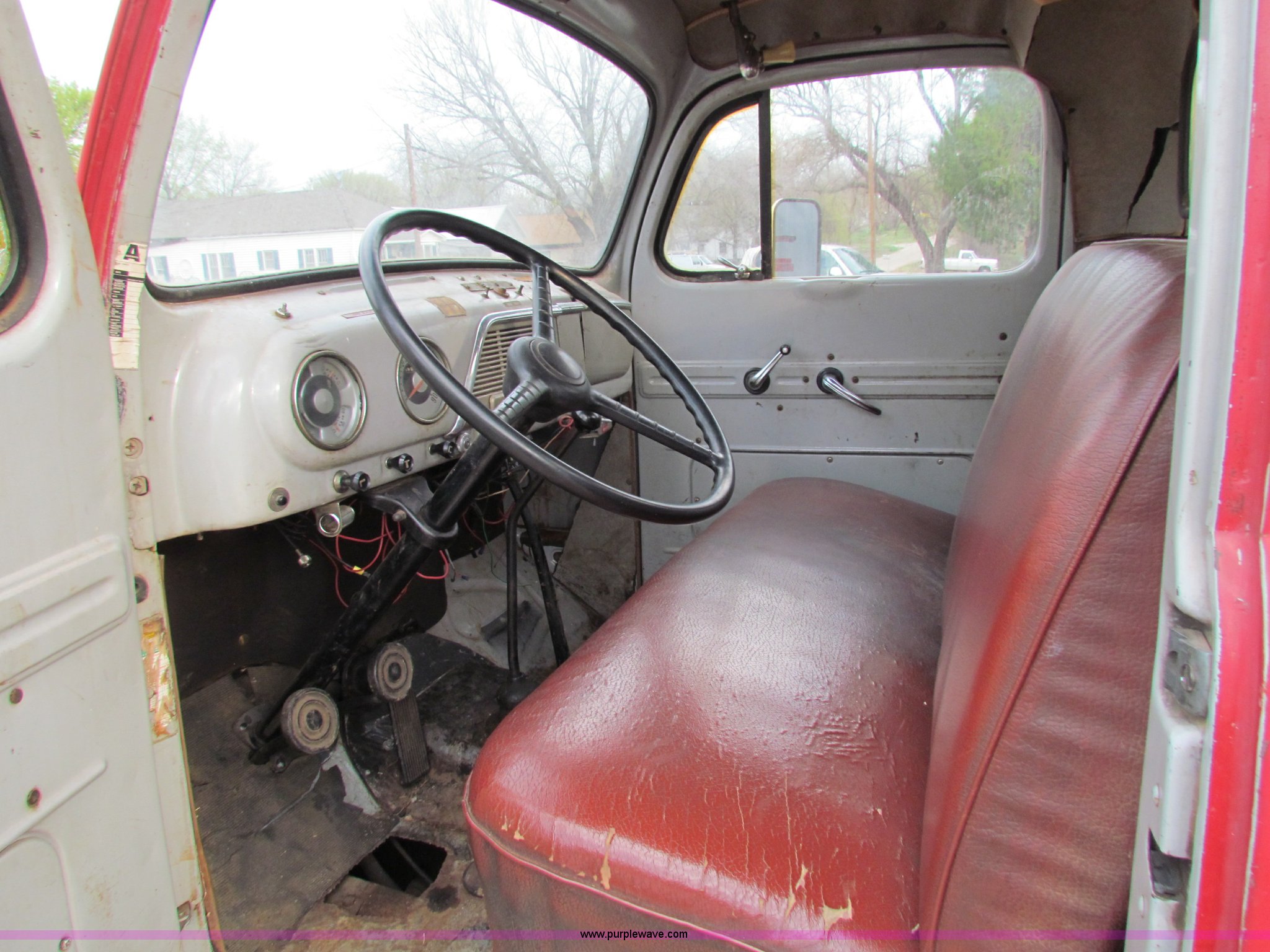 Purple Wave is selling a used Fire Truck or Emergency Vehicle in Kansas. This item is a 1952 Ford F-7 Big Job fire truck with the following: 9,692 miles on odometer, V8 Cargo King gas engine, Four speed manual transmission, 750 gallon tank, Engine driven pump, Front hose reel, 8.25-20 tires, Working siren, Brakes need work
