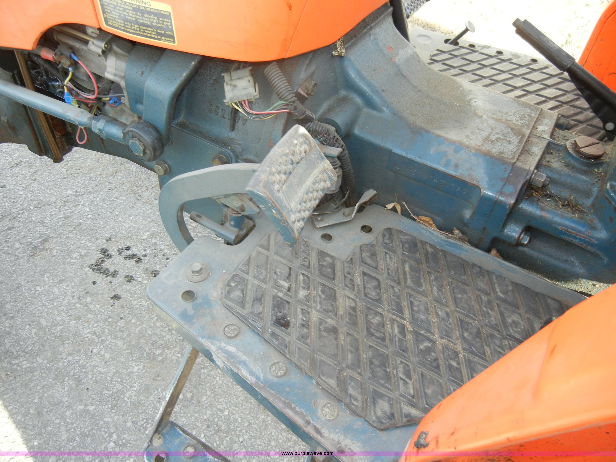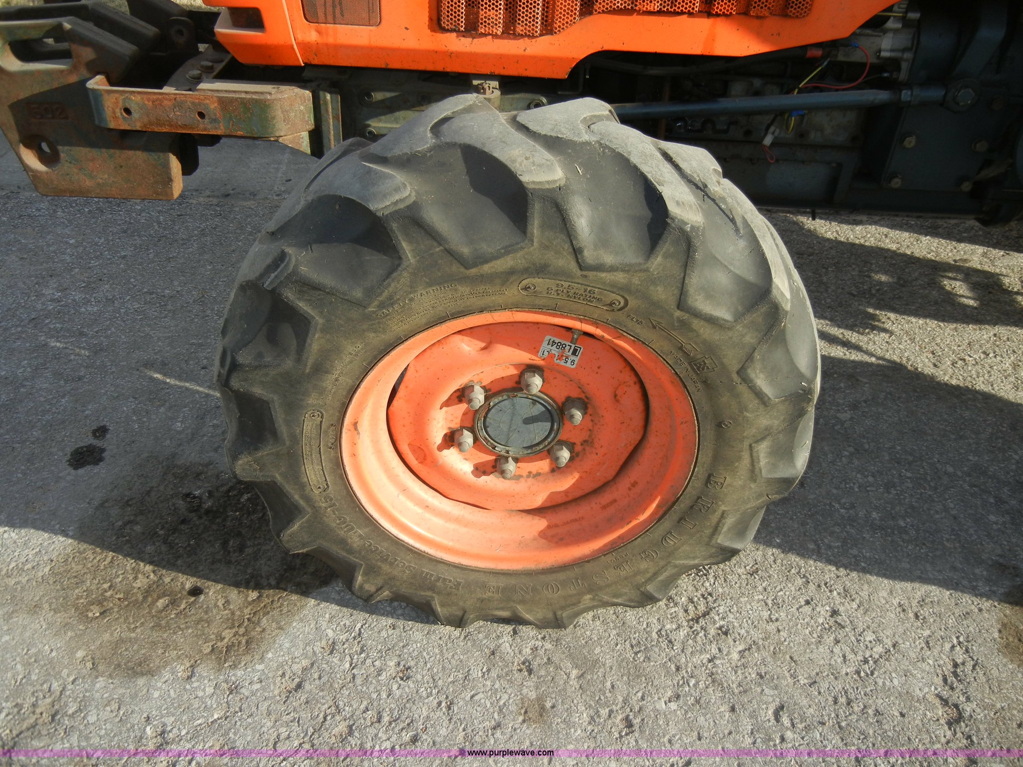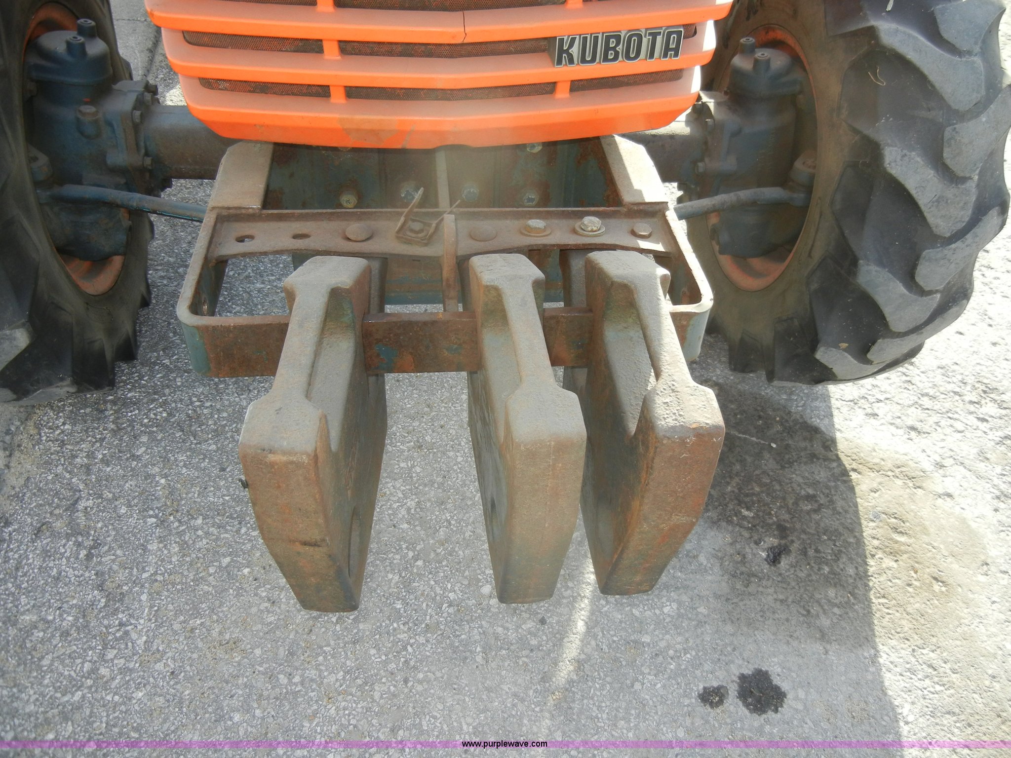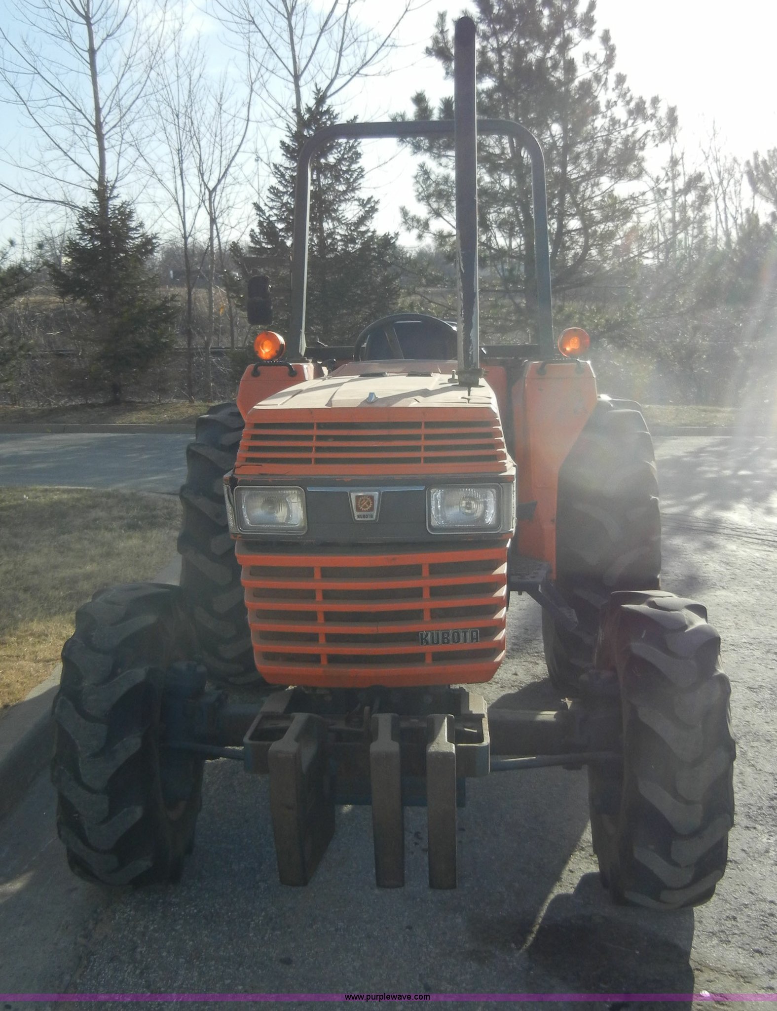 Purple Wave is selling a used Tractor in Kansas. This item is a 1986 Kubota L3350 MFWD tractor with the following: 1,550 hours on meter, 33 HP diesel engine, Hydraulic shuttle, 16F-8R gears, Open cab, Three point, Draw bar, 540 PTO, Front weights, 9.5-16 front tires, 14.9-24 rear tires, Rear spare tire, Leaks fuel, Serial L3350DT-50079