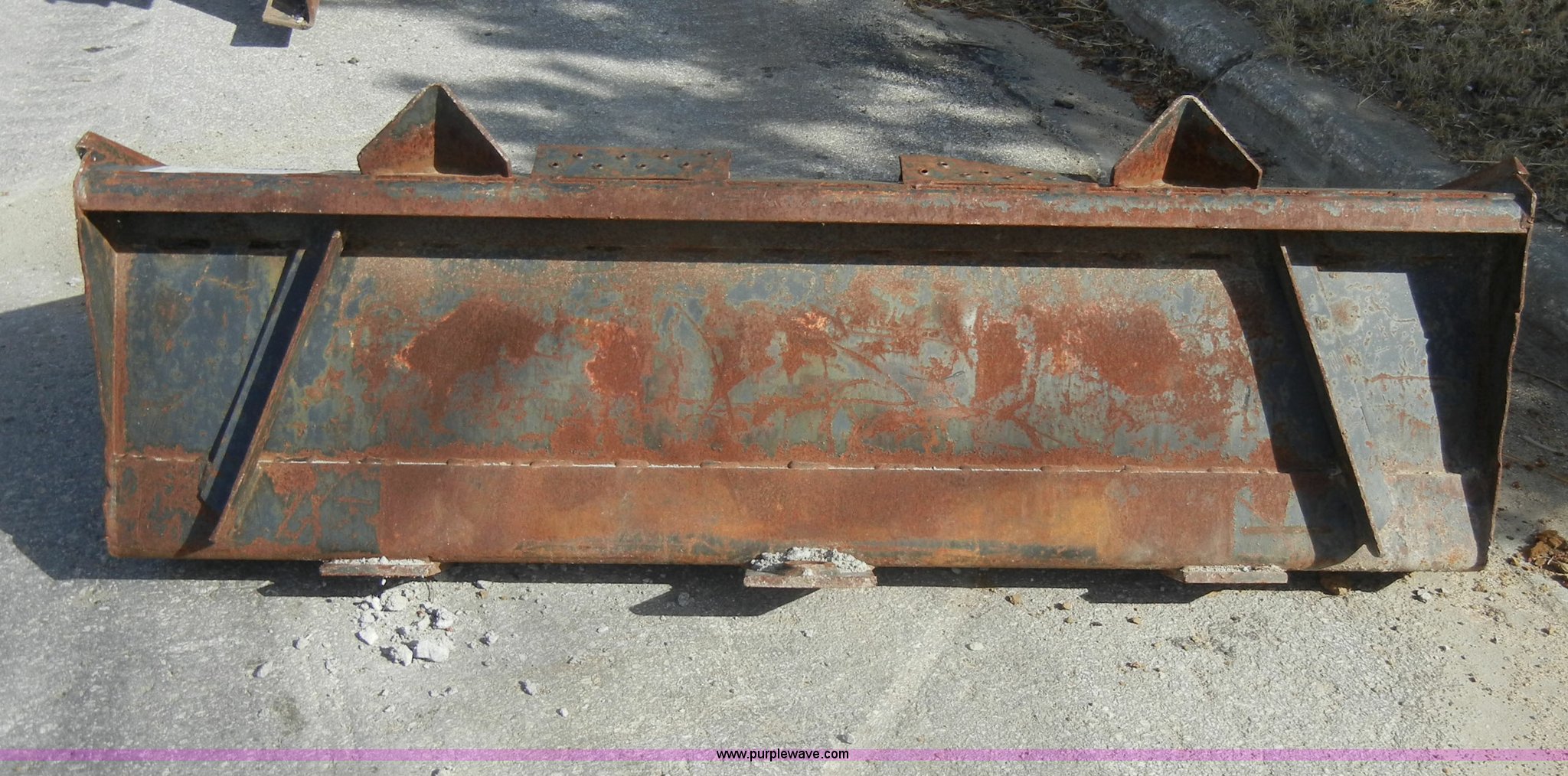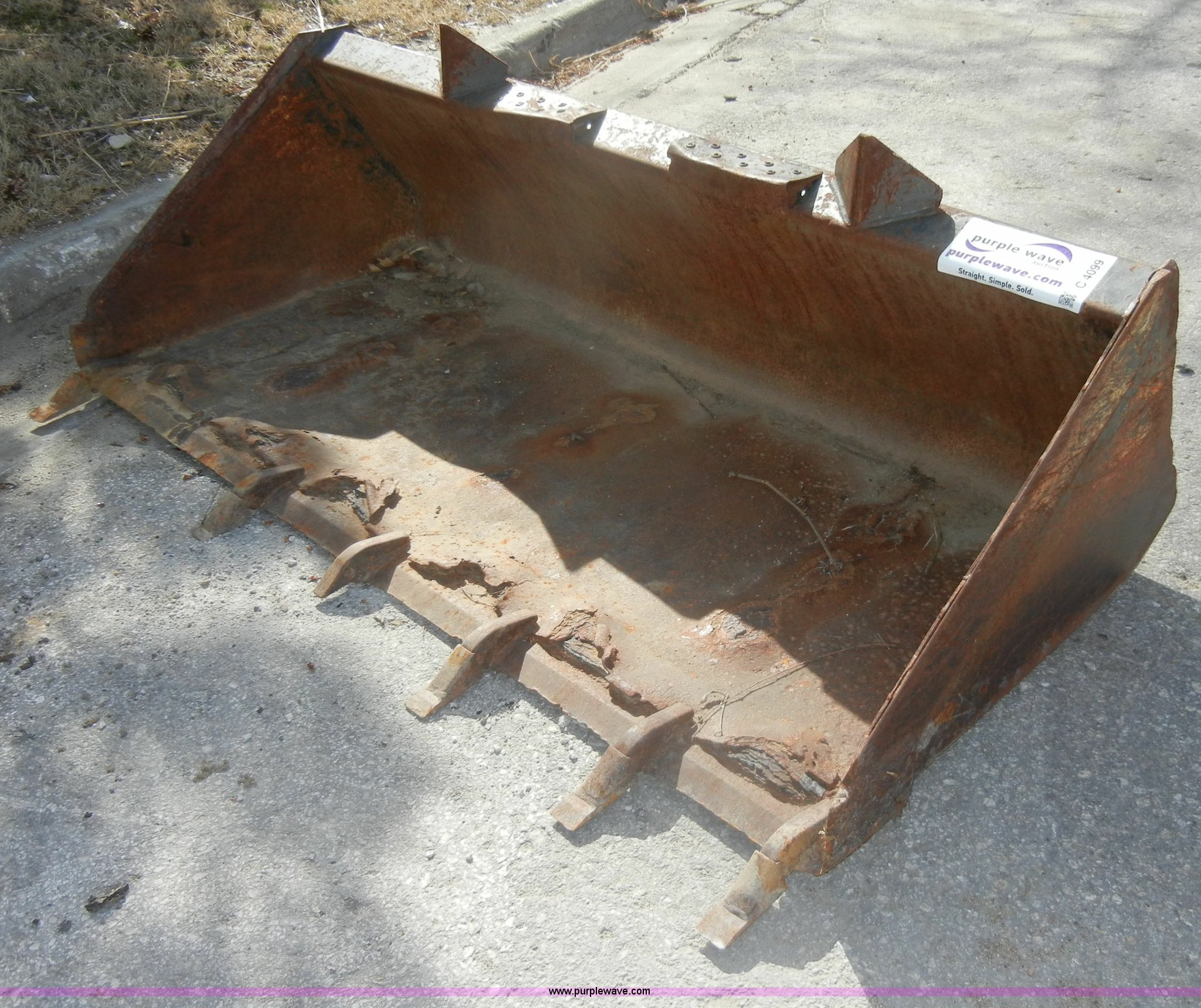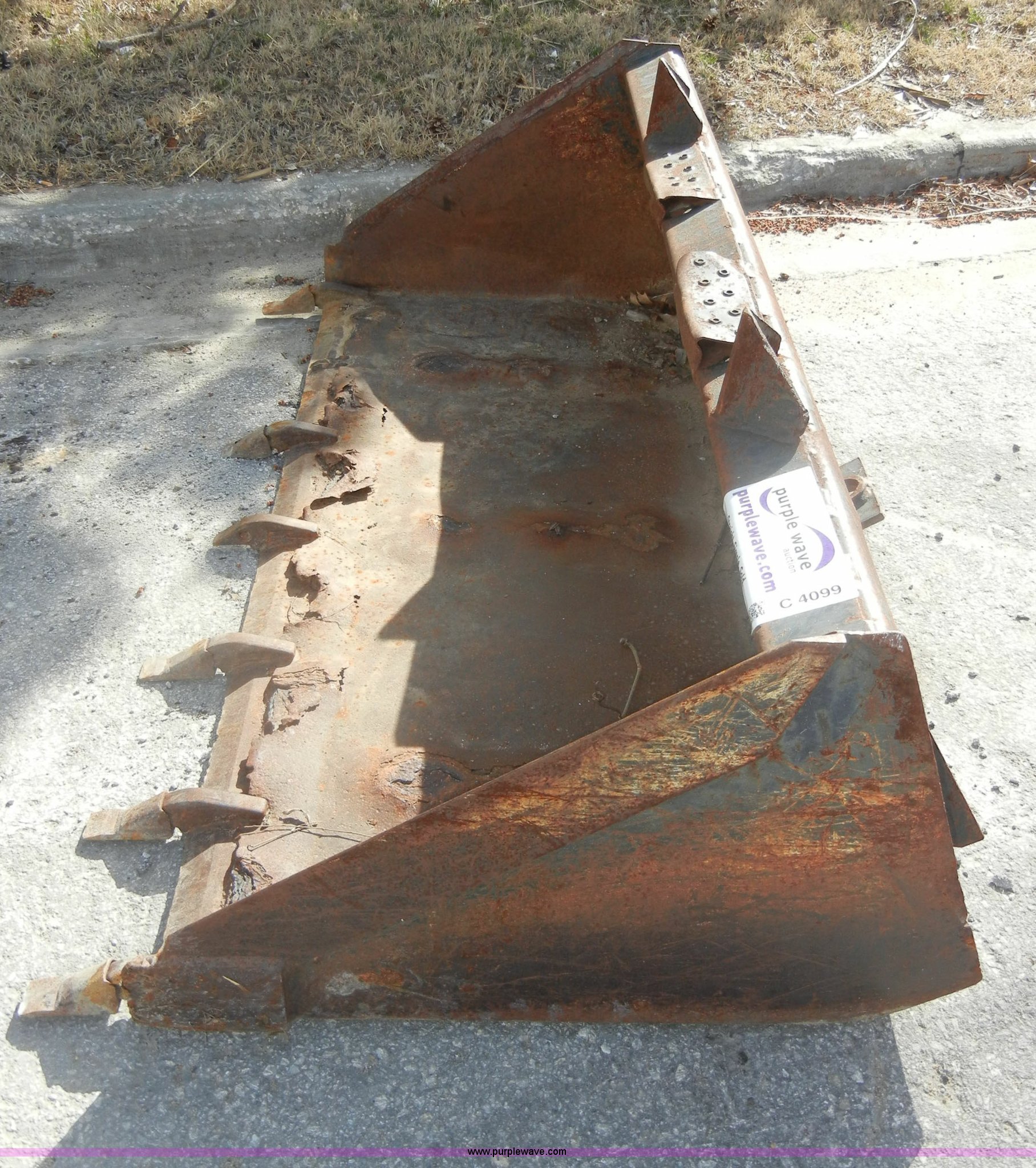 Purple Wave is selling a used Other Attach. or Equip. in Kansas. This item is a Skid steer bucket with teeth with the following: 67"W, Pin attach, Missing one tooth, Cosmetic damage, Attaches to item C4096