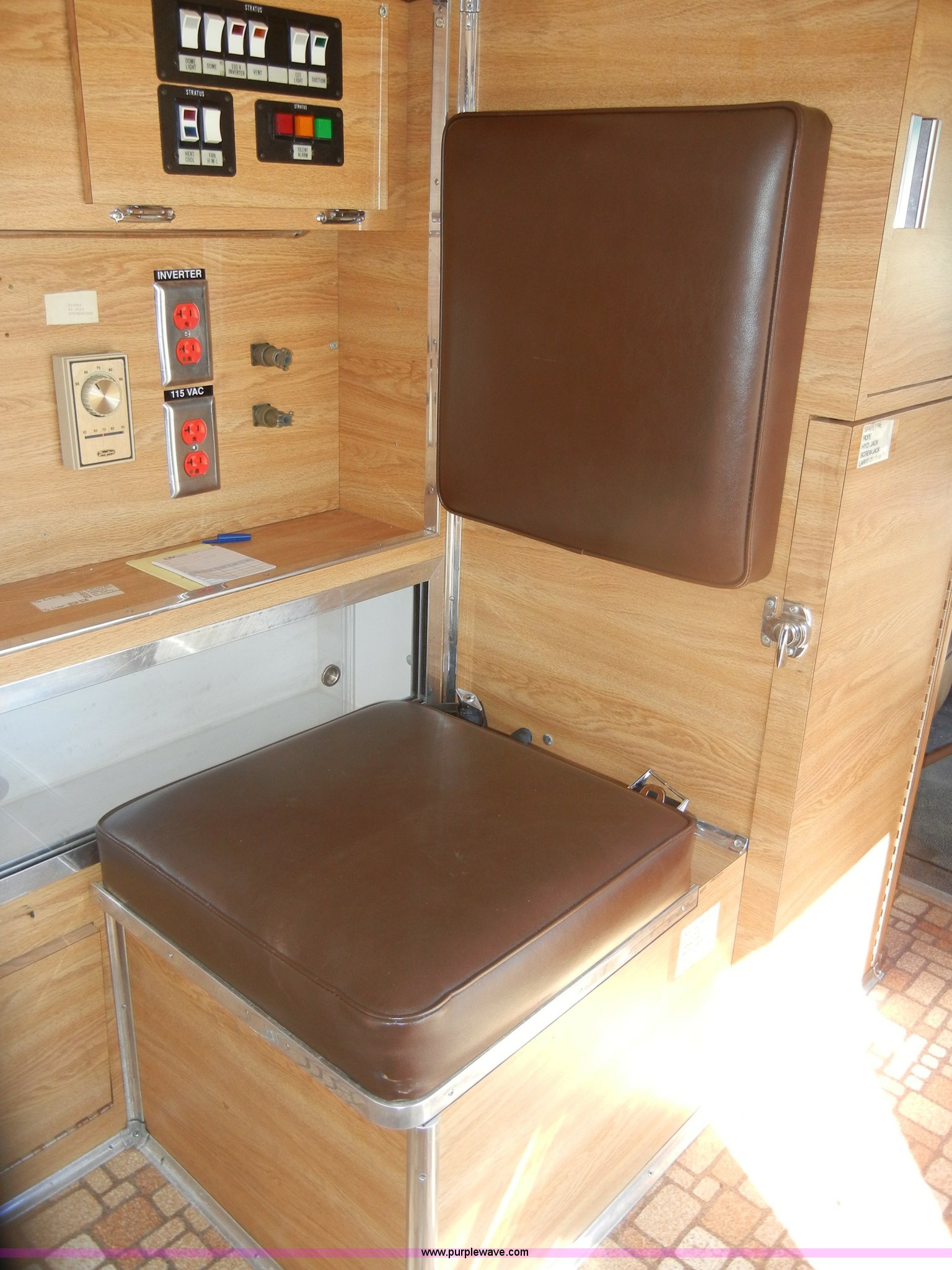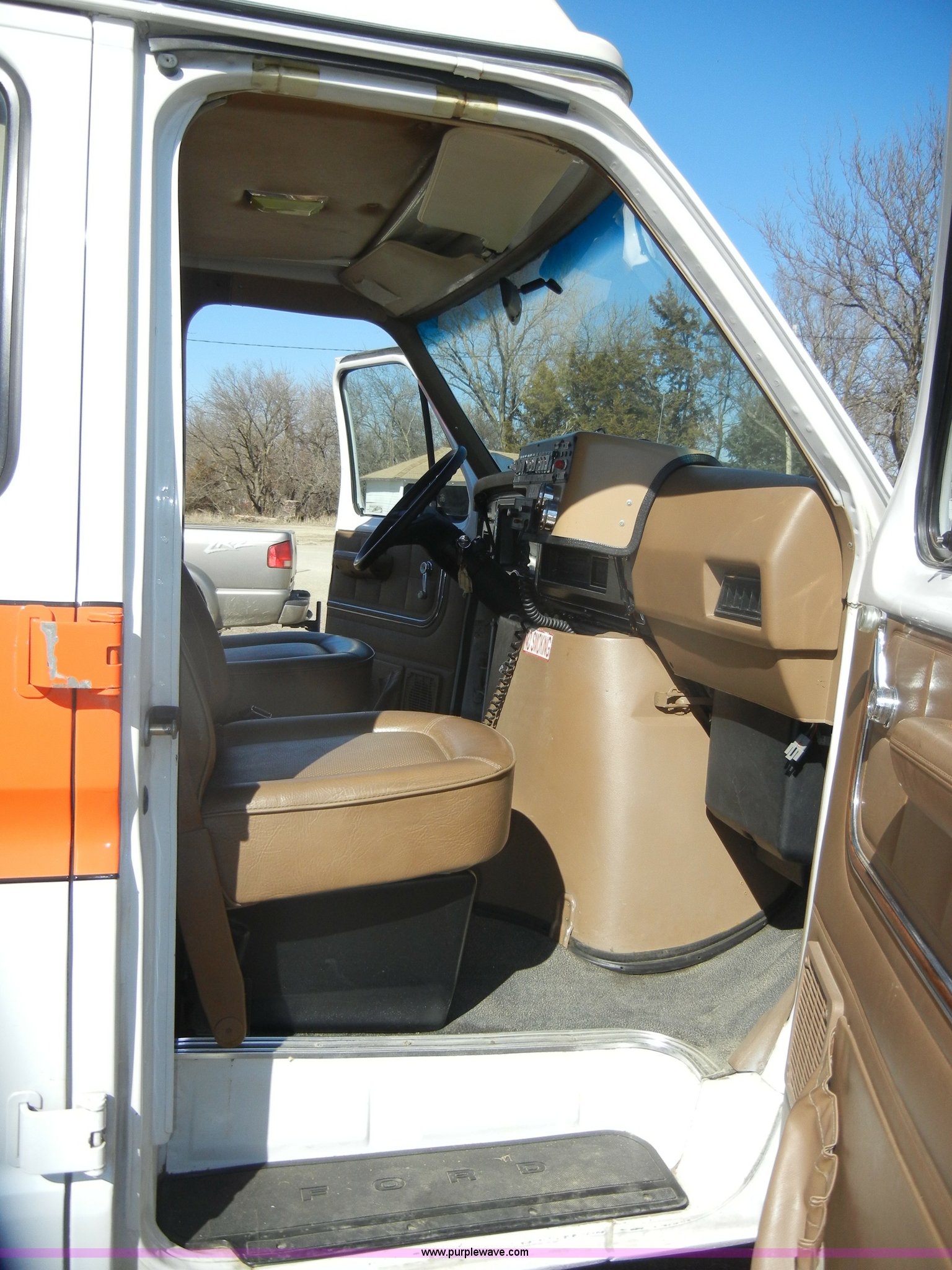 Purple Wave is selling a used Passenger Vehicle in Kansas. This item is a 1989 Ford E350 ambulance with the following: 47,392 miles on odometer, 7.3L V8 FI diesel engine, Automatic transmission, AC and heat, AM/FM, Manual windows and locks, Vinyl interior, Inverter, 115V AC, Dayton heat/cooling unit for rear compartment, Dual oxygen hookups, Overhead storage, Under seating storage, Sho-Me light, Stratus Code 3 light bar unit, Dual fuel tanks, 235/85R16 tires, Paint chipping, ID# 398