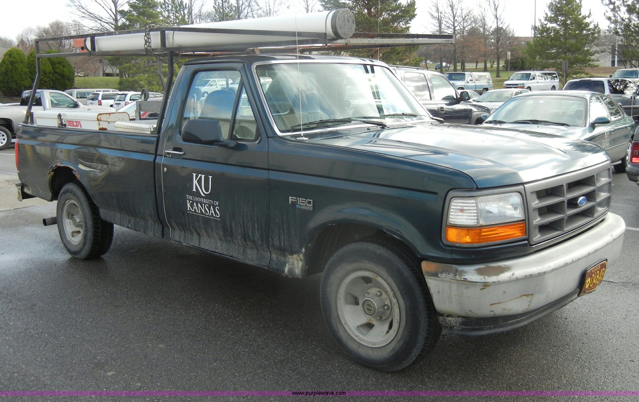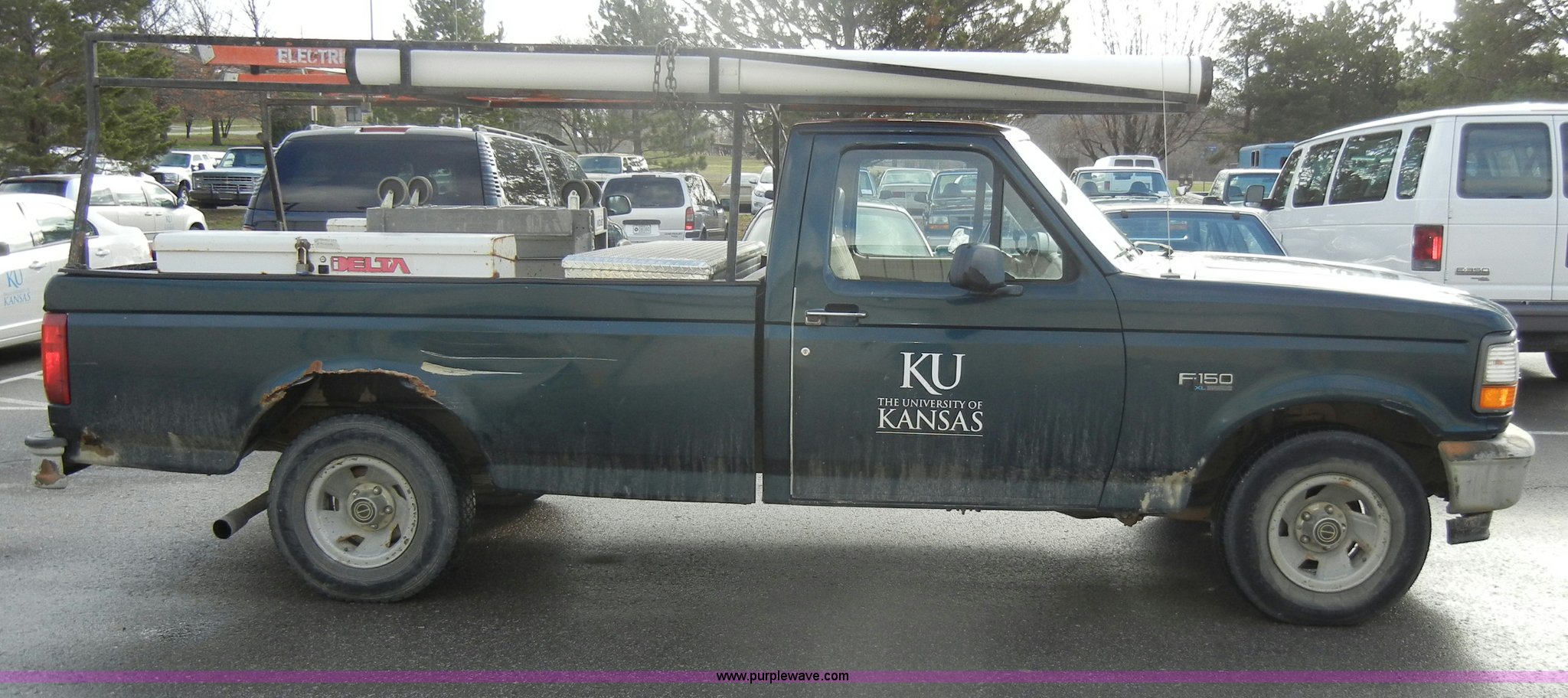 1995 Ford F150 XL pickup truck. 58,751 miles on odometer Mileage may vary, 4.9L I6 EFI engine, Automatic transmission, AC and heat AC does not work, AM/FM, Manual windows and locks, Cloth bench seat, (3) truck bed toolboxes, Headache/ladder rack, Ball hitch, 235/75R15 tires, Contents not included, Interior/exterior cosmetic damage, Dents and scratches, Body rust. Title distribution may be delayed up to 14 days from verification of funds. 1FTDF15Y2SLB30609. KU facilities. 1503 Sunflower. Lawrence, KS 66045