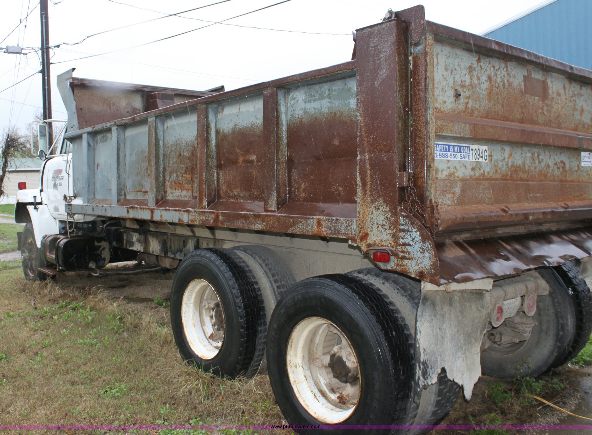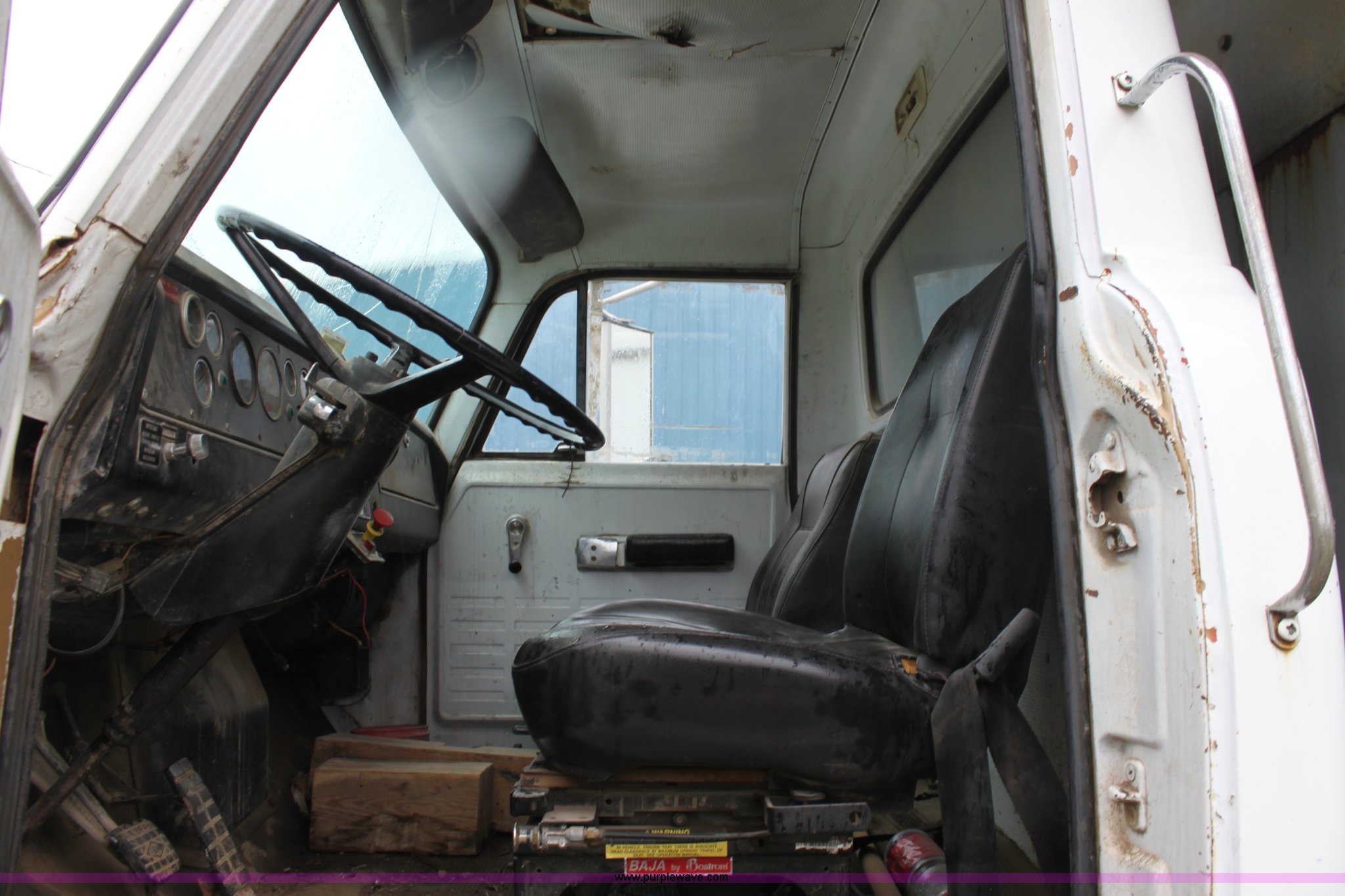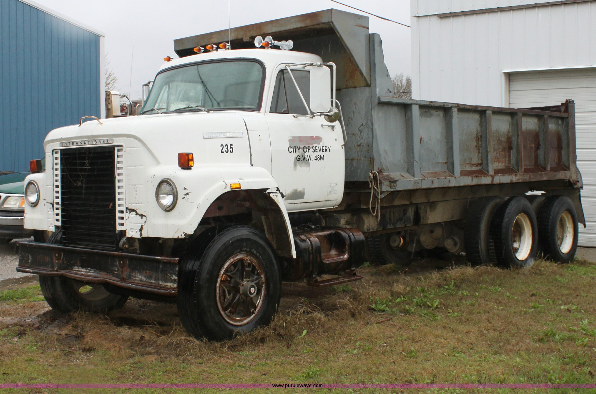 Purple Wave is selling a used Construction Dump Truck in Kansas. This item is a 1974 International Fleetstar 2050 tandem axle dump truck with the following: 94,726 miles on odometer, 2,422 hours on meter, Caterpillar V8 diesel engine, Serial 32Y83953, Automatic transmission, Differential lock, Heater, Air brakes, Chelsea PTO, new, Manual release end gate, Dual fuel tanks, Spring suspension, 36" side boards, 11R22.5 tires, GVWR 48,860 lbs, Hoist leaks