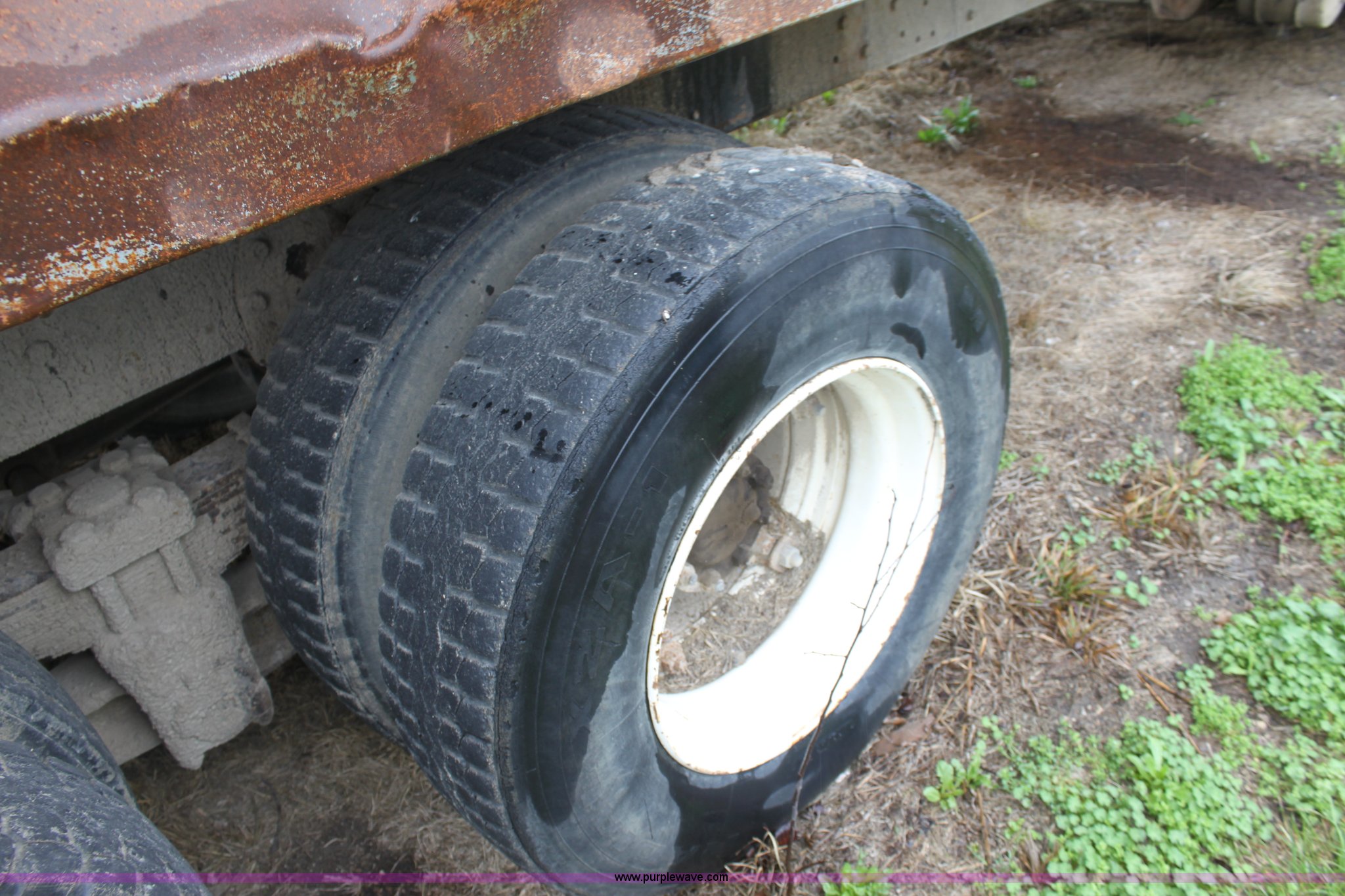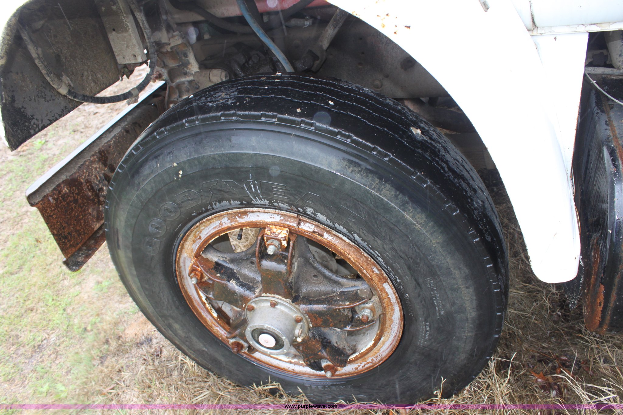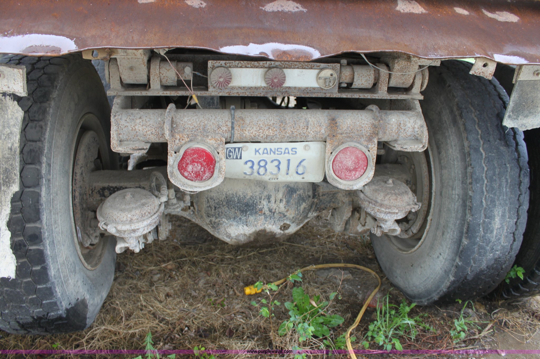 Purple Wave is selling a used Construction Dump Truck in Kansas. This item is a 1974 International Fleetstar 2050 tandem axle dump truck with the following: 94,726 miles on odometer, 2,422 hours on meter, Caterpillar V8 diesel engine, Serial 32Y83953, Automatic transmission, Differential lock, Heater, Air brakes, Chelsea PTO, new, Manual release end gate, Dual fuel tanks, Spring suspension, 36" side boards, 11R22.5 tires, GVWR 48,860 lbs, Hoist leaks