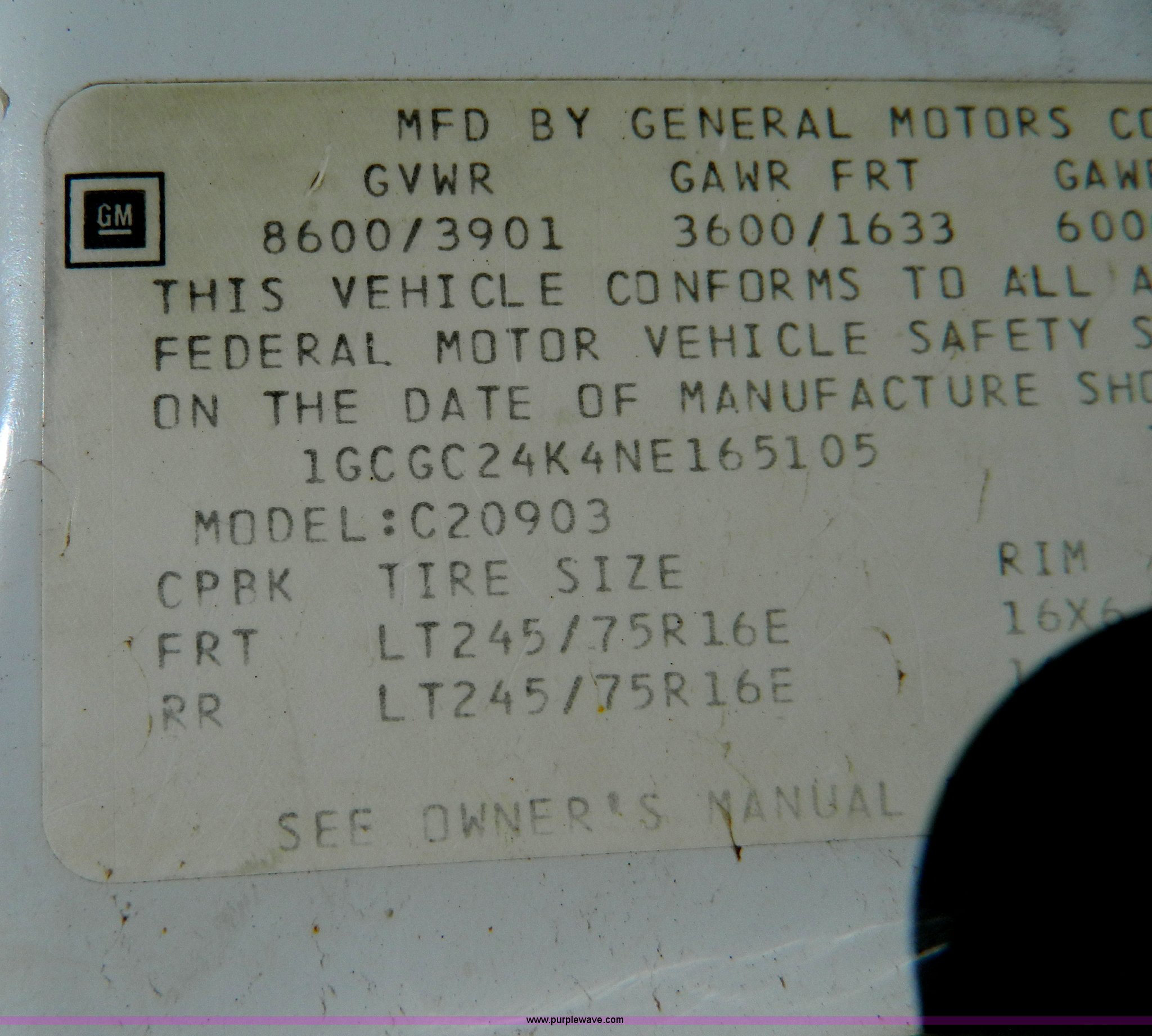 1992 Chevrolet Cheyenne C2500 pickup truck. 204,001 miles on odometer Mileage may vary, 5.7L V8 TBI engine, Automatic transmission, AC and heat, AM/FM, Manual windows and locks, T245/75R16 tires, Cosmetic damage, Rust, Dents, Personal contents not included. 1GCGC24K4NE165105. Ottawa County Road Department. 912 E 10th. Minneapolis, KS 67467