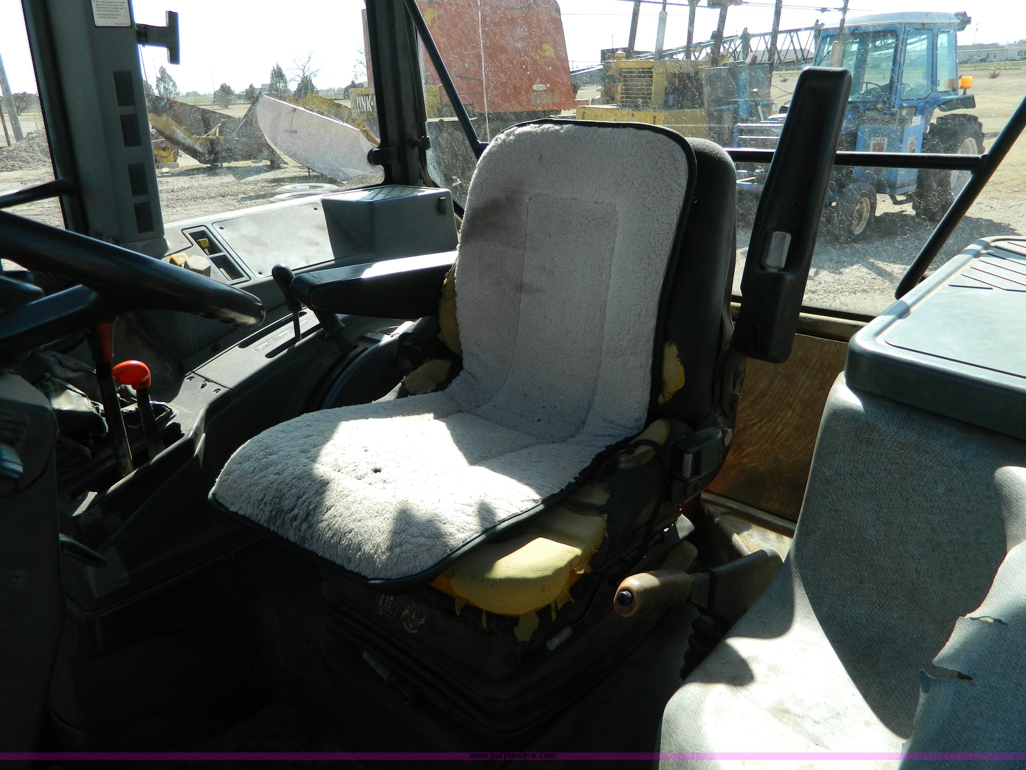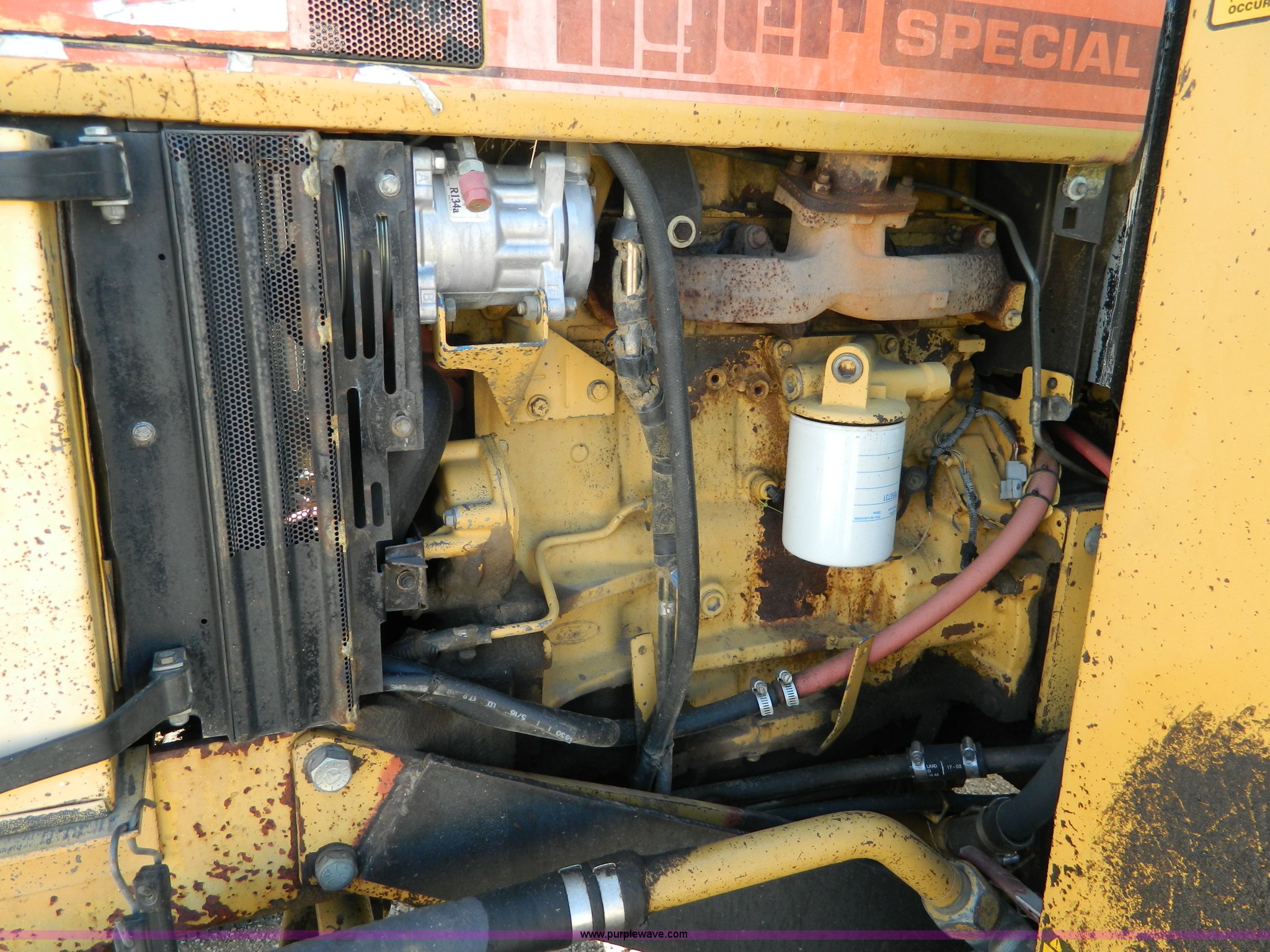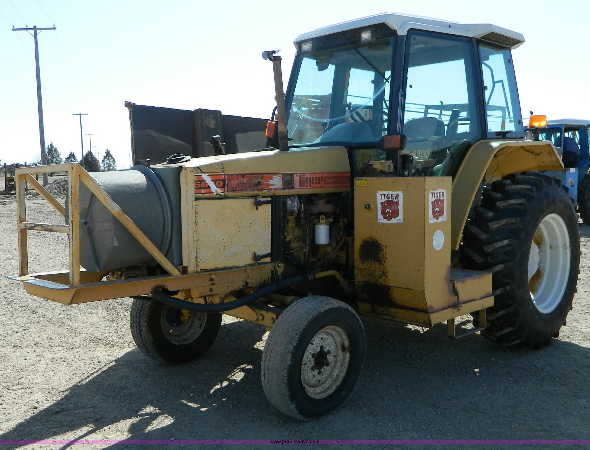 Purple Wave is selling a used Tractor in Kansas. This item is a Ford New Holland Tiger Special tractor with the following: 8,606 hours on meter, Aftermarket hour meter, cab meter inoperable, Four cylinder diesel engine, 4F-1R gears, AC and heat, 5' side mount mower, Draw bar, 540 PTO, One new rear tire, Cosmetic damages, Serial BD45767