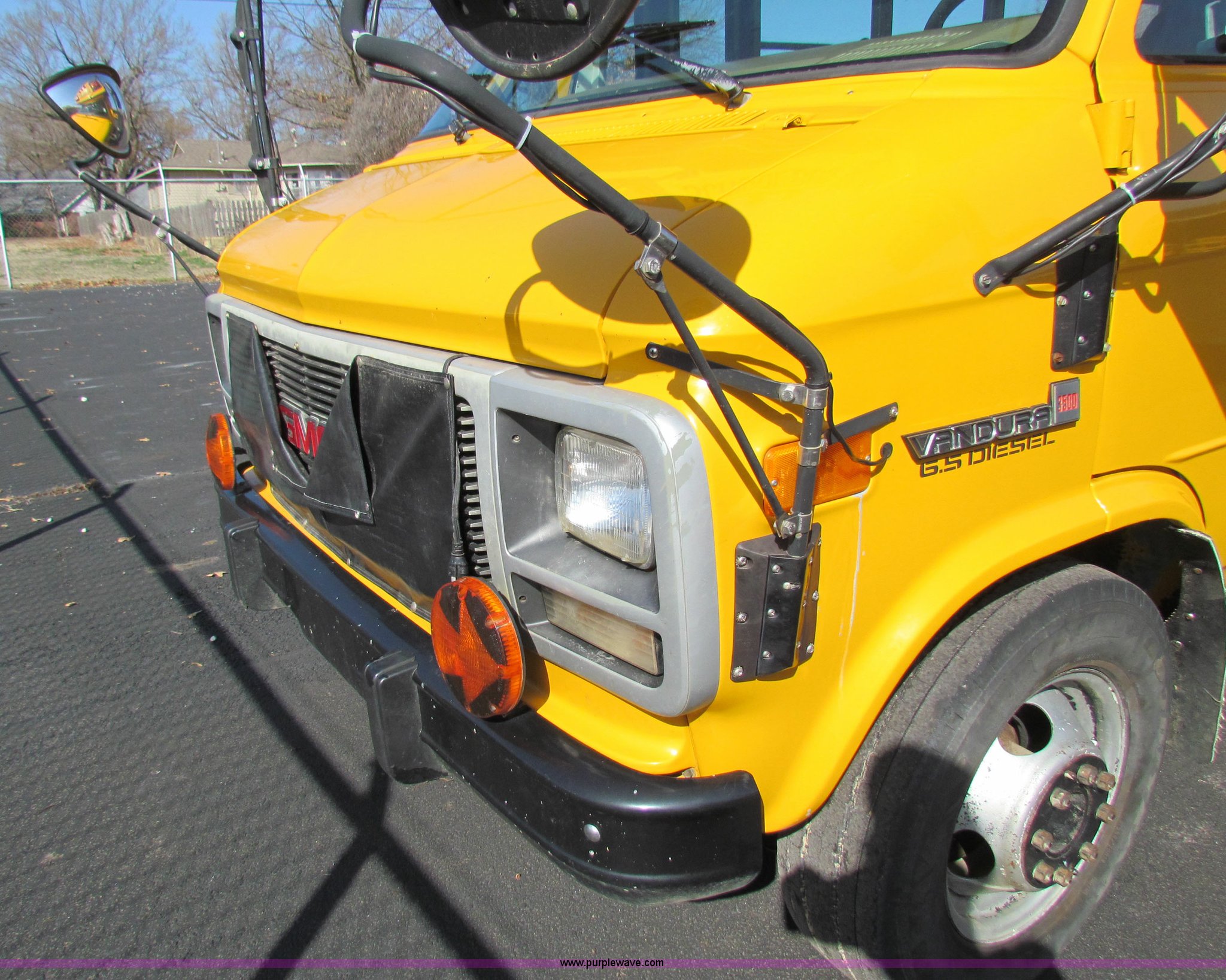 1995 GMC G3500 Vandura school bus. 146,981 miles on odometer, 6.5L diesel engine, Four speed automatic transmission Rebuilt at 126,502 miles, 19 passenger, 225/75R16 tires, Some dents, Bus# 1. 1GDHG31Y2SF539669. USD 286. Sedan, KS 67361