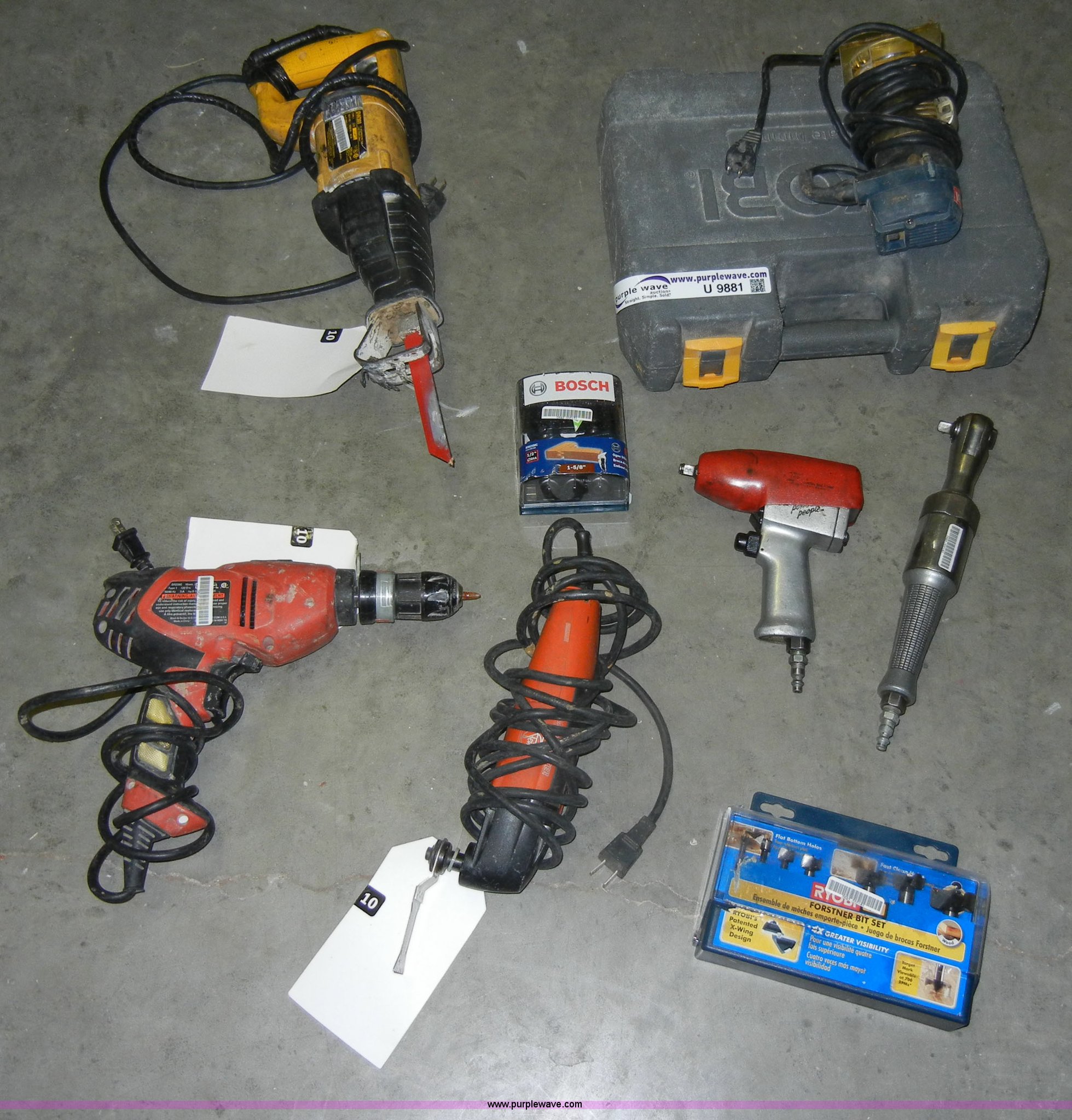 Purple Wave is selling a used Tools in Kansas. This item is a Assorted tools with the following: Bosch bit sets, B&D drill, Multi Master, DeWalt Sawz-All, Ryobi router, Snap-On air ratchet