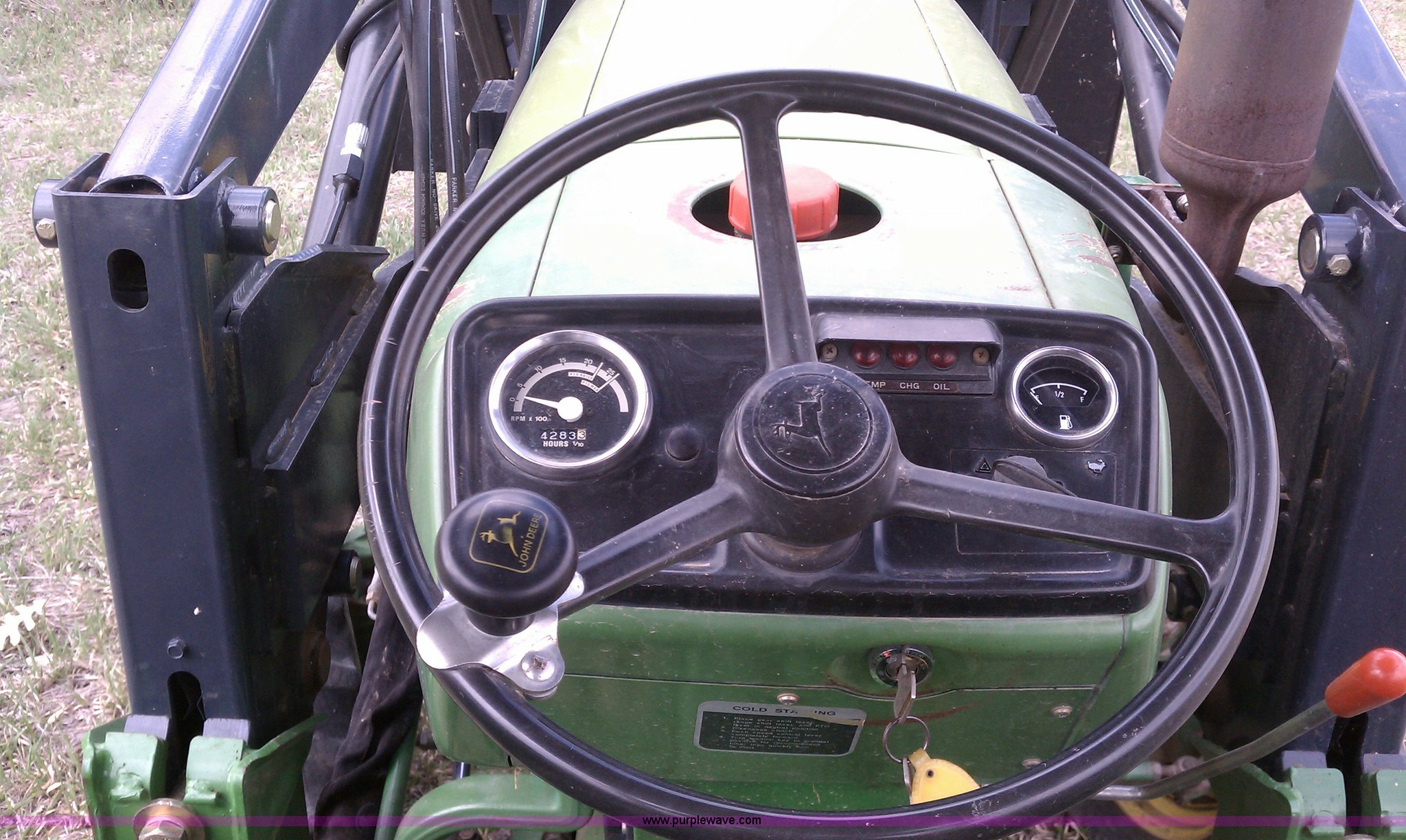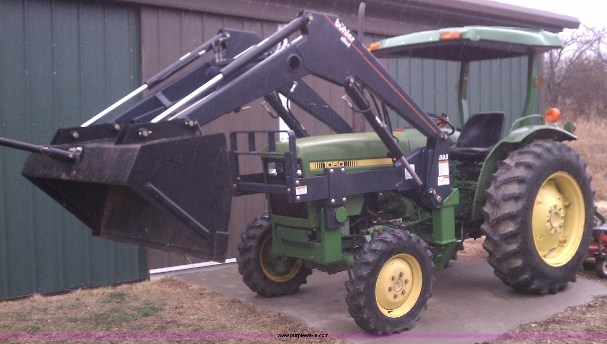 Purple Wave is selling a used Tractor in Kansas. This item is a 1984 John Deere 1050 MFWD tractor with the following: 4,287 hours on meter, Yanmar 3790T-J three cylinder diesel engine, 38 HP, Serial 30S7T095201, Manual transmission, 8F-2R gears, Front wheel assist, Differential lock, Spring ride seat, Roll bar, 2006 Buhler-Allied 395 loader, 60" bucket, Quick attach, Two lever control, Three point, Draw bar, 540/1000 PTO, Rear hydraulic remotes, 12 gallon fuel tank, 7.00-16 front tires, 13.6-28 rear tires, 66" wheelbase, Serial CH105C7S013197