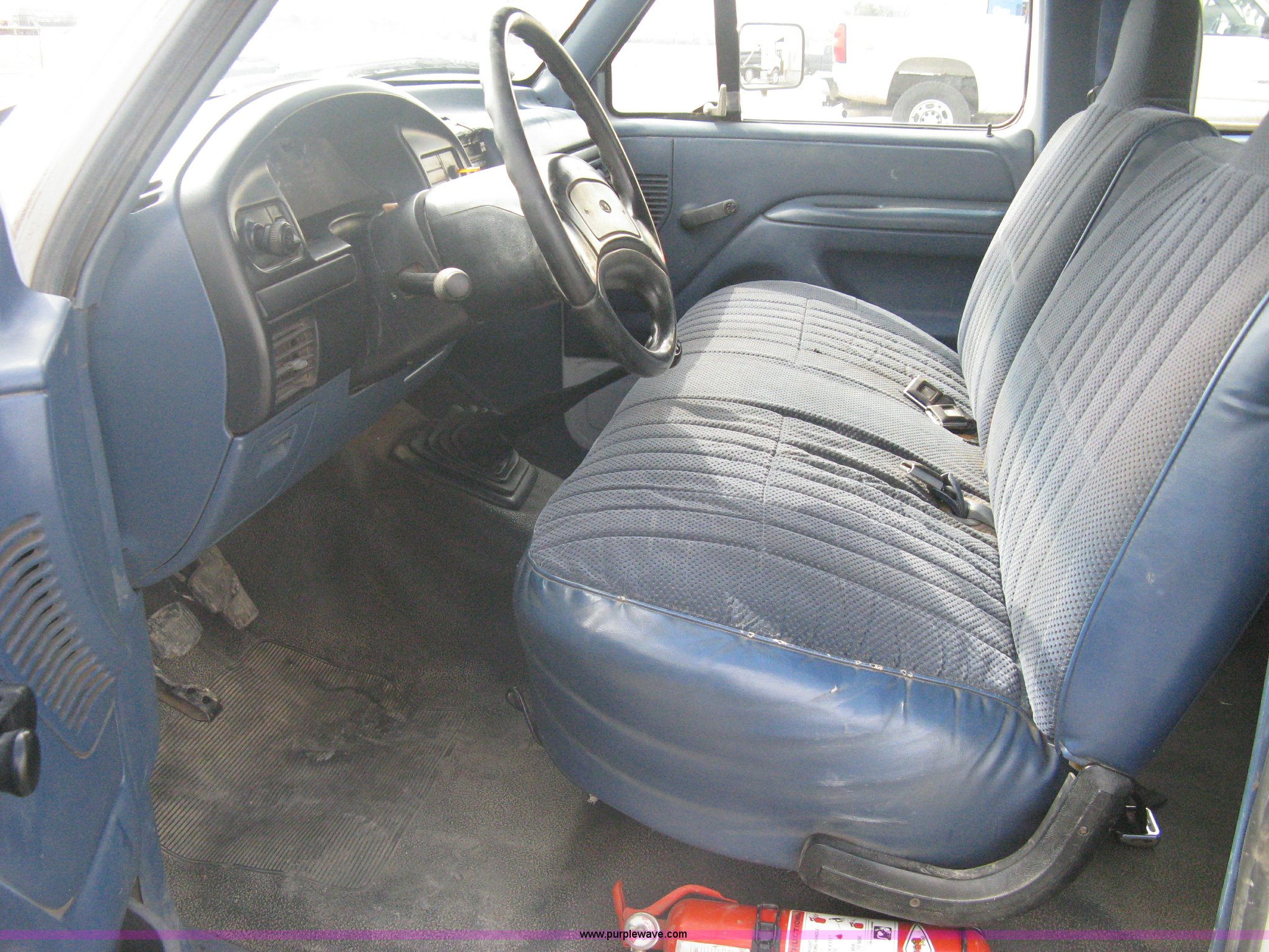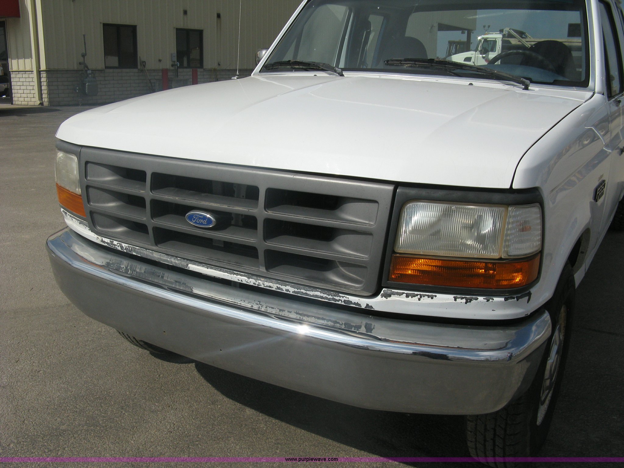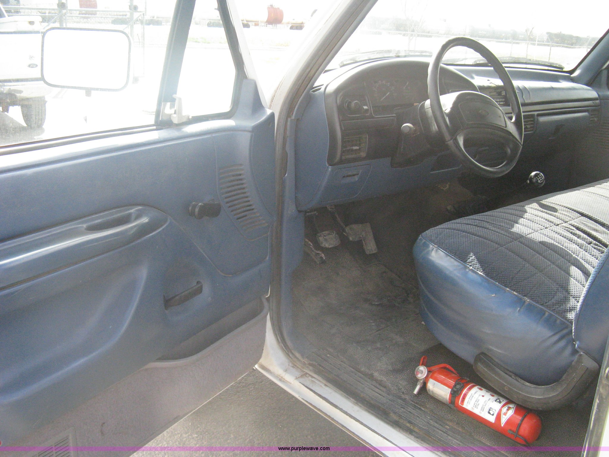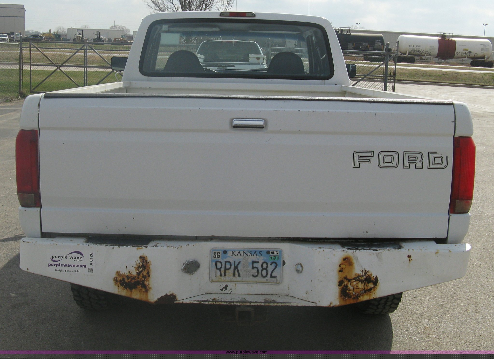 Purple Wave is selling a used Passenger Vehicle in Kansas. This item is a 1996 Ford F250 XL SuperCab pickup truck with the following: 143,425 miles on odometer, 5.8L V8 EFI gas engine, Five speed manual transmission, AC and heat, AM/FM/Cassette, Manual windows and locks, Auxiliary gas tank, Receiver hitch, Trailer wiring, LT235/85R16 tires, Exterior rust, Peeled paint, Dash cracked, Interior/exterior cosmetic damage