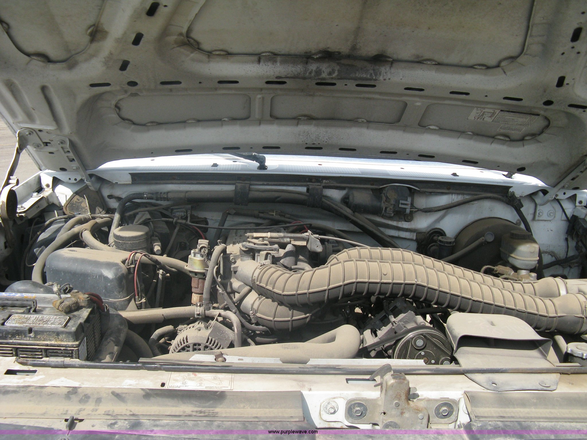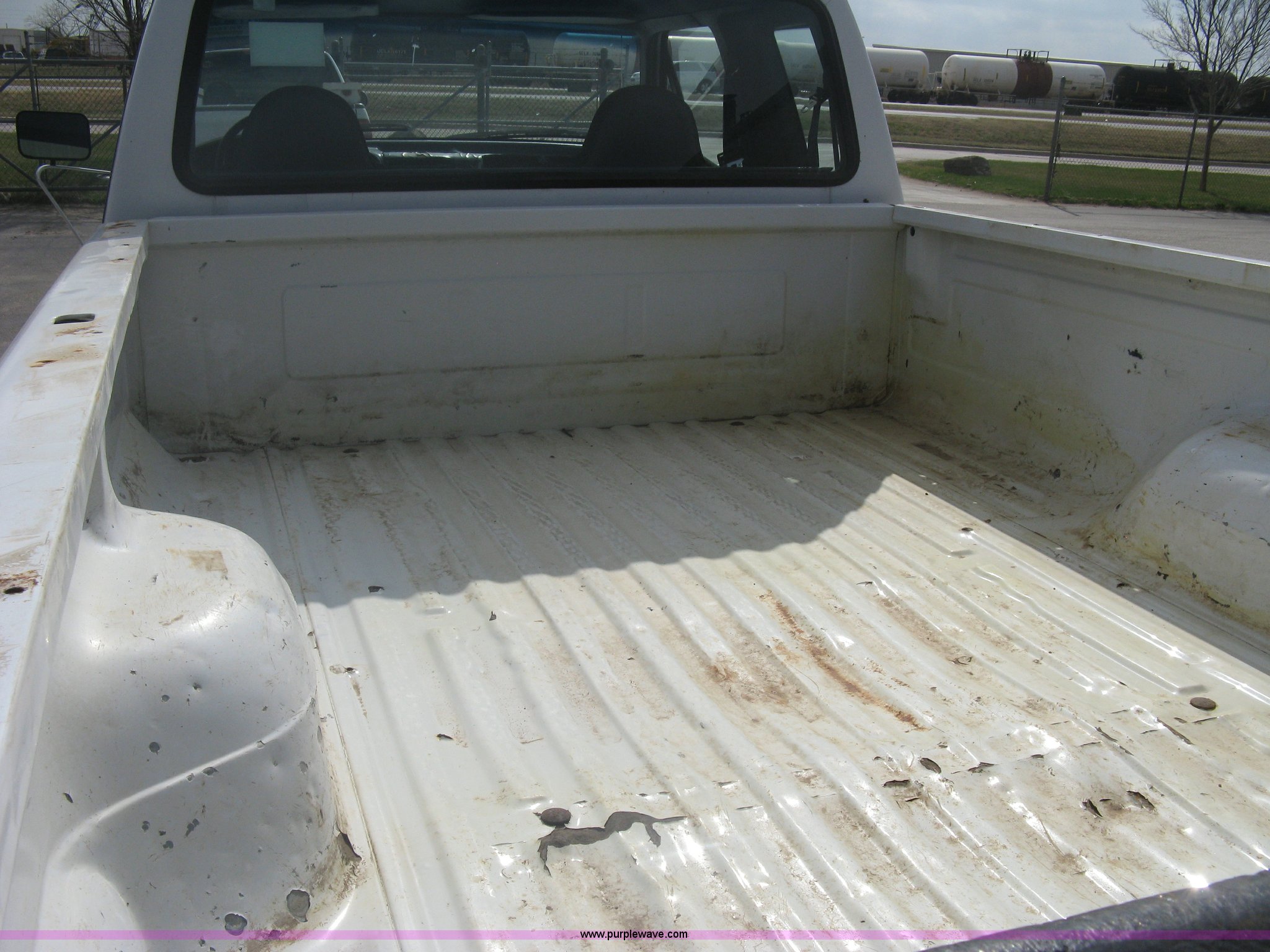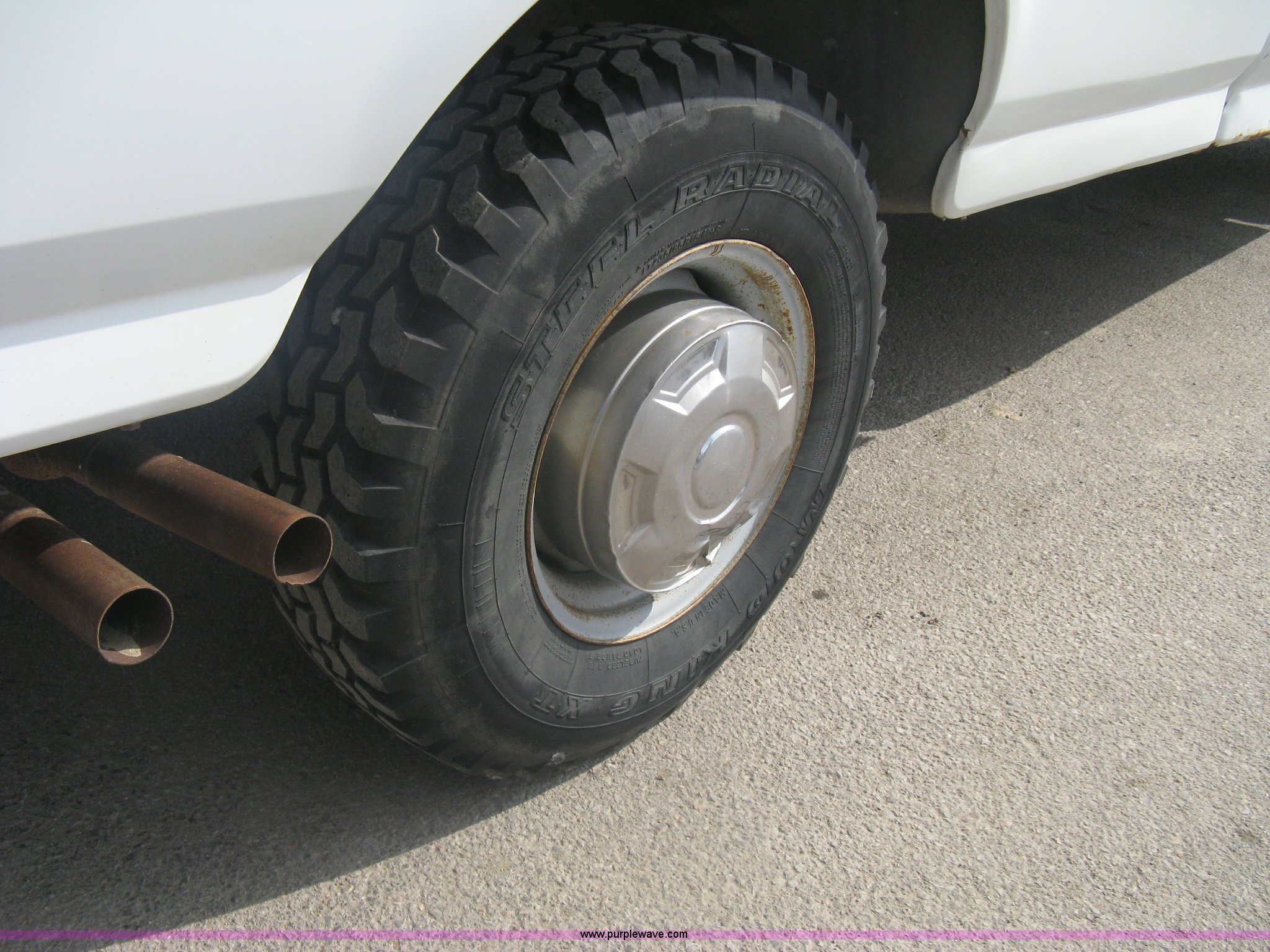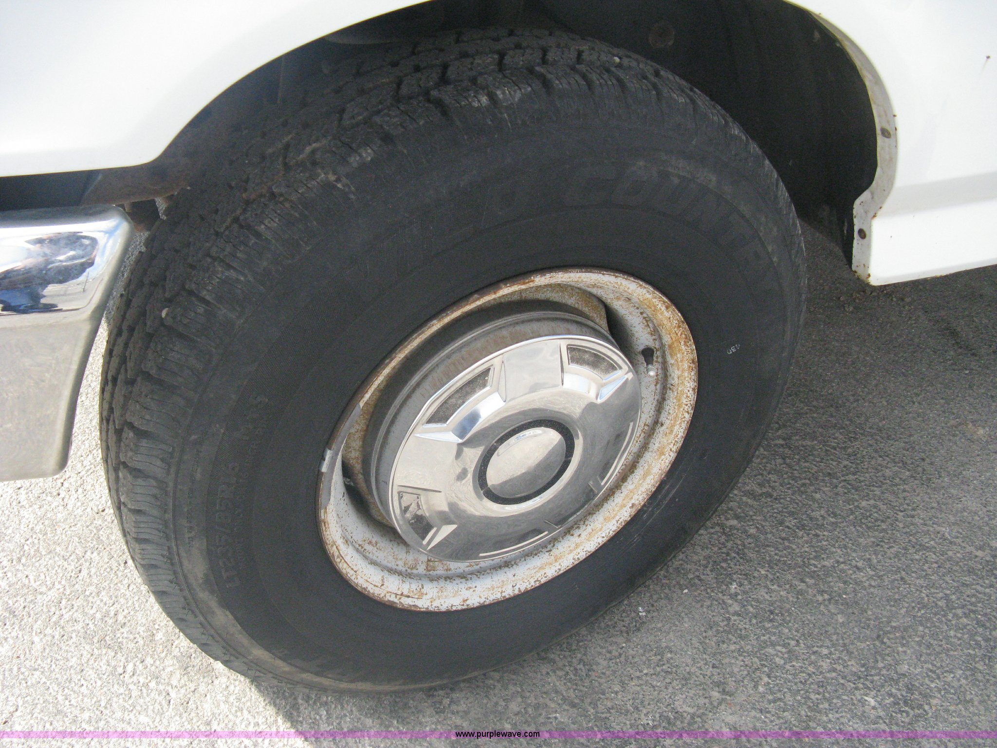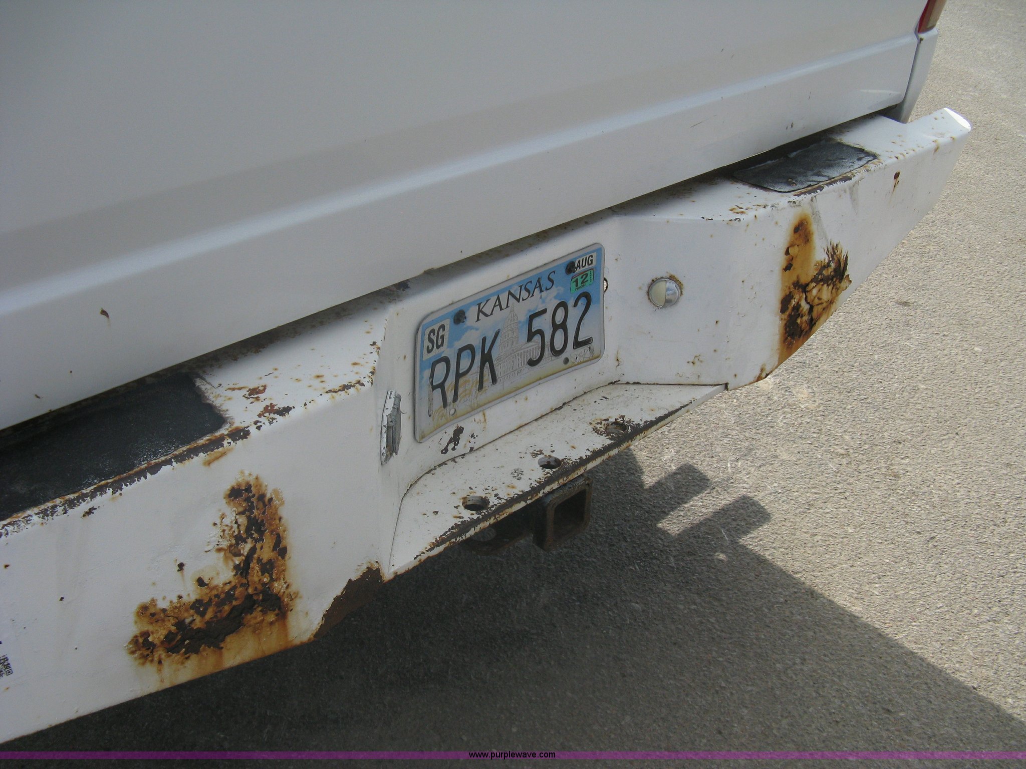 Purple Wave is selling a used Passenger Vehicle in Kansas. This item is a 1996 Ford F250 XL SuperCab pickup truck with the following: 143,425 miles on odometer, 5.8L V8 EFI gas engine, Five speed manual transmission, AC and heat, AM/FM/Cassette, Manual windows and locks, Auxiliary gas tank, Receiver hitch, Trailer wiring, LT235/85R16 tires, Exterior rust, Peeled paint, Dash cracked, Interior/exterior cosmetic damage