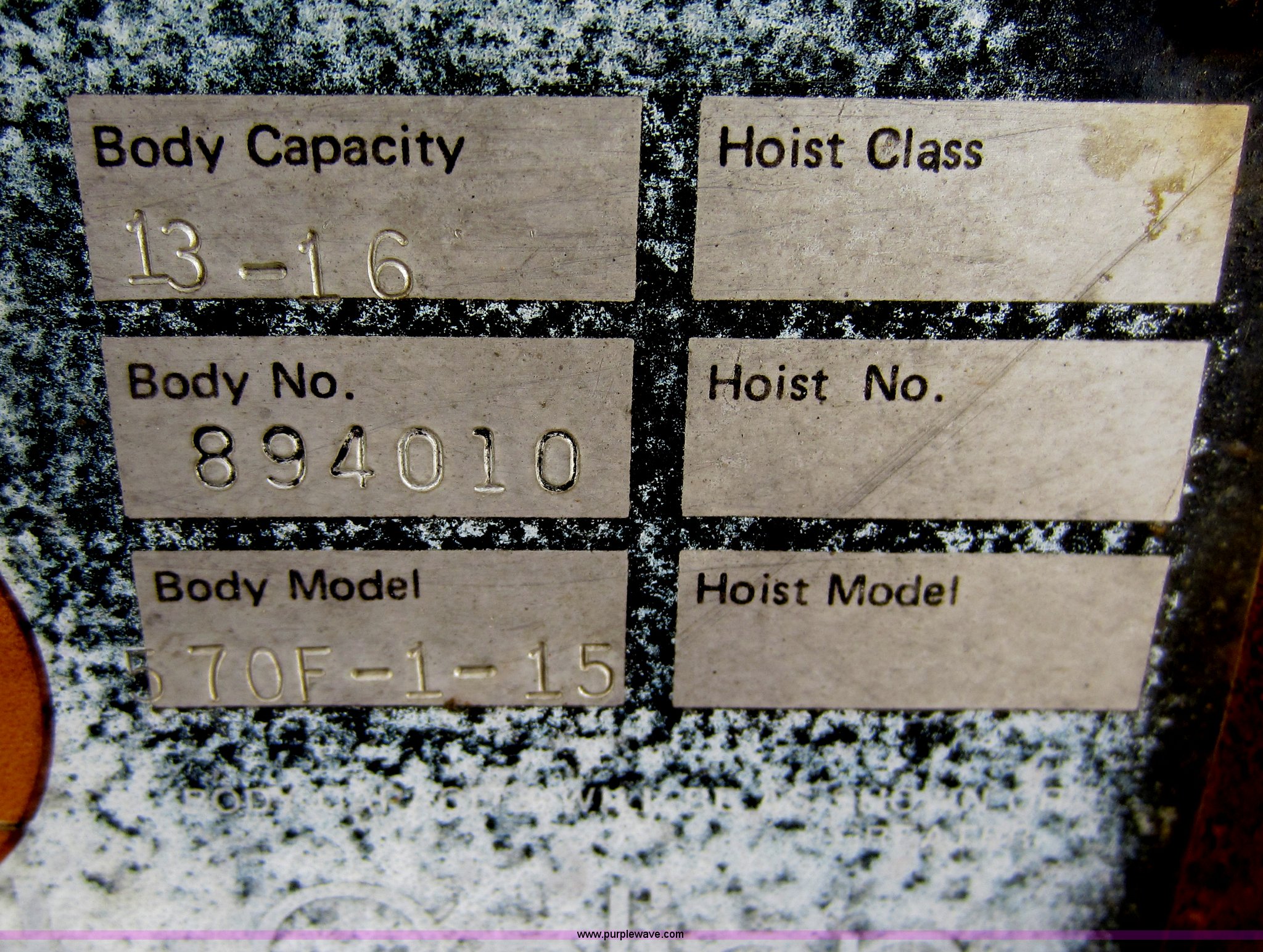 Purple Wave is selling a used Truck Part and Attach. in Kansas. This item is a Peabody Galion 15' dump bed with the following: 13 to 16 yd. capacity, Model 570F-1-15