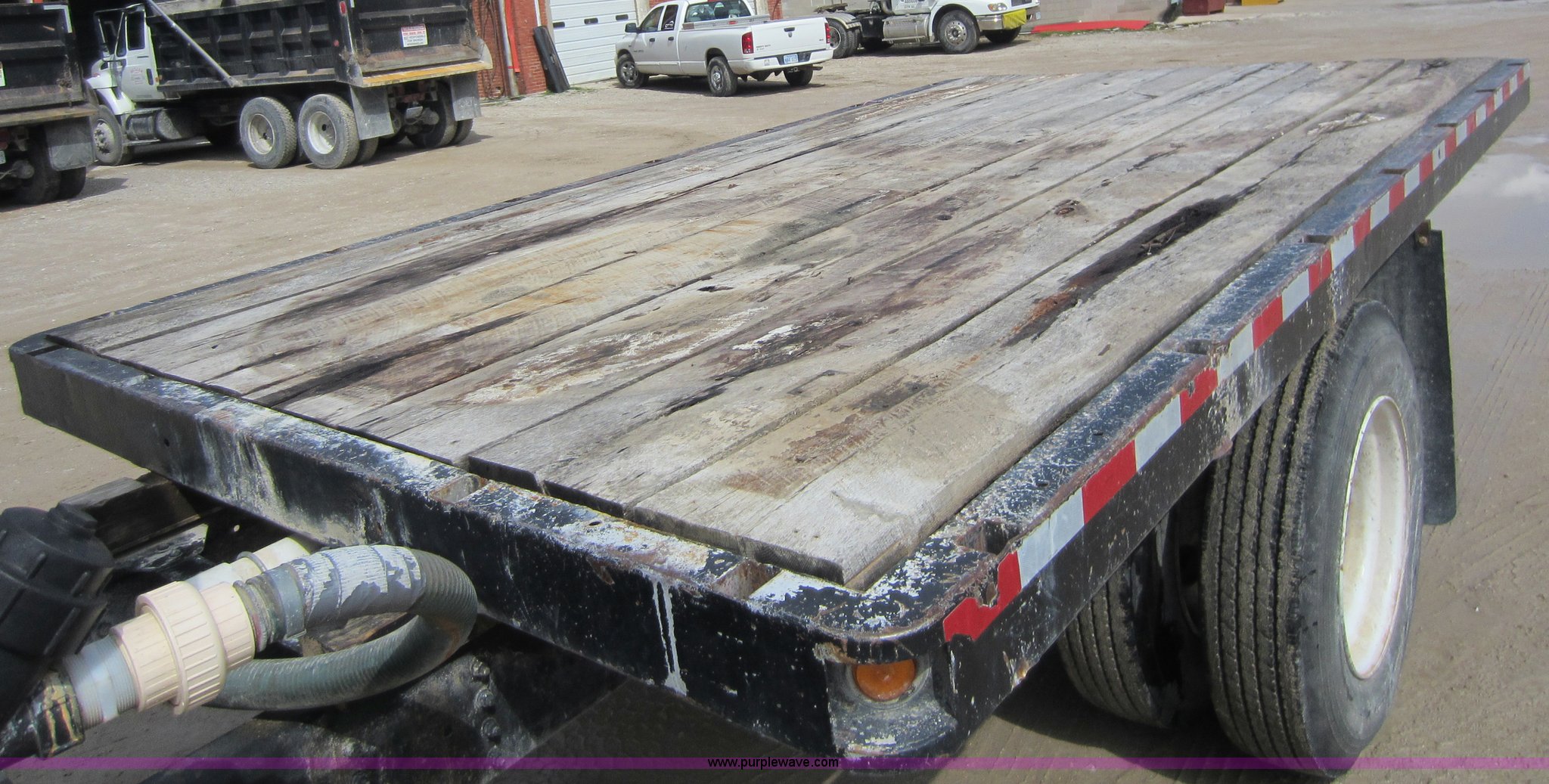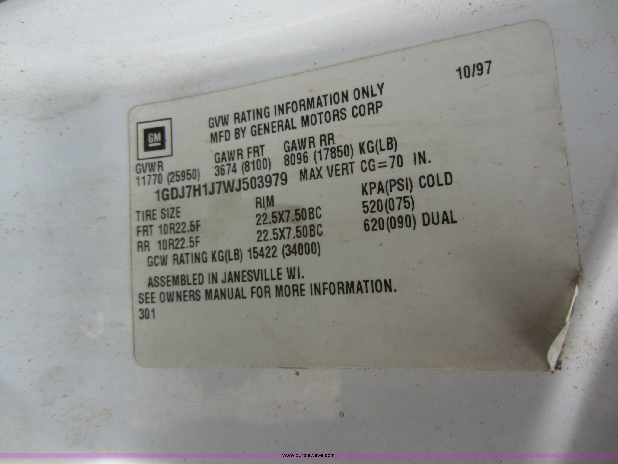 Purple Wave is selling a used Flat Bed Truck in Kansas. This item is a 1998 GMC C6500 truck with the following: 470,899 miles on odometer, Caterpillar C6.6 six cylinder 6.6L diesel engine, Five speed manual transmission, AC and heat, AM/FM, Manual windows and locks, 13.5'L x 94"W bed, Approx. 1,500 gallon water tank, Briggs & Stratton 5.5 HP engine, Wood floor, Hydraulic brakes, Spring suspension, 10R22.5 tires, 260" wheelbase, GVWR 25,950 lbs, ID# 14