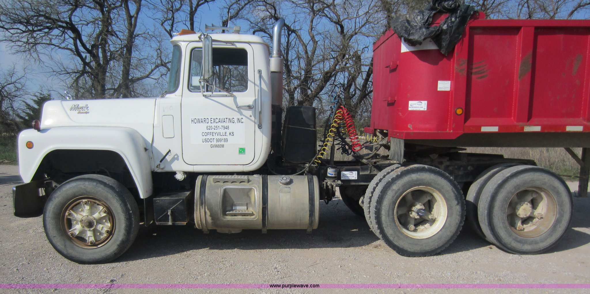 1989 Mack R688ST semi truck. 21,522 miles on odometer, 3,273 hours on meter, Mack E6 11.0L diesel engine, 10 speed manual transmission, Twin screw, Heater, Chrome bumper, (2) 100 gallon fuel tanks, PTO, Air brakes, 11R22.5 tires. 1M2N187Y9KW026878. View equipment video. Shipping quotes available. Howard Excavating Inc.. CR 4335 and CR 2400. Coffeyville, KS 67337