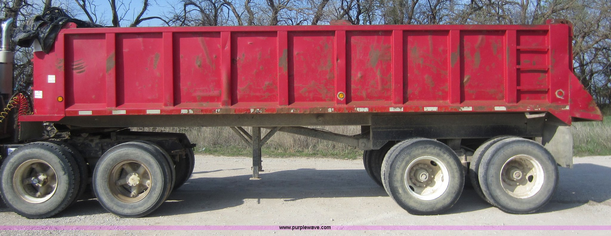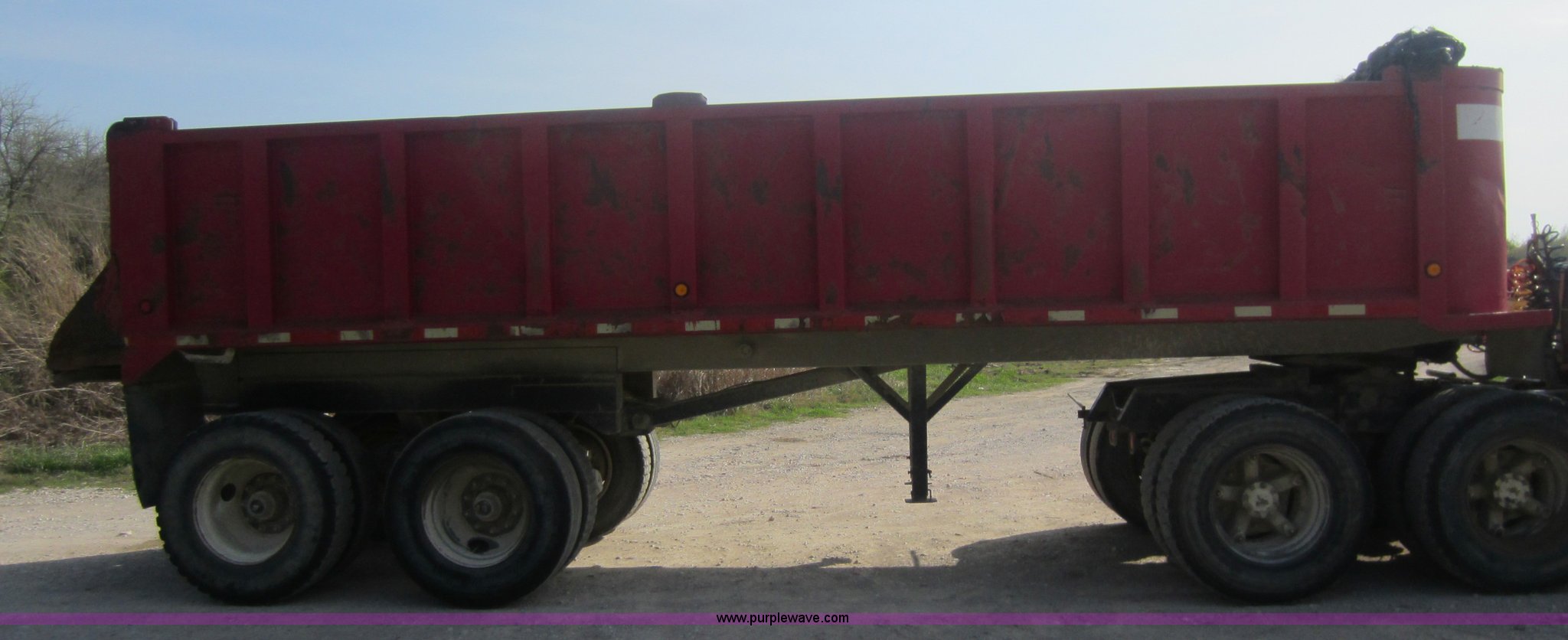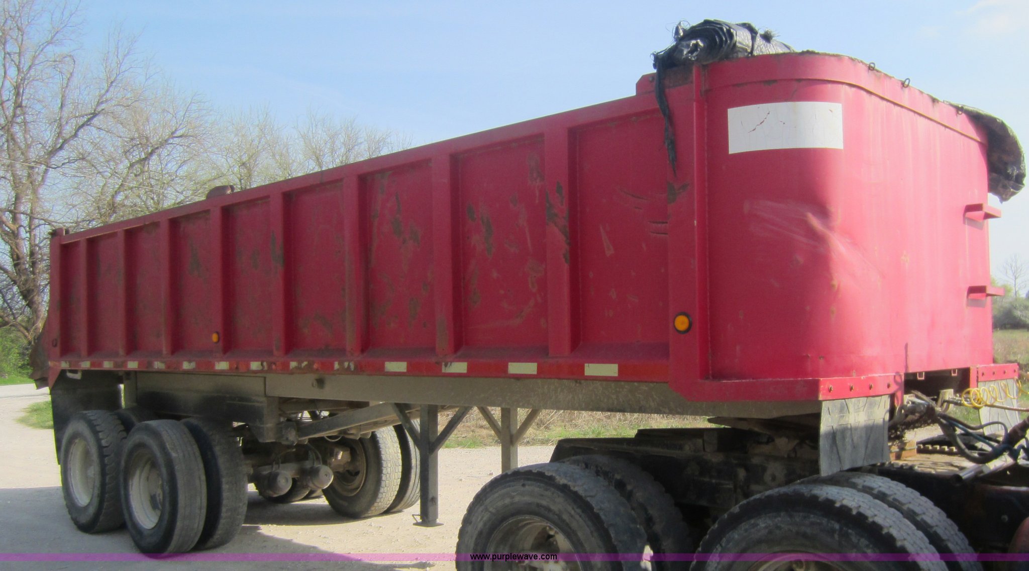 Purple Wave is selling a used End Dump Rock Trailer in Kansas. This item is a 2000 Dump-rite DR24 end dump trailer with the following: 24', 46"H sides, Air end gate, Air brakes, Spring suspension, 11R22.5 tires