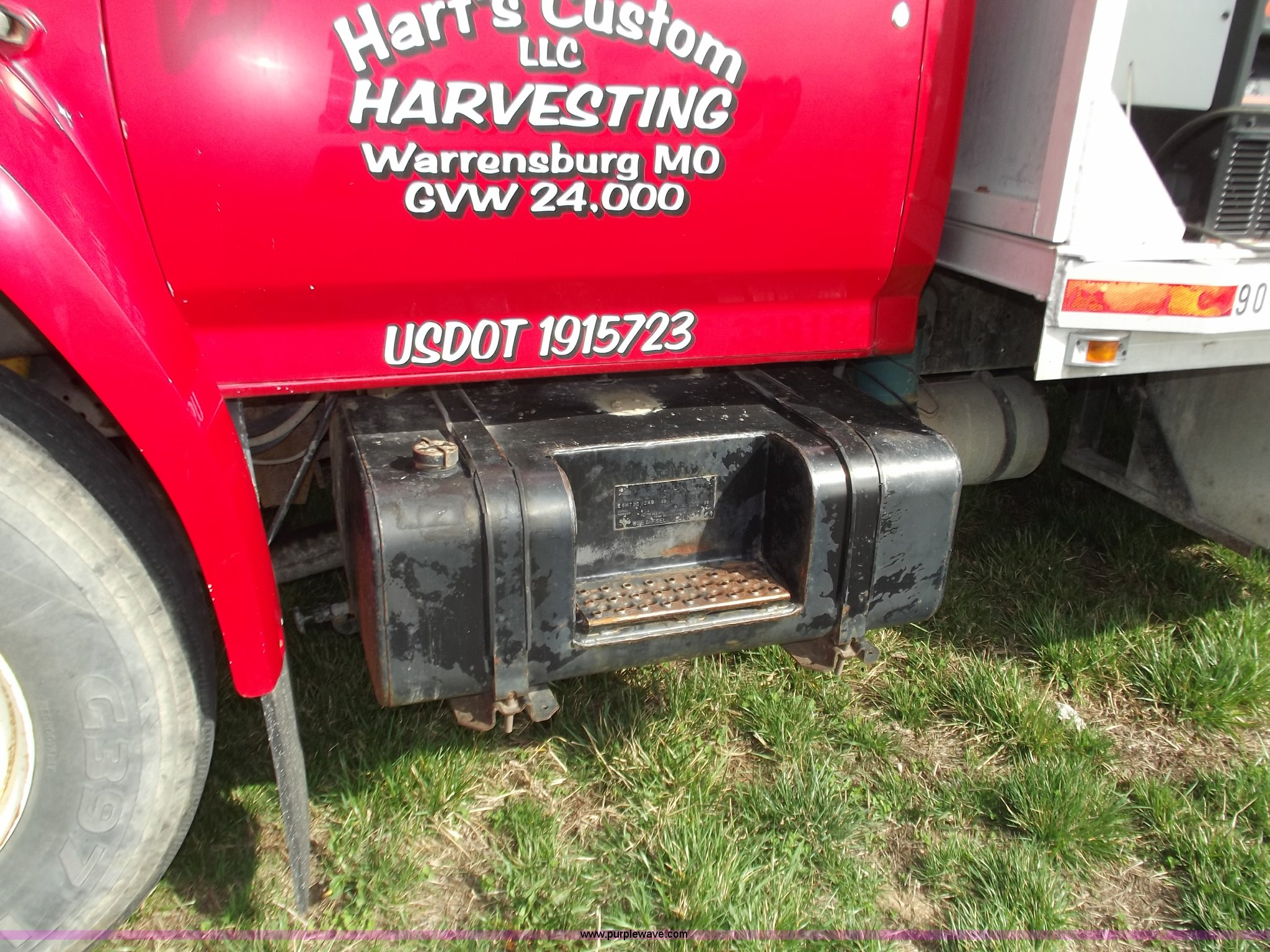 1990 Ford F700 service truck. 218,556 miles on odometer, Ford 6.6L six cylinder diesel engine Does not run, Six speed manual transmission, AC and heat, AM/FM, Spring ride seat, 12'L x 8'W aluminum flatbed Headache rack, Hobart Champion 1000 welder/generator 88 hours on meter, 10,000 watt, Mega Force 30 gallon electric air compressor 155 psi, Dual 50' hose reels, (2) Delta 100 gallon fuel tanks Fill Rite 12v pumps with filters and meters, (4) storage boxes (2) two door, (2) single door, Yellow beacon, (2) 50 gallon fuel tanks, Spring suspension, Air brakes, Brake controller, Receiver hitch, Trailer wiring, 9R22.5 tires, CB and antenna not included, Engine not running. Title distribution may be delayed up to 30 days from verification of funds. 1FTWK74P1LVA29812. Shipping quotes available. 33 NE 360. Warrensburg, MO 64093